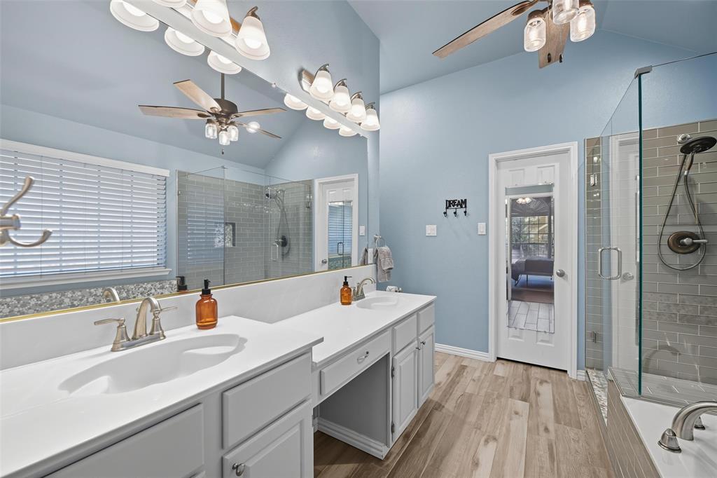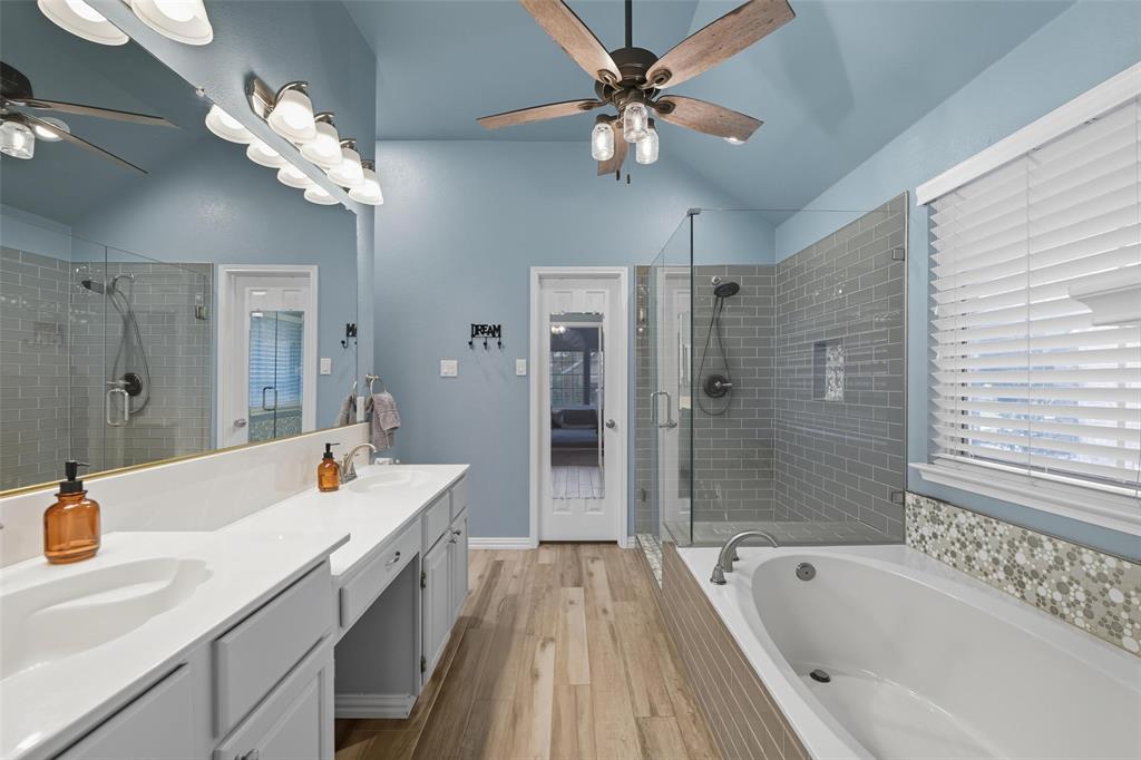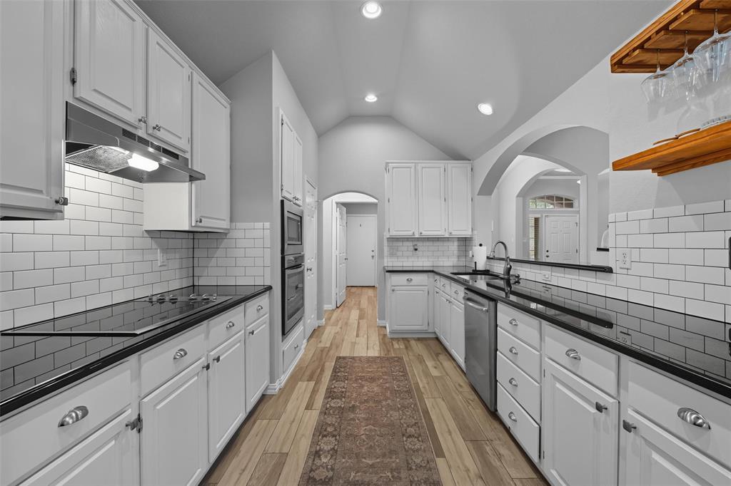 Beautifully updated home in the highly sought-after Park Glen neighborhood, served by Keller ISD. Step inside to soaring custom ceilings, elegant archways, and wood-look tile floors that create an open and inviting feel. The kitchen is designed for both style and function with timeless subway tile, white cabinetry, stainless steel appliances, built-in oven, cooktop, microwave, and granite countertops, all opening to a sunny breakfast area with bay windows. The split floor plan offers flexibility and privacy, with custom paint and decorator touches throughout. Enjoy evenings on the large open patio and take advantage of the neighborhood’s convenient location near parks, schools, shopping, and dining.