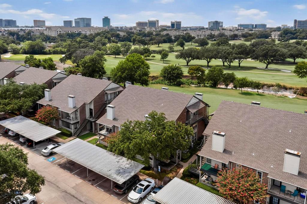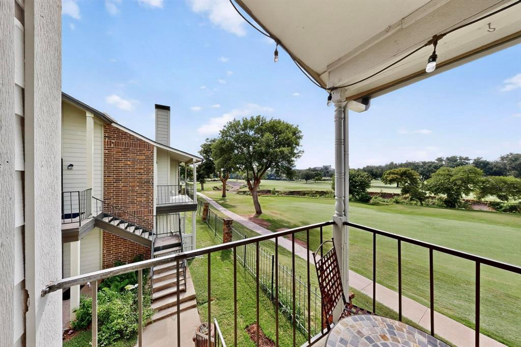 Updated condo with stunning golf course views! Step out onto your private patio and take in panoramic views of the 18th hole at The Clubs at Prestonwood. Inside, the living area features soaring ceilings, Red Oak hardwood floors & a cozy wood-burning fireplace. Updated windows fill the home with natural light and frame picture-perfect fairway views. The west-facing orientation also makes for stunning sunset views across the course! Designed for flexibility, the layout includes two spacious bedrooms, one upstairs and one downstairs, each with its own ensuite bath. Ideal for those looking to house-hack with roommates, host guests comfortably, or create a dedicated home office. Recent updates feature a brand-new HVAC system (installed July 2024) & water heater (installed April 2021). This home offers the perfect blend of privacy and convenience, just minutes from Village on the Parkway, Addison Circle & major highways—including the Dallas North Tollway, George Bush & I-635—for effortless access throughout the metroplex. Ideally located, it’s only 8 minutes to Addison Airport, 20 minutes to Love Field, and 23 minutes to DFW International. Community amenities include a salt water pool, tennis court and pickleball court for endless recreation.