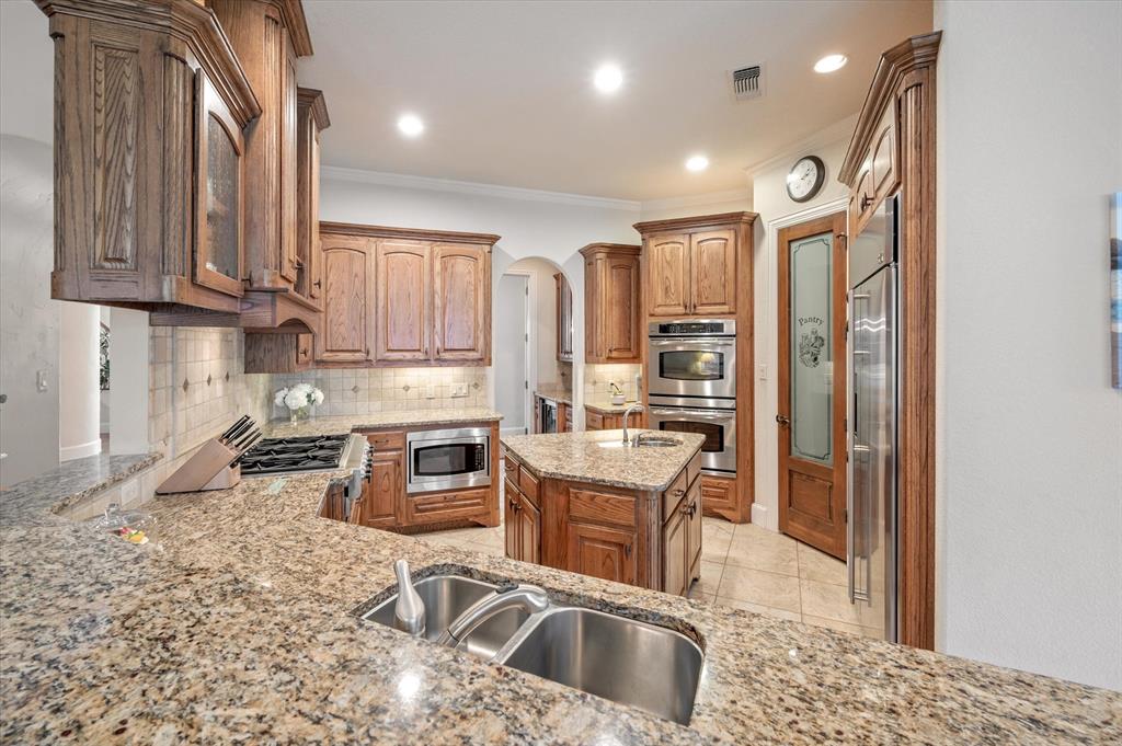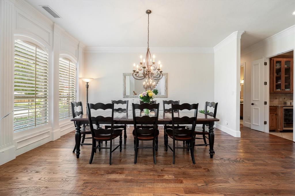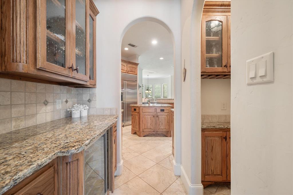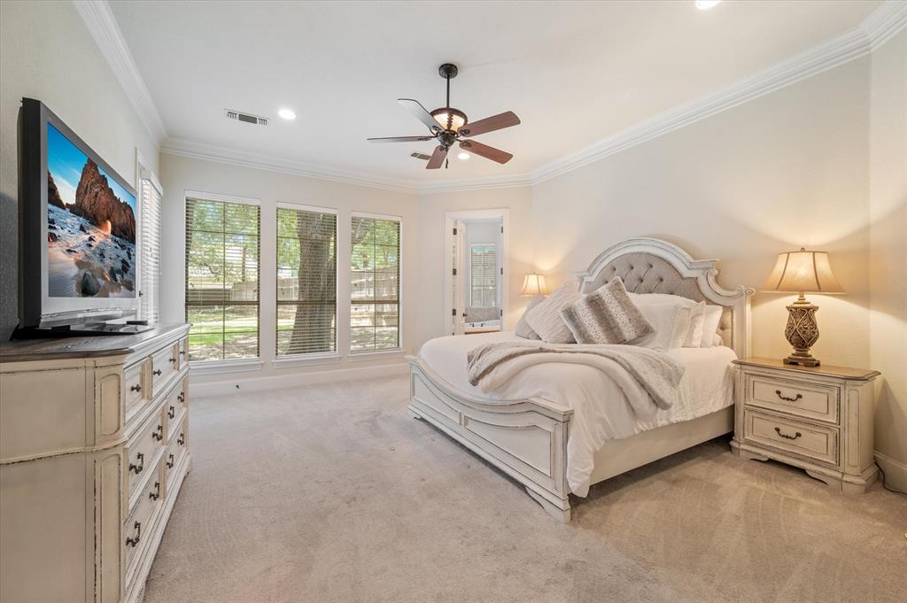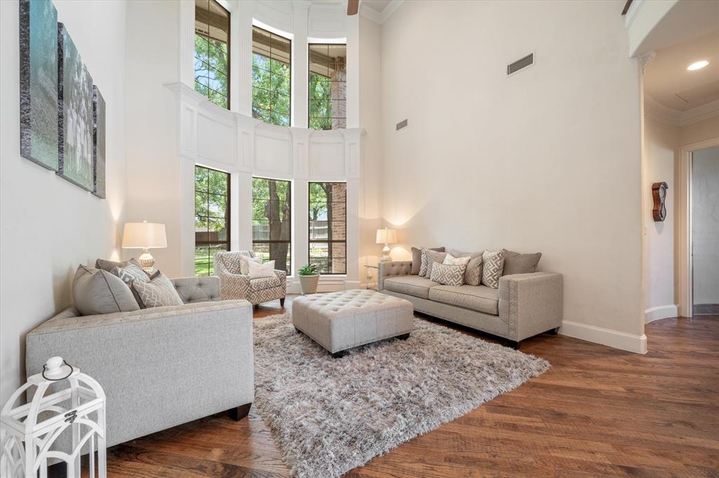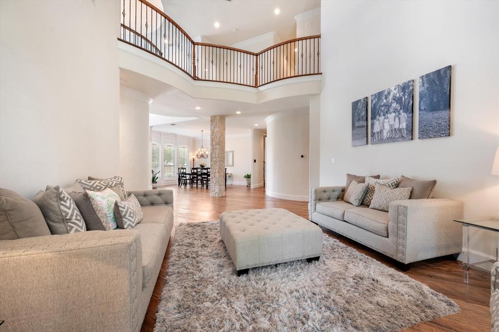 Immaculate Custom Home nestled in a quaint cul-de-sac in the highly sought after community of Remington Park, offering luxury living at its finest. This meticulously designed home features many stunning updates along with 5 bedrooms, 6 bathrooms, a 4 car garage & a fabulous in home gym. As you step inside, you will be captivated by the pristine hardwood floors, the soaring ceilings, the wall of windows & will appreciate every detail put into this one of a kind, home. Each bedroom is private & boasts its own ensuite bathroom & walk-in closets. The kitchen showcases beautiful granite countertops with meal prep sink, top of the line SS appliances including a built in Fridge & double ovens, a butlers pantry & an amazing wine room. Outside, you will truly enjoy the serene oasis, complete with a spacious covered patio & balcony overlooking the mature landscape while creating the a perfect space to relax or entertain guests. Ideal location! In proximity to shopping, restaurants & DFW airport