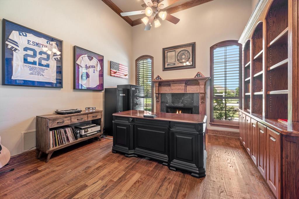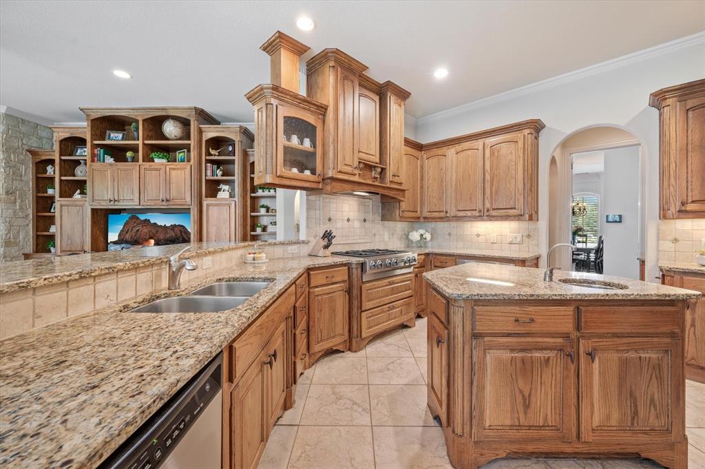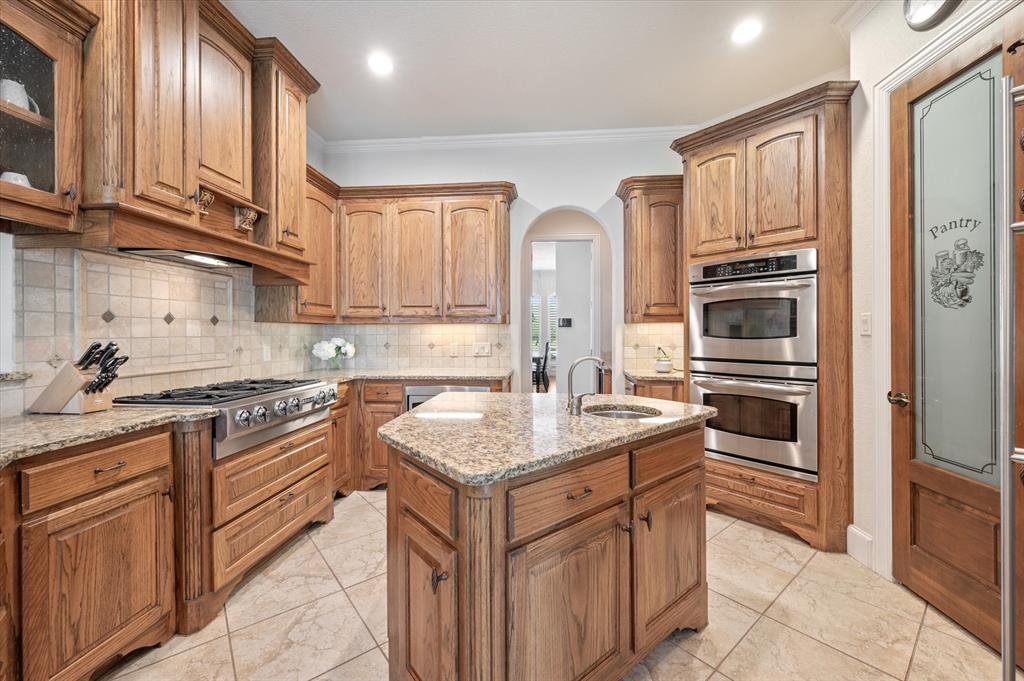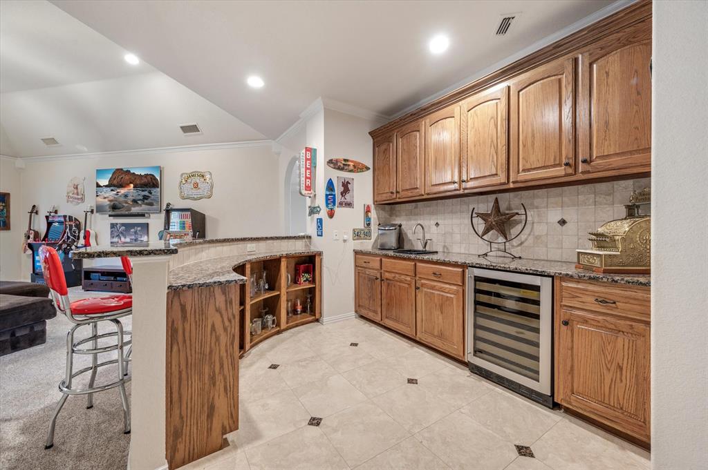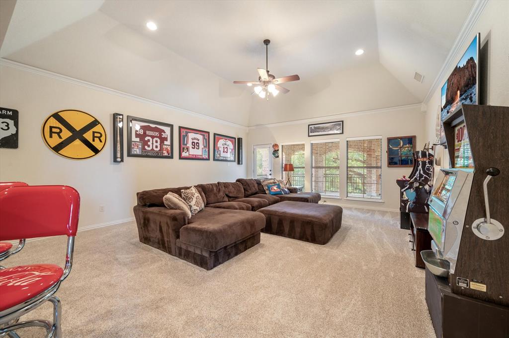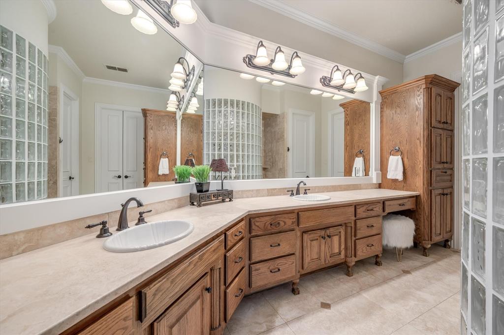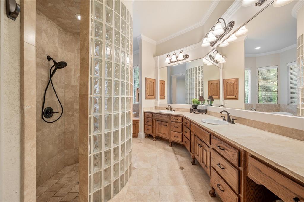 Immaculate Custom Home nestled in a quaint cul-de-sac in the highly sought after community of Remington Park, offering luxury living at its finest. This meticulously designed home features many stunning updates along with 5 bedrooms, 6 bathrooms, a 4 car garage & a fabulous in home gym. As you step inside, you will be captivated by the pristine hardwood floors, the soaring ceilings, the wall of windows & will appreciate every detail put into this one of a kind, home. Each bedroom is private & boasts its own ensuite bathroom & walk-in closets. The kitchen showcases beautiful granite countertops with meal prep sink, top of the line SS appliances including a built in Fridge & double ovens, a butlers pantry & an amazing wine room. Outside, you will truly enjoy the serene oasis, complete with a spacious covered patio & balcony overlooking the mature landscape while creating the a perfect space to relax or entertain guests. Ideal location! In proximity to shopping, restaurants & DFW airport