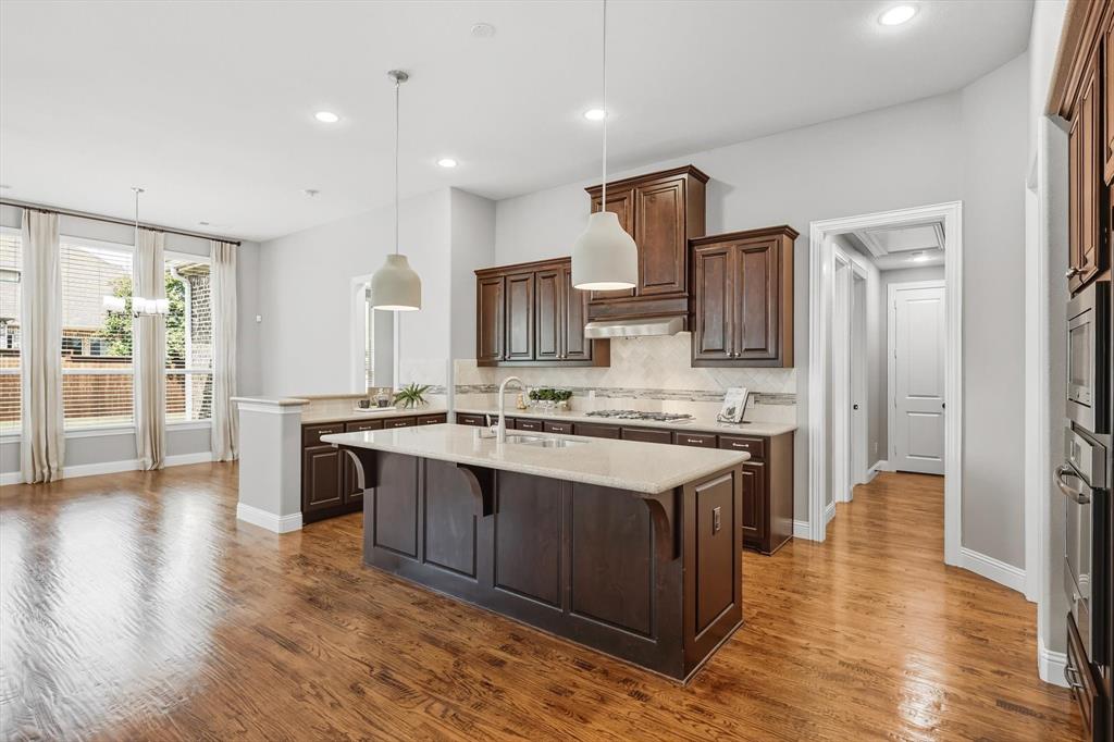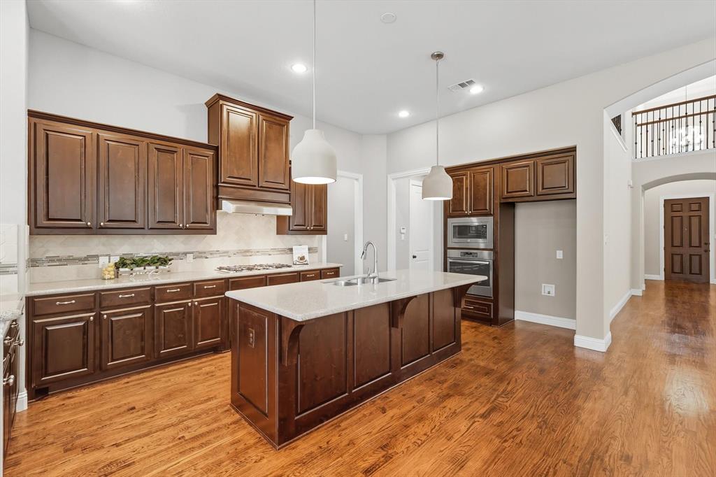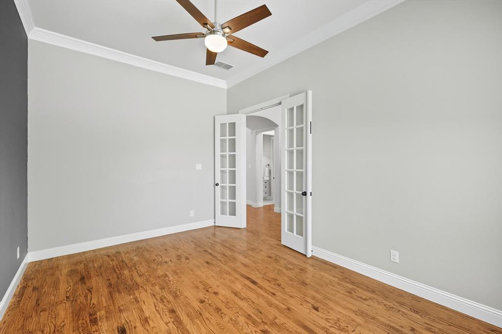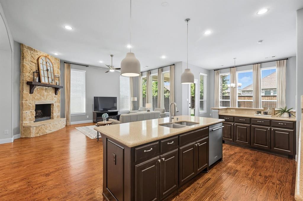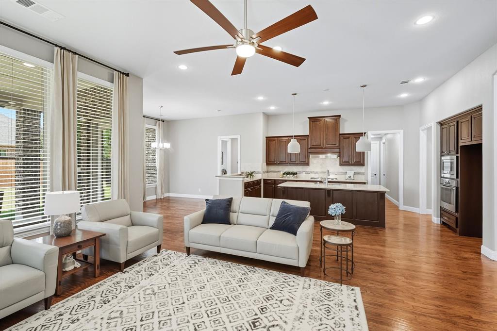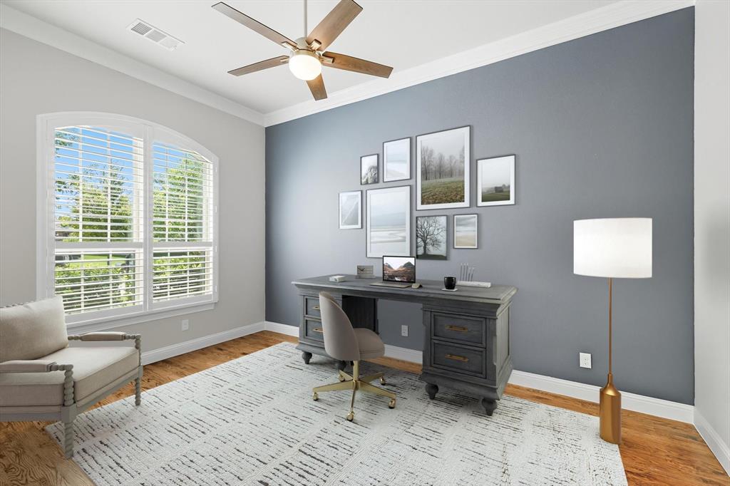 Welcome to this beautifully upgraded home in the sought-after Fairway Ranch community of Roanoke, where luxury and comfort meet convenience. Upon entry, you’ll be greeted by a private study with crown molding and plantation shutters offering the perfect work-from-home space. You'll love entertaining in the soaring double-height dining room just off the spacious living room featuring rich hardwood floors, a dramatic floor-to-ceiling stone fireplace, and a wall of windows that flood the home with natural light.