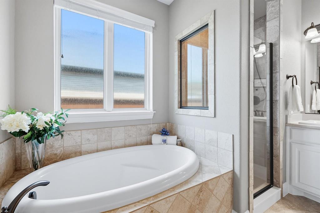 The chef’s kitchen is ideal for everyday living and entertaining, complete with a large island, stainless steel appliances, gas cooktop, and recently updated microwave and dishwasher (2023). The serene primary suite offers a spa-inspired bath and custom closet system. 3 well-sized guest bedrooms are located on the main level, while upstairs a versatile flex-media room providing endless possibilities.