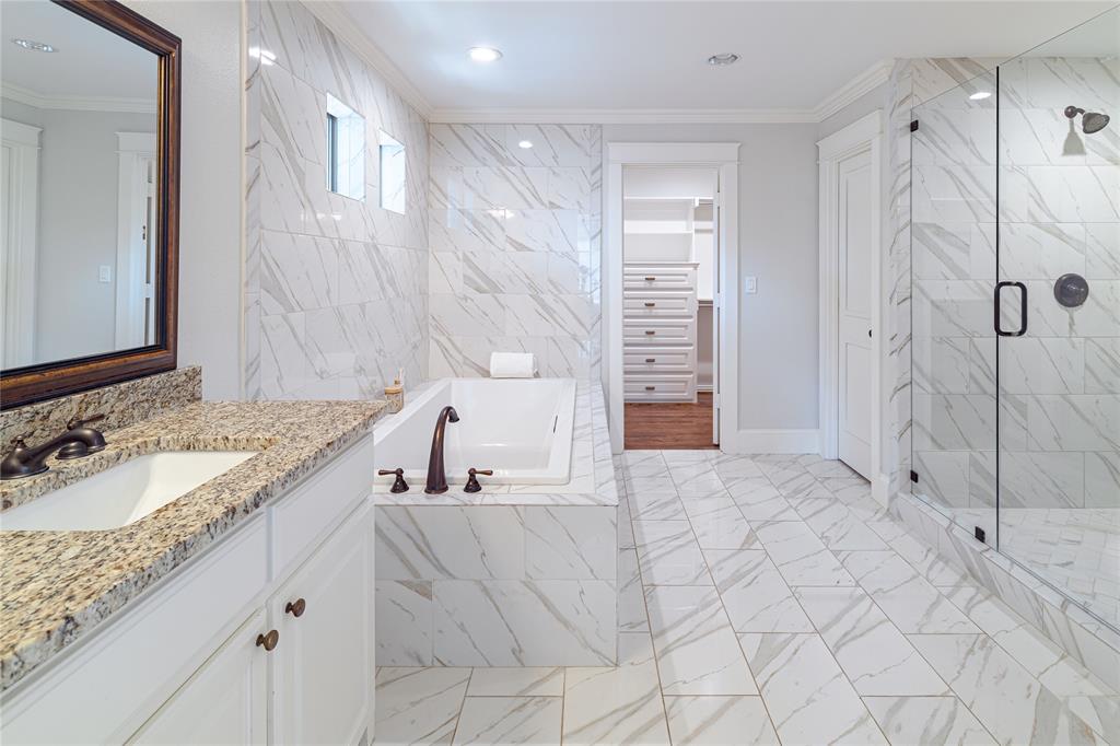Don’t miss the opportunity to own an absolute jewel box in the heart of East Dallas. Built in 2005 and beautifully transformed with the help of interior designers, Hughes & Lutz Interiors - not a detail was overlooked. Upon entry, you are greeted to a gracious 2-story foyer flanked by the formal dining room and study. Wood floors throughout, level-5 finish walls, and tasteful wood detailing carry you along, past the downstairs guest bedroom and full bathroom, leading to the open kitchen, living, and breakfast nook that are wrapped in windows and natural light. A chef’s dream, the kitchen boasts Thermador and Miele appliances, double ovens, ample storage and White Macaubus Quartzite countertops. The upstairs includes two guest bedrooms with walk-in closets joined by a jack-and-jill bathroom and an oversized laundry room with additional walk-in storage. The primary suite is a true retreat with amazing natural light, automatic window treatments and a large bathroom featuring separate vanities, glass enclosed shower, soaking tub and his & her closets. Outdoors, a new covered patio with a full outdoor kitchen, turfed backyard and in-ceiling heaters sets the stage for year-round entertaining. A 2-car detached garage and electric drive-way gate are the finishing touches on this swoon worthy home!