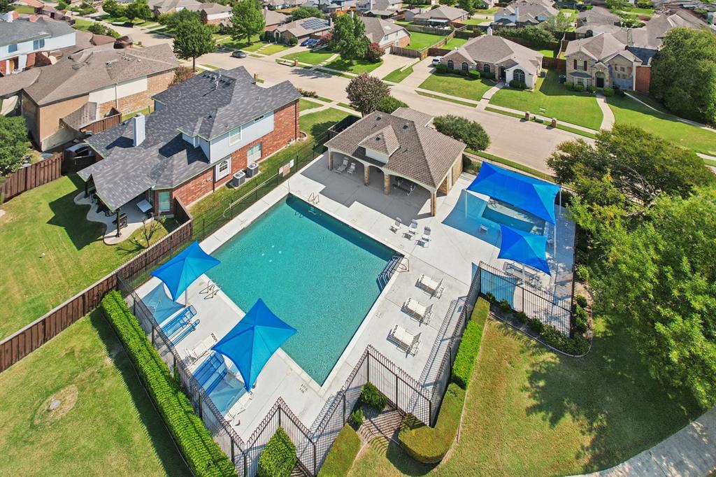 This spacious and versatile 5 bedroom home has it all including a large prime corner lot! Featuring a smart floor plan with a downstairs Master Suite with updated bath plus an additional office (with closet – could be a 6th bedroom for maximum flexibility! The large Kitchen has updated appliances (fridge & dishwasher just 2 years old). Practical flooring has no carpeting thru-out. Upstairs offers 4 bedrooms and 2 full baths – including a private Jack & Jill setup on its own wing. Solar screens add an element of energy efficiency. More features include a NEW AC unit downstairs on a 10 yr warranty, Upstairs unit is 5 yrs old and the water heater just 3 years old. The community pool is just 4 doors down on the same street! Great location in Collin County with-in sought after Wylie ISD.