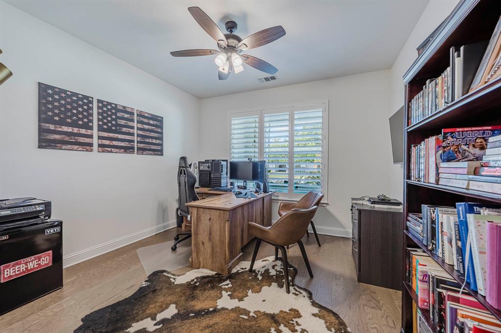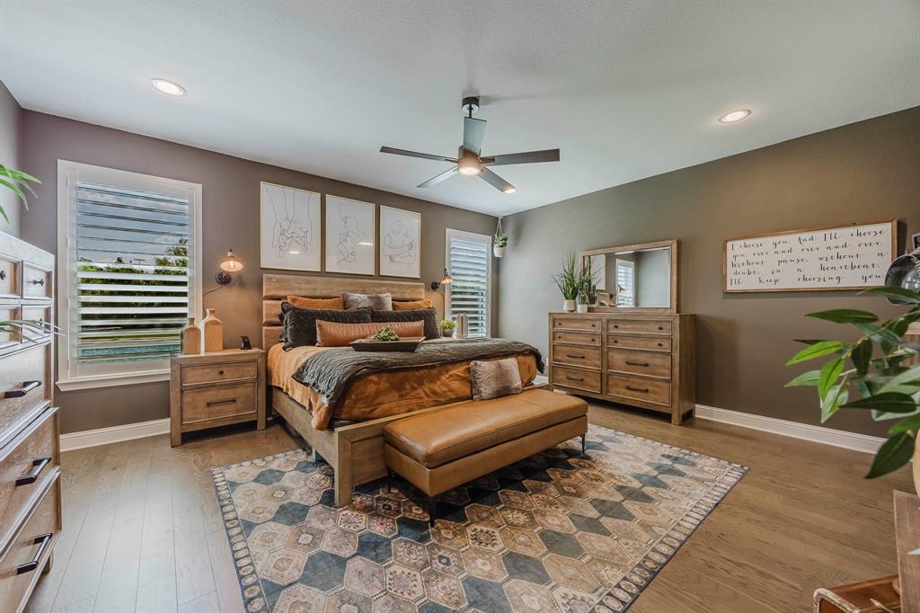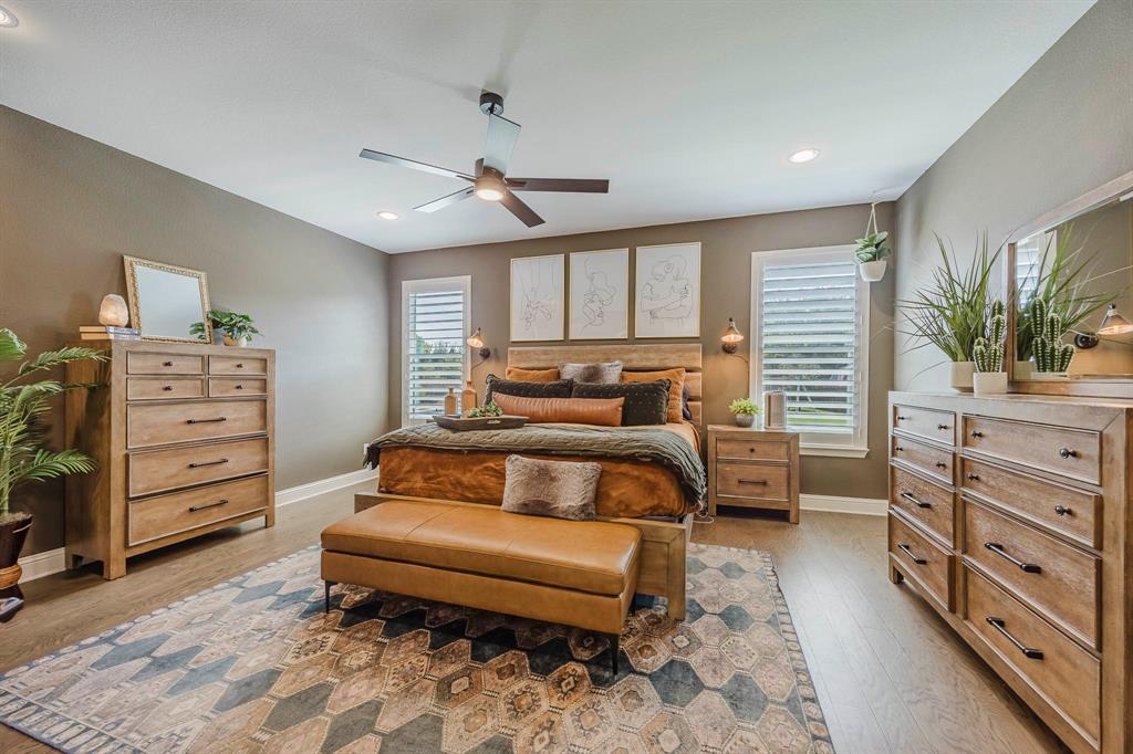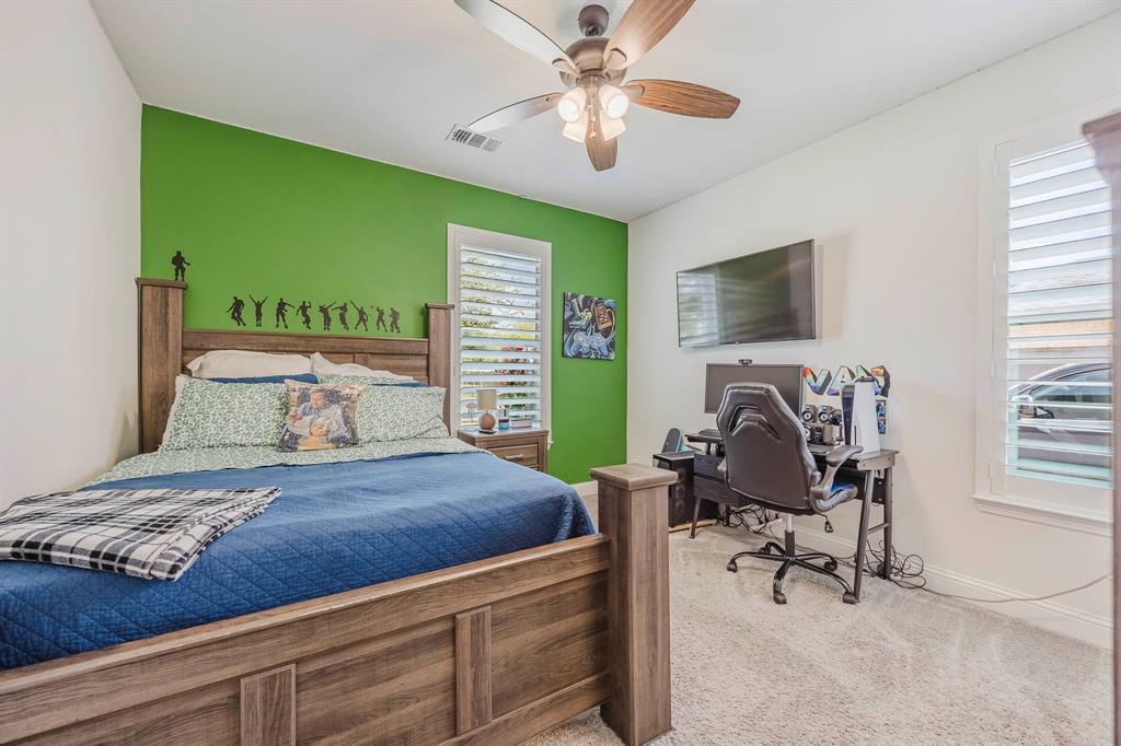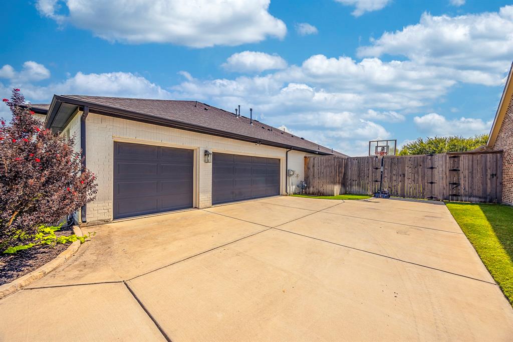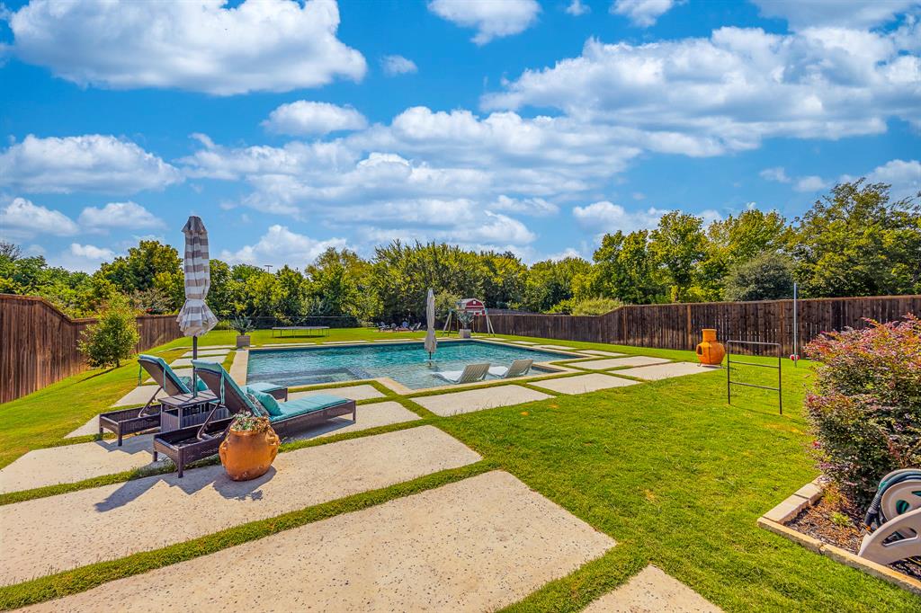 This beautiful 4-bedroom 3 bath home is ready for a new owner. With its lush landscaping and almost half an acre, you feel like you're in the country but right in NRH. The back of the property has a creek running through it with wildlife sightings. The heated in-ground pool and hot tub are perfect for relaxing or a fun game of water volleyball. This Graham Hart built home is perfect for entertaining with its open concept kitchen - living area, a huge island and butler's pantry-bar area. This home is wired for a generator if ever the need. Custom wood shutters are on every window and quartz countertops in the kitchen and bathrooms. Primary bath features dual vanities, garden tub and a walk-in separate shower. 2nd and 3rd bedrooms feature a jack n jill bathroom. Pool features a Polaris ALPHA iQ Robotic pool cleaner.