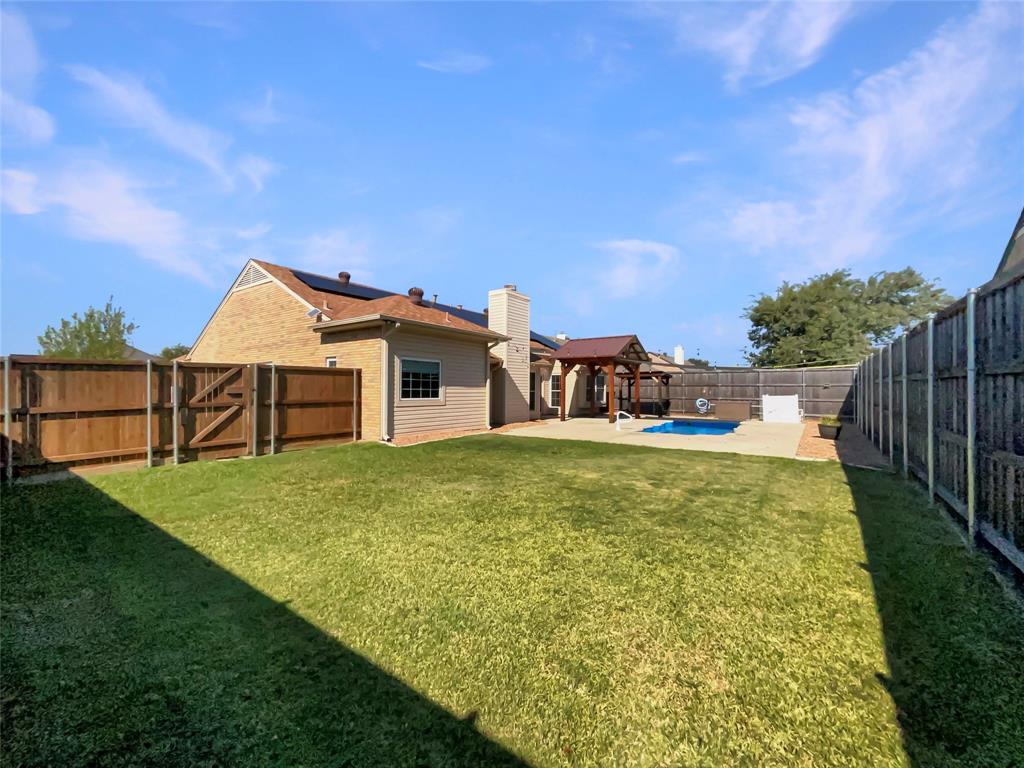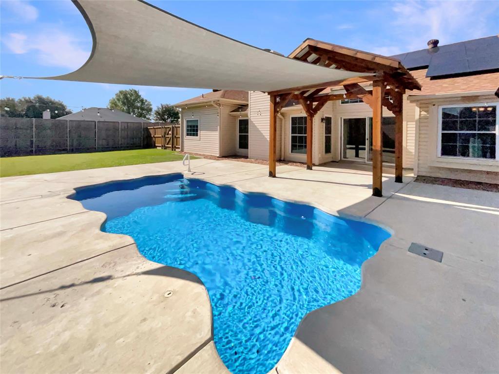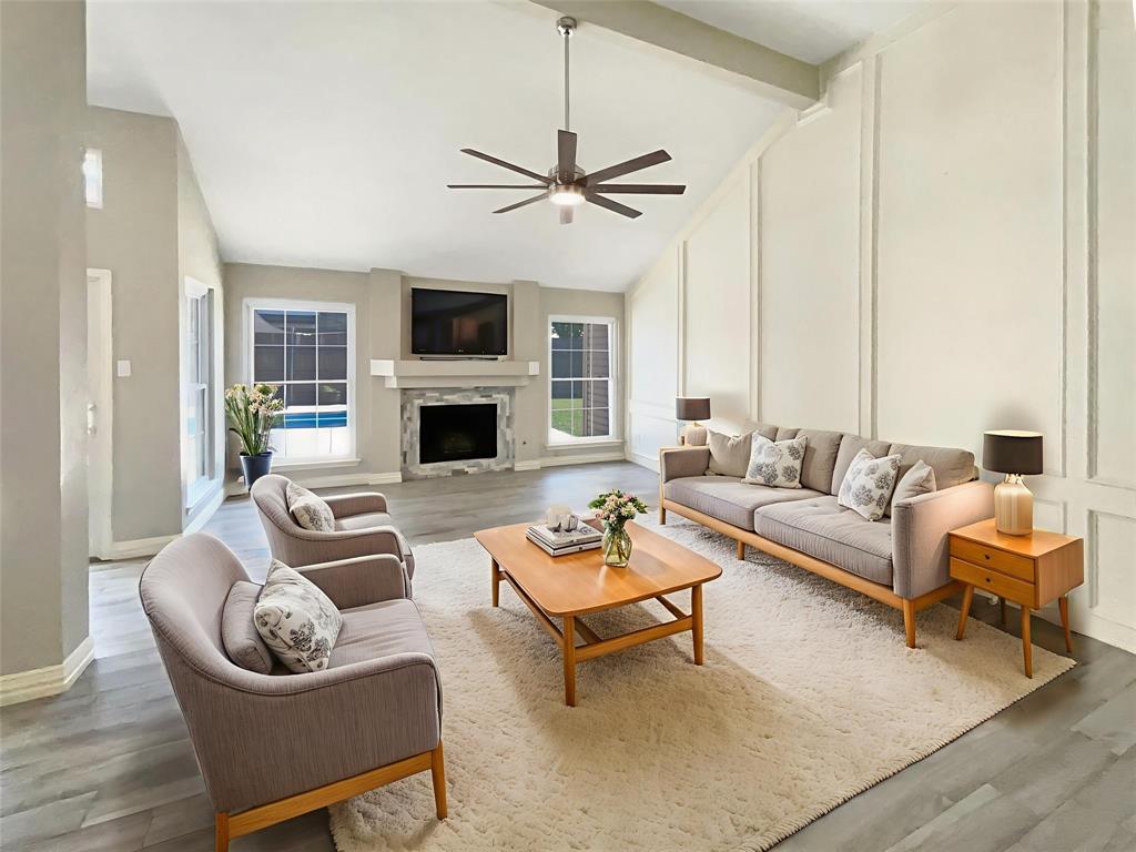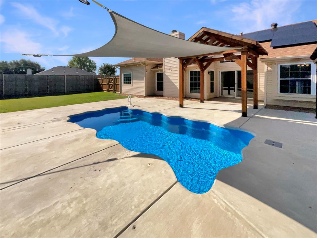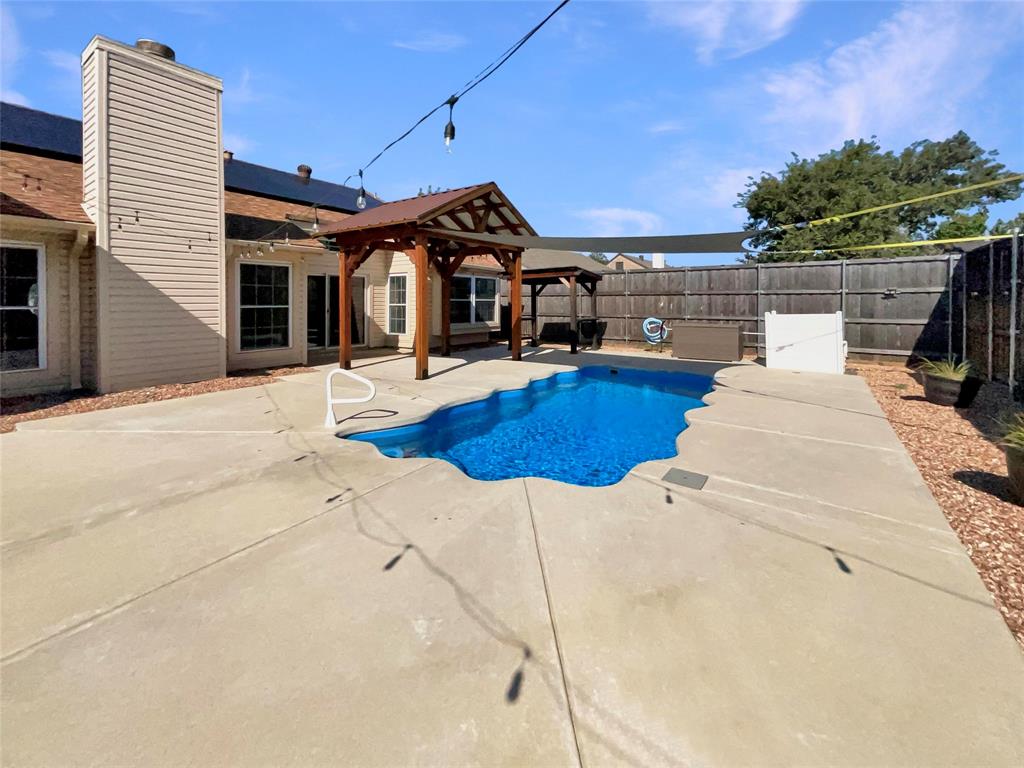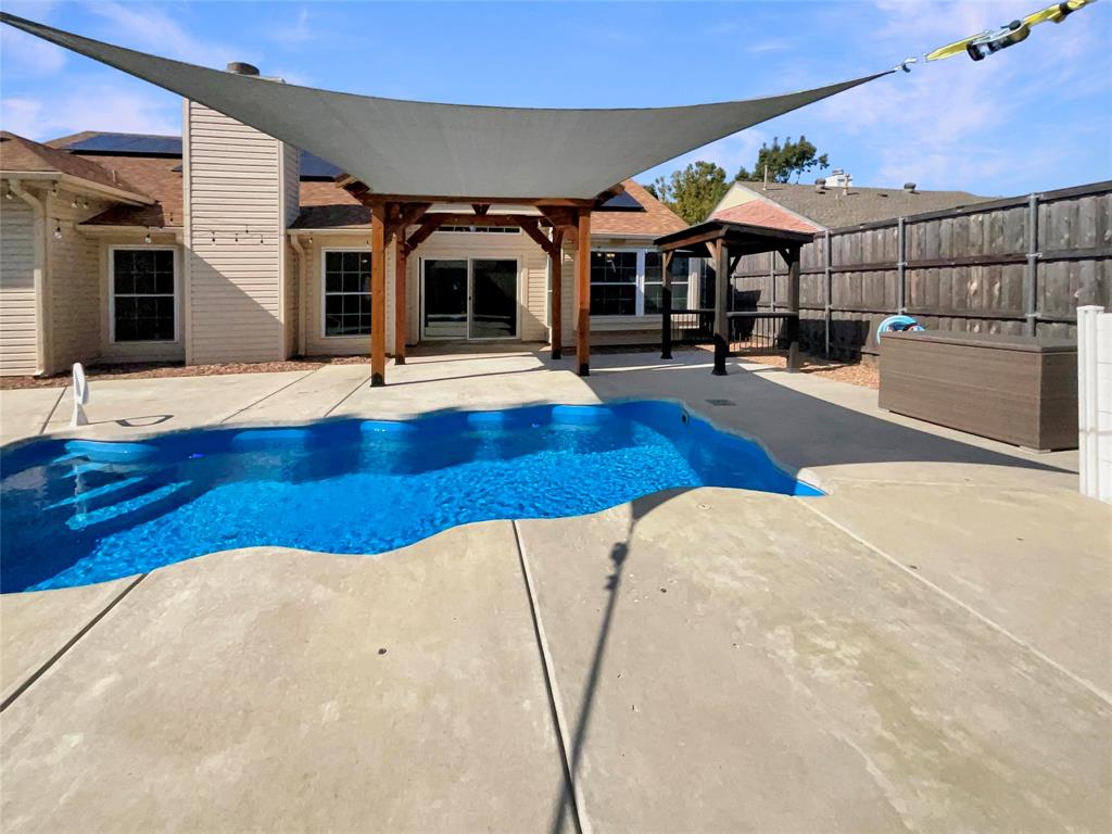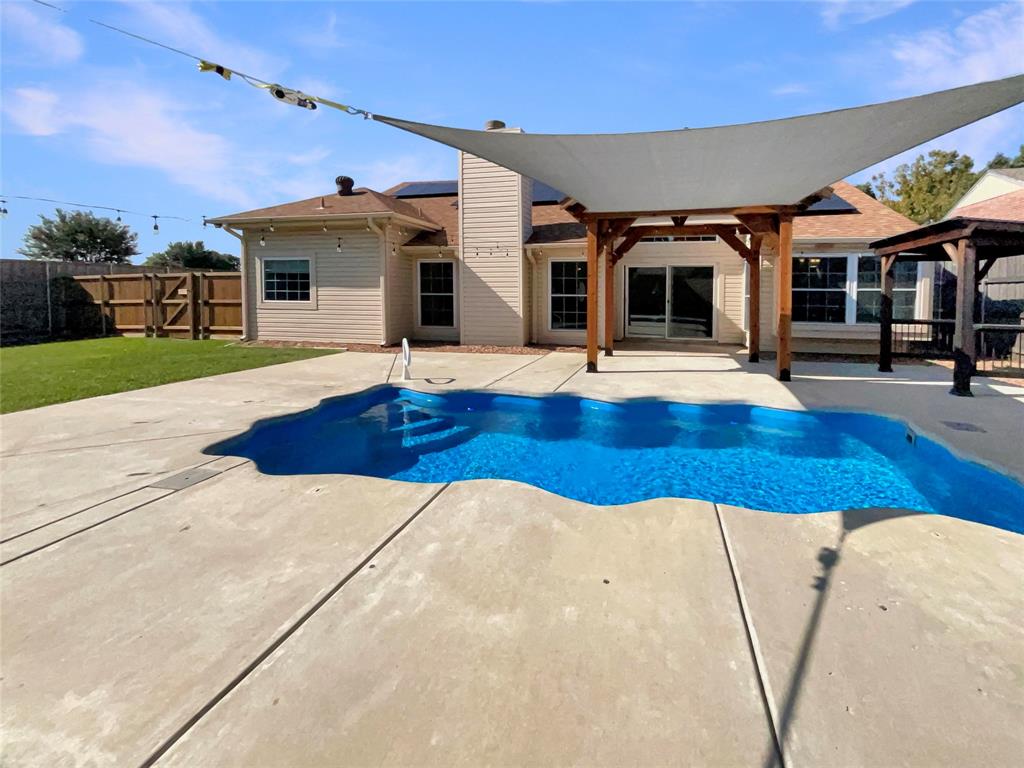 Welcome to this stunning property that boasts a plethora of desirable features. The living room is cozy and inviting with a beautiful fireplace. The home is adorned with a neutral color paint scheme, providing a calming ambiance throughout. The kitchen is a chef's dream, equipped with all stainless steel appliances, an accent backsplash, and a center island for additional prep. The primary bedroom features a double closets for all your storage needs. The primary bathroom is a sanctuary with double sinks, a separate tub, and shower for ultimate relaxation. Outside, you'll find a covered patio overlooking a private in-ground pool, perfect for entertaining. The fenced-in backyard ensures privacy and security. This property is a must-see for those seeking a blend of comfort and style. Don't miss out on this gem! Don't miss out on this gem! This home has been virtually staged to illustrate its potential.. Included 100-Day Home Warranty with buyer activation