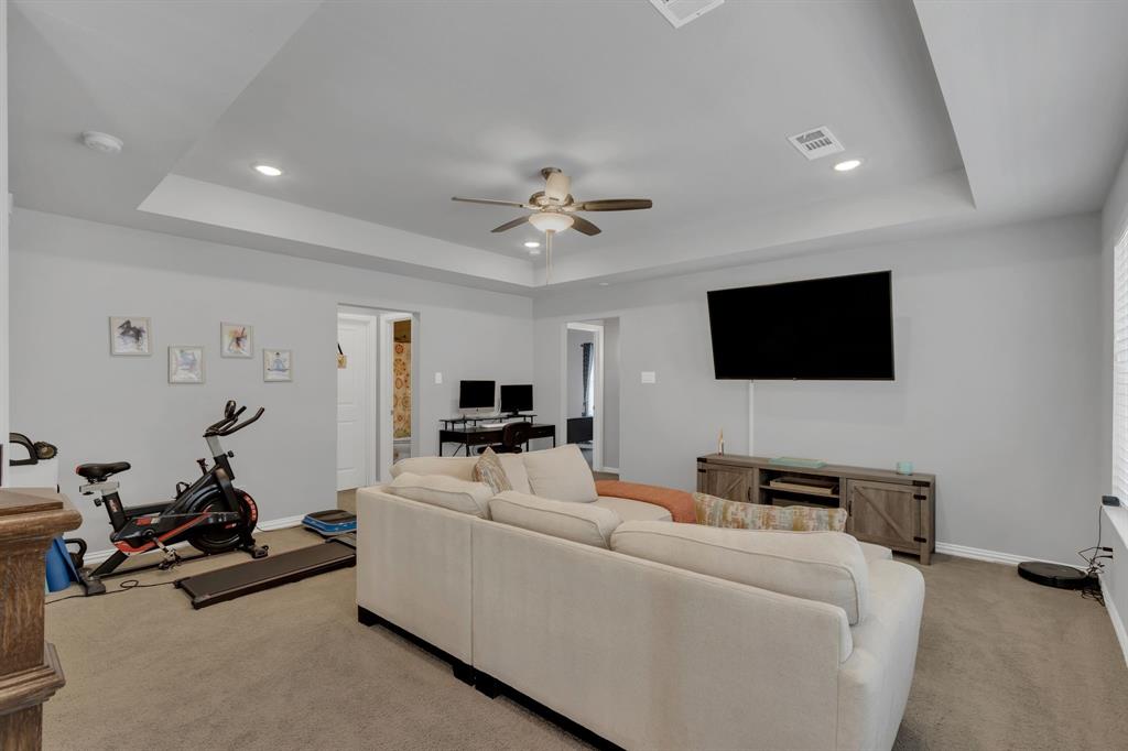 Welcome to your dream townhome in Castle Hills North Point, part of the vibrant Realm development—North Dallas’ premier live, work, and play destination. This stunning 3-bedroom, 2.5-bath townhome perfectly combines modern luxury, thoughtful design, and everyday comfort in one of the most sought-after master-planned communities in DFW. Step inside to soaring ceilings, rich wood floors, and abundant natural light that highlight the home’s open-concept floor plan. At the heart of the home is the gourmet kitchen featuring a large quartz island, 5-burner gas cooktop, stainless steel appliances, spacious pantry, and inviting dining area that flows seamlessly into the living room. A convenient half bath makes entertaining effortless. The private primary suite is your retreat, offering a spa-inspired bath with dual vanities, oversized walk-in shower, and his-and-her closets. Upstairs, you’ll find two generously sized secondary bedrooms plus a versatile loft-style game room—perfect for a home office, media space, or gym. Enjoy outdoor living year-round in your low-maintenance backyard oasis, complete with a covered patio, synthetic turf, and tall privacy fencing. The 2-car garage provides plenty of storage and parking. Lovingly maintained, this move-in-ready home showcases stylish finishes and thoughtful upgrades throughout. Living in Castle Hills means more than just owning a home—it’s about embracing a lifestyle. Residents enjoy exclusive access to five private fitness centers, resort-style pools, community parks, and endless walking trails. With quick access to Hwy 121, DNT, and I-35, you’re minutes from DFW’s top destinations including Grandscape, Legacy West, The Star, and PGA Headquarters. Don’t miss your chance to own a move-in-ready townhome in Castle Hills North Point—where luxury, location, and lifestyle come together.