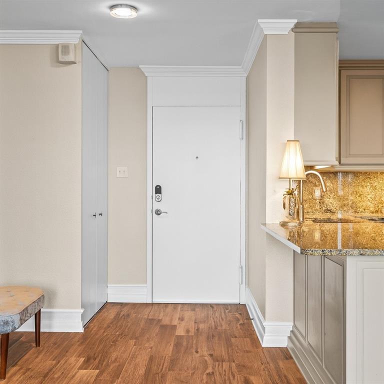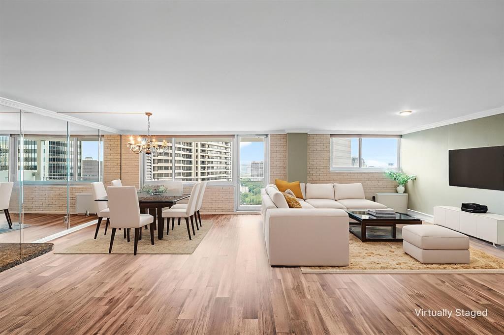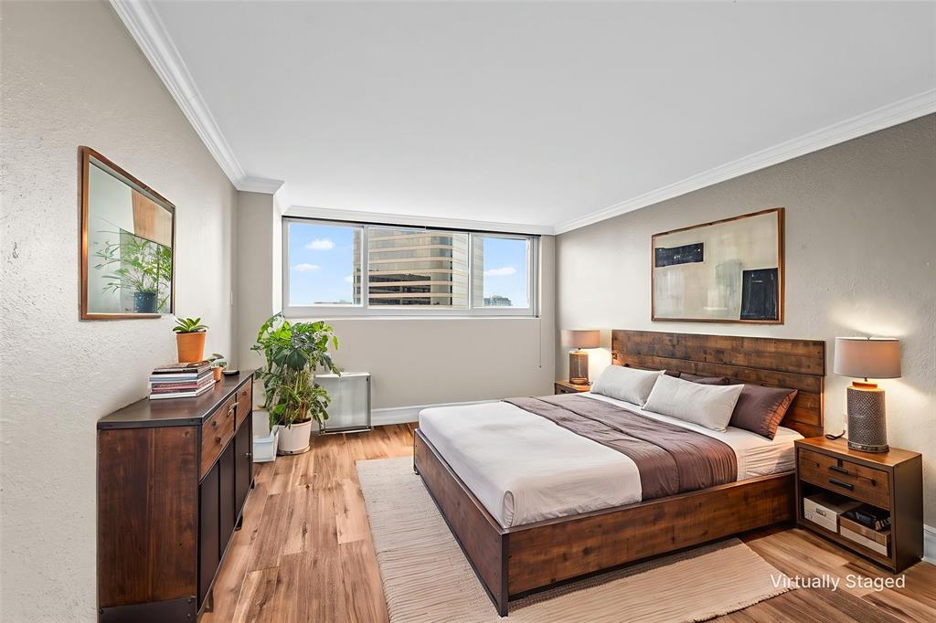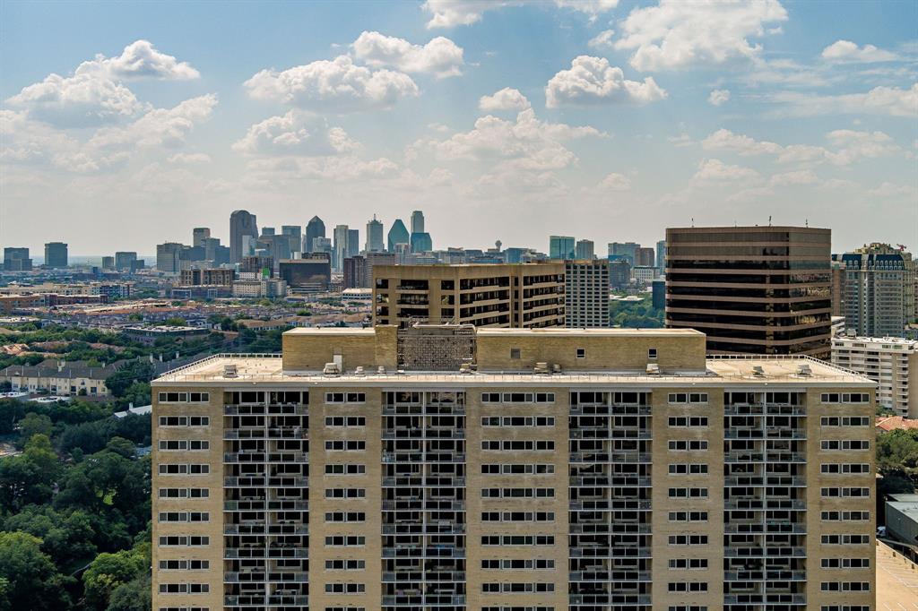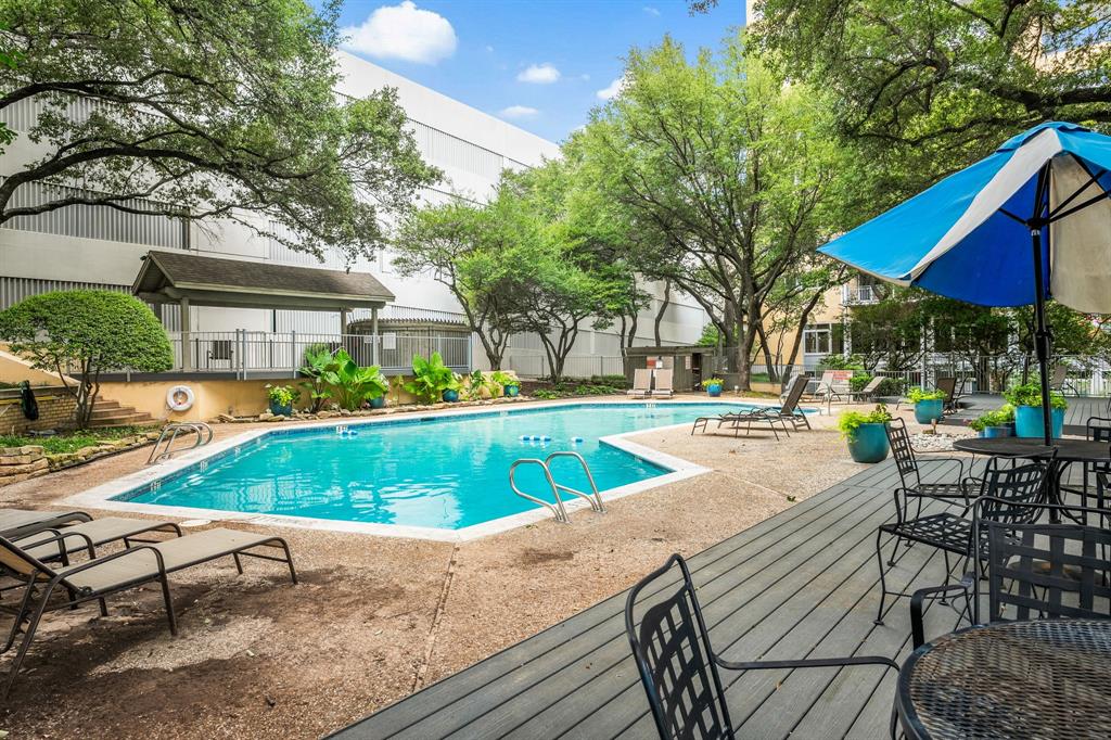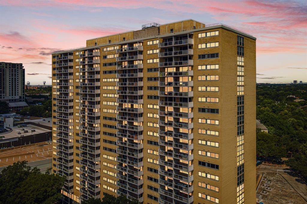 Sought-after 21st-floor corner unit in one of Dallas’ most iconic Mid-Century high-rises on prestigious Turtle Creek Blvd. This exquisitely remodeled 2 bed, 2 bath condo boasts an open floor plan, wood-look tile floors, smooth ceilings, and abundant storage with five closets. Walls of windows lead to a private balcony with sweeping South and West city view and sunsets over Turtle Creek and lush pool grounds. The building’s timeless design has been meticulously maintained. You will find electric blinds in the living area and blackout blinds in the bedrooms. HOA dues include valet parking, offering true lock-and-leave convenience. Amenities abound: resort-style pool, spa, sauna, fitness center, private dog park, outdoor grills, library, conference room, and more. The internet is the only fee not included in HOA dues. Perfectly located minutes from Downtown, Park Cities, and Love Field. FHA and VA approved. A rare opportunity to own a sophisticated corner retreat with unmatched views and amenities.
