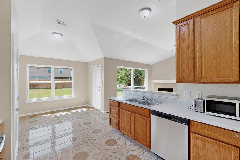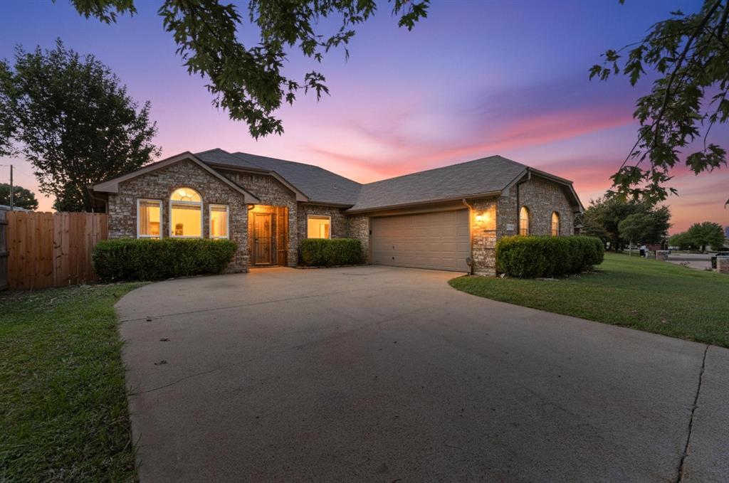 This charming single-story brick home is conveniently located near the new Joe V's smart shop. Featuring five bedrooms and an open floor plan with vaulted ceilings, the property has been well-maintained and boasts numerous recent upgrades, including flooring, a neutral paint palette, updated windows, a modern bathroom vanity, and a wooden privacy fence in the backyard. The spacious living room, highlighted by a fireplace and a wall of windows, offers a picturesque view of the oversized backyard. The kitchen, which seamlessly connects to the living area, is equipped with ample cabinetry, generous counter space, and stainless steel appliances. The primary bedroom provides enough space for a seating area and includes an en suite bathroom with a separate shower and bathtub, as well as a walk-in closet. Additionally, the home is situated close to a variety of shopping and dining options, schools, parks, and major freeways.