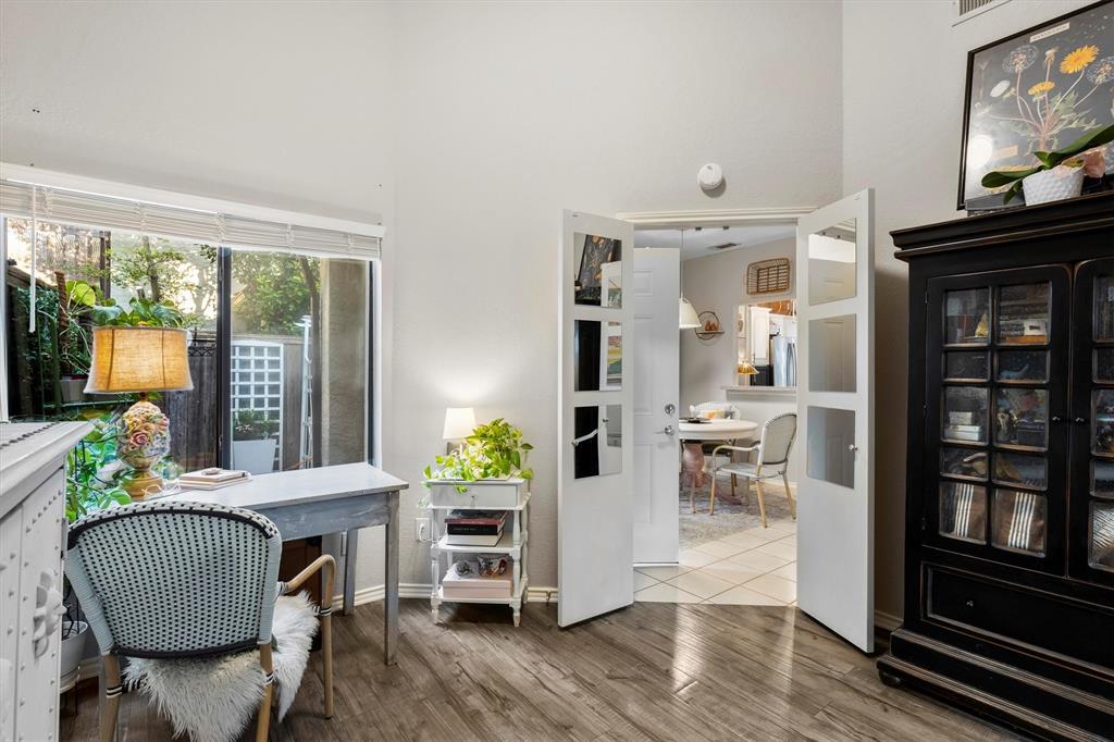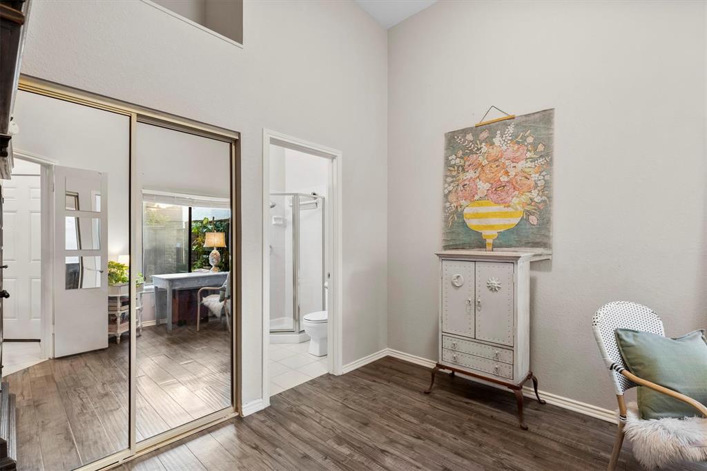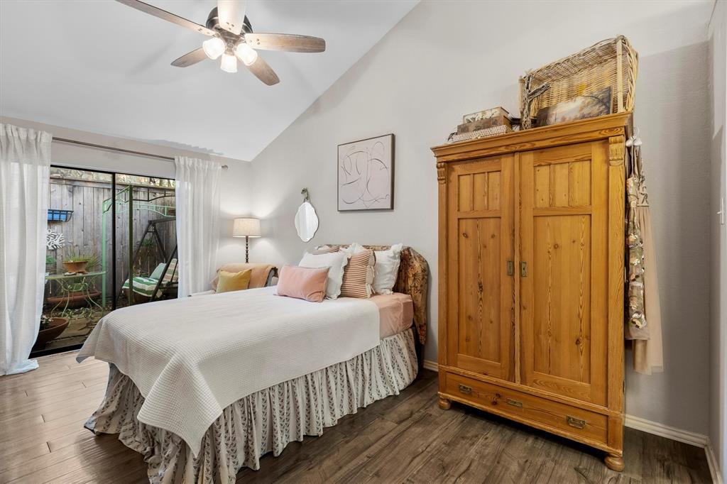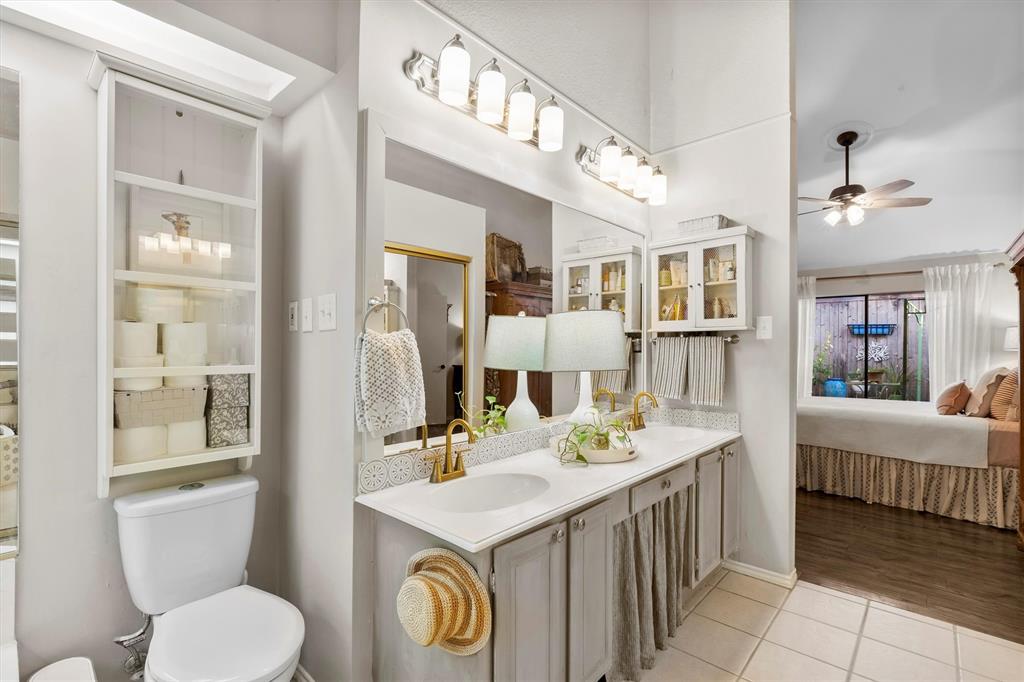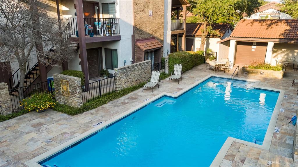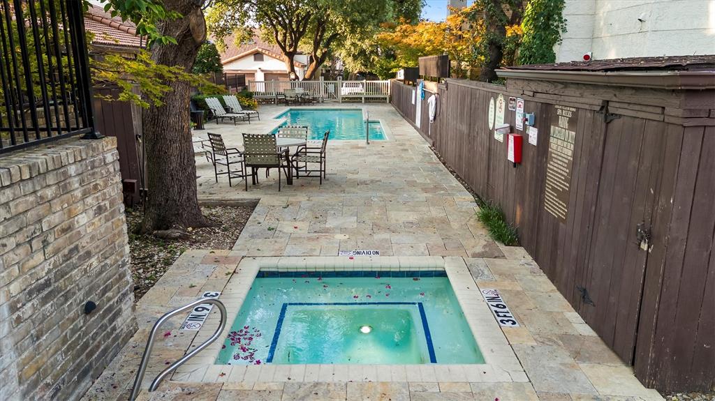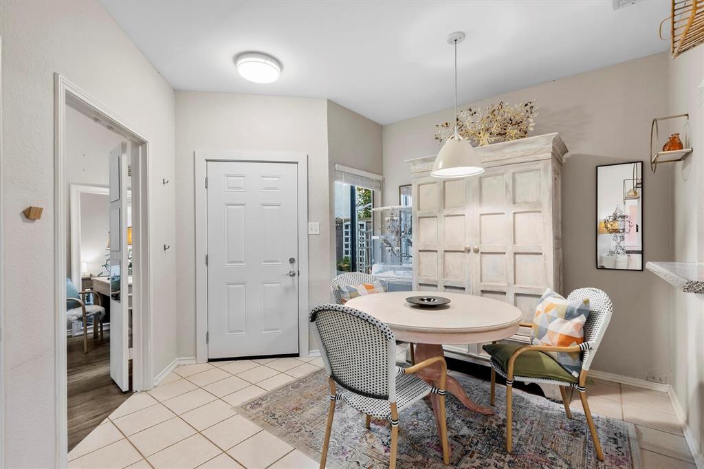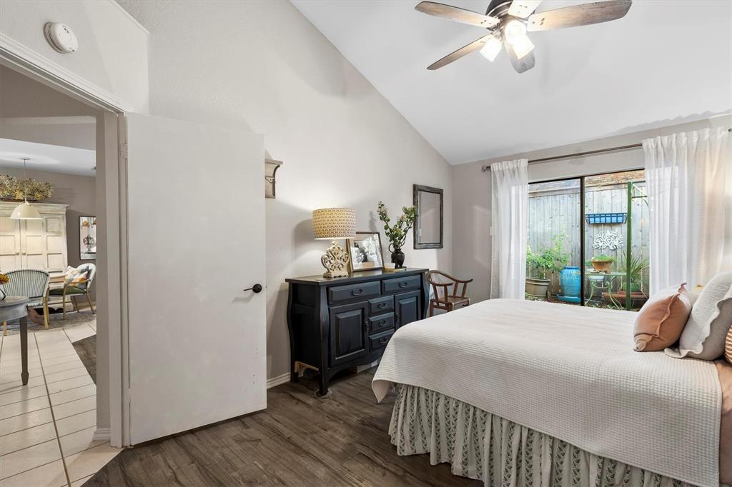 Sought-after single-story unit featuring a rare wraparound courtyard, perfect for outdoor living and entertaining. Nestled in a private setting yet conveniently close to the community pool and amenities. The open floor plan is filled with natural light, enhanced by vaulted ceilings in the living and dining areas. A welcoming entry leads through the courtyard to a replaced six-panel front door with storm door for added energy efficiency. Inside, enjoy a wood-burning fireplace, updated light fixtures, and a ceiling fan with remote. The kitchen offers a replaced glass cooktop range, gooseneck faucet, and updated cabinet hardware. The split-bedroom layout provides privacy, with the primary suite featuring a replaced ceiling fan, en suite bath with separate shower and tub, painted cabinets, new hardware, and updated vanity lights. Step outside to your private wraparound yard and patio — a rare find offering both space and seclusion. The Mediterranean-style community offers two pools, a hot tub, a cabana, and pool restrooms. HOA dues cover exterior maintenance & insurance, water, sewer, and trash. Conveniently located within Plano ISD and within walking distance to a park and school. Enjoy easy access to top-tier shopping, dining, DNT, and PGBT—blending luxury and convenience seamlessly. Don't overlook the 1-car garage and 1 reserved parking space included.