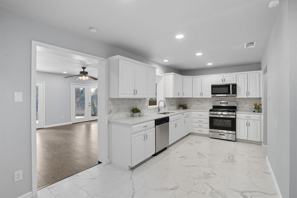 Welcome to this fully reimagined 4-bedroom, 2-bath home where every detail has been thoughtfully refreshed from the ground up. Nothing was overlooked. Inside, you’ll find fresh flooring throughout, soaring ceilings that create an open, airy flow, and a bright layout designed for both comfort and entertaining. The kitchen is the heart of the home, featuring sleek new cabinetry, modern finishes, and seamless connection to the spacious living area. The primary suite offers a private retreat, complemented by fully updated bathroom and generous secondary bedrooms. Outside, the backyard is perfect for evenings of relaxation or gatherings with friends. Move-in ready and completely transformed—this is a rare chance to own a like-new home with the charm of an established neighborhood, nestled in a quiet, well-established community lined with mature trees and meticulously maintained properties. A nearby park with swings, slides, and basketball courts brings recreation right to your doorstep. Essential services—including hospital, police, and fire—are within 5 miles, and grocery stores and two major malls are just minutes away. The perfect balance of tranquility and accessibility—schedule your tour today!