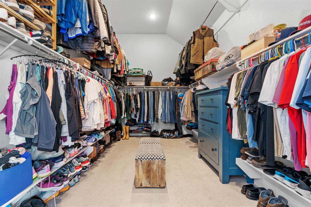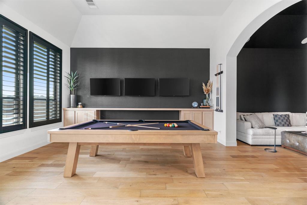 Inside is just as impressive if not more.. over 3,700 square feet, 4 bedrooms (3 are en-suites), a media room, and a game room that even includes a pool table and custom built in cabinetry. Counter-to-ceiling backsplash, interior cabinet lighting, a massive island, and a wet bar in the kitchen. Luxury high-end details, like plantation shutters, custom board and batten finishes, an epoxied garage floor. The primary suite? It has a walk-in closet thats big enough to be a living room.