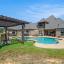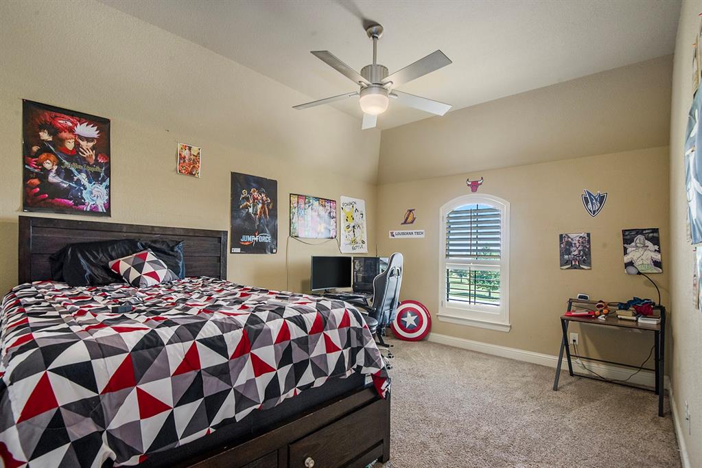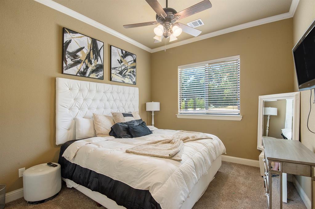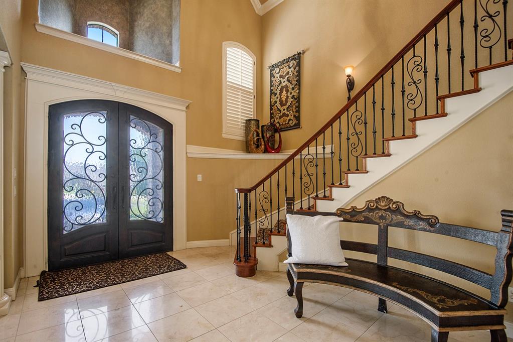 Nestled in this gated, desirable Hilltop Ranch SD, this breathtaking 4-bedroom, 3.5-bathroom, 5,064 sq. ft. brick and stacked stone French chateau-style estate embodies luxury at every turn. From the striking circular driveway to the ornate exterior features—including wrought iron treatments, elegant turrets, an attached garage plus a detached 2-car garage and a charming pergola—this property offers sophistication and curb appeal in equal measure. Inside, the grandeur continues with a curved wrought iron staircase, stately columns, arched doorways, and soaring vaulted ceilings throughout. Rich wood-treatment focal walls and bright, open living spaces welcome you into an amazing foyer with views to both the upper and lower levels. The generously sized chef’s kitchen is a true showpiece, complete with stainless steel appliances, granite countertops, an oversized island, antiqued cabinetry, and a separate breakfast area that perfectly complements the home’s French provincial feel. A formal dining room sets the stage for unforgettable meals, while a huge covered patio just off the living room makes entertaining a breeze. The main-level primary suite is a retreat, featuring a cozy fireplace, a spa-like ensuite with a garden tub, dual vanities, and a walk-in closet with a private walk-out patio. Also on the main level, you’ll find a thoughtfully placed secondary bedroom and two dedicated offices for flexibility and productivity. Upstairs, enjoy two versatile living spaces—including a media room and an expansive flex area with its own walk-out balcony—along with additional bedrooms and a full bathroom. 3-electric cooling units adds to the homes comfort. Outdoors, a private, fenced, and tree-lined 1.01-acre backyard awaits, complete with a stylish curved swimming pool, 2-seating areas, and a pergola for year-round enjoyment! Excellent schools and a community pond makes this turn-key property an unparalleled combination of comfort and elegance. Make it yours today!