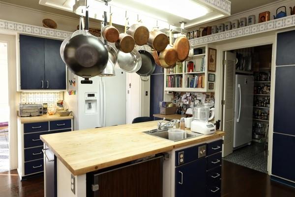 Gourmet kitchen with butcher block, double oven, two stovetops, and two sinks