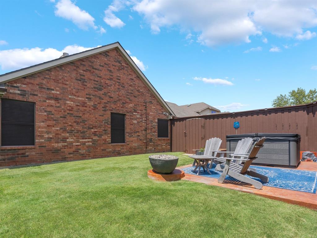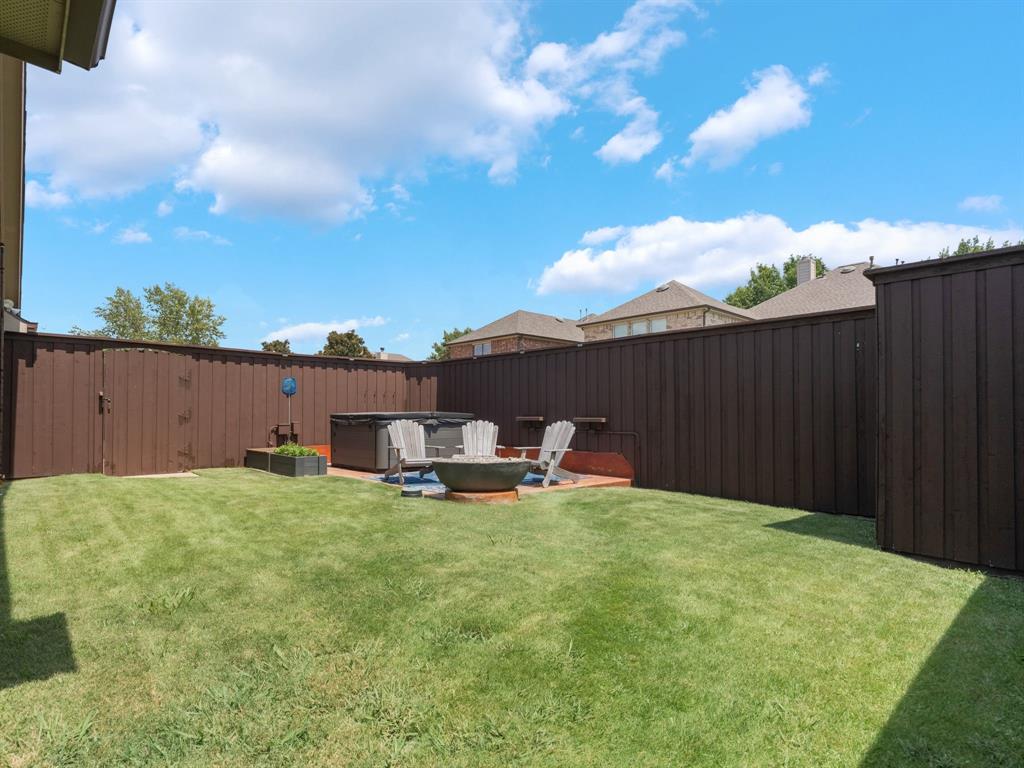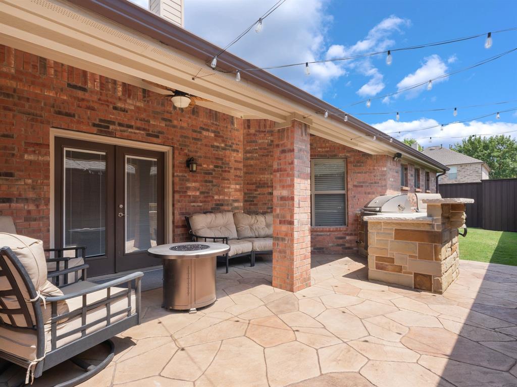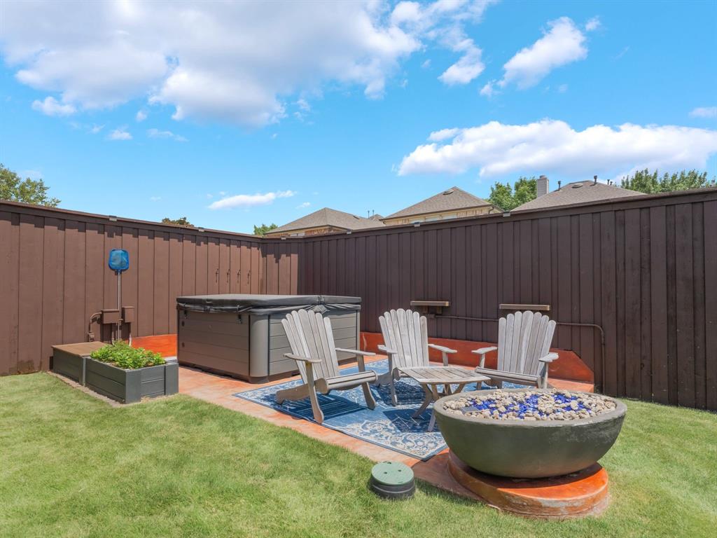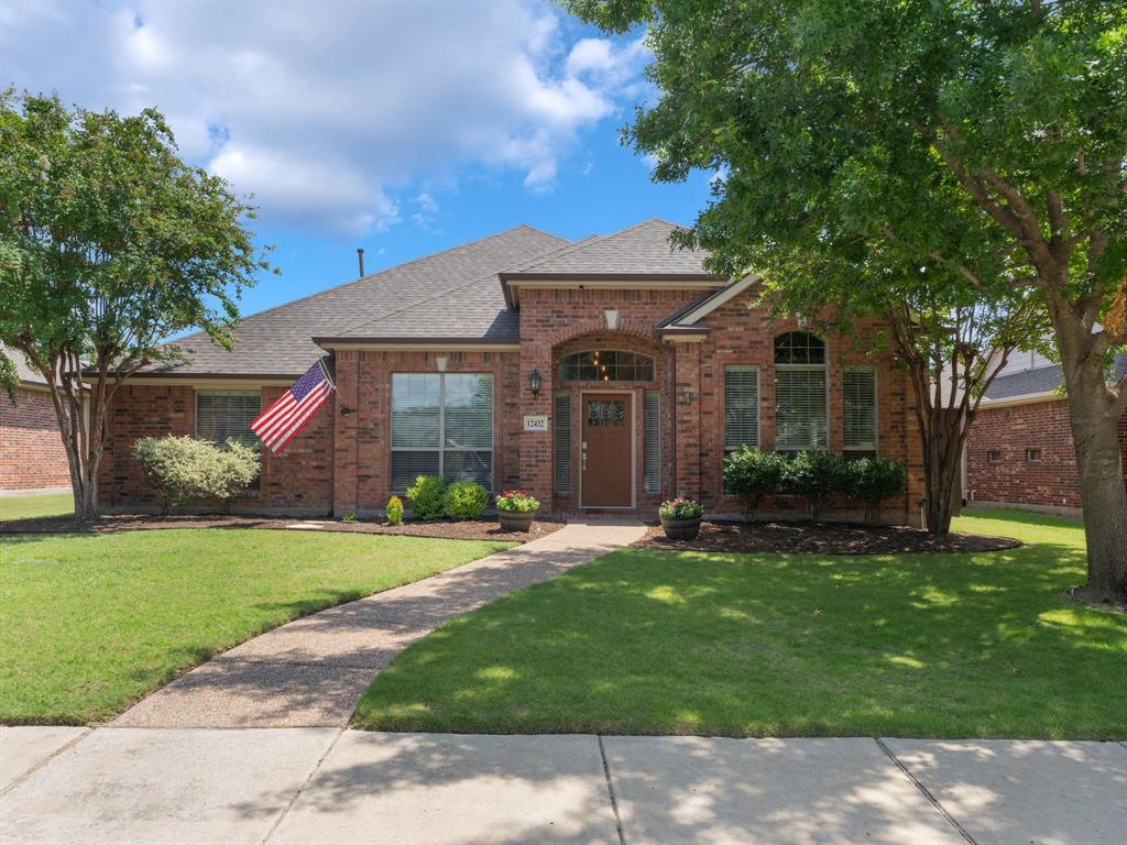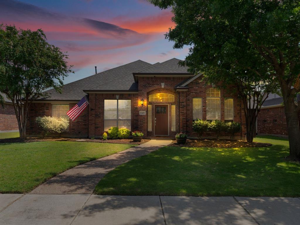 Welcome to your dream home nestled in the highly desirable Northridge community of West Frisco! Beautifully updated 1-story home offers an exceptional blend of comfort, style, and functionality w an open-concept layout, fresh designer paint, soaring ceilings, and countless custom touches throughout. As you arrive, a striking modern front door sets the tone for the stylish interior. Inside, you'll find warm wood flooring, a spacious formal dining room (currently used as a cozy sitting area), and a versatile executive study or optional 4th bedroom—perfect for remote work or guests. Luxurious primary suite is a true retreat, featuring a tray ceiling, relaxing seating area, spa-like en-suite w a jetted tub, separate shower, and a jaw-dropping custom walk-in closet fit for a fashionista. Entertain effortlessly in the oversized family room complete w a gas fireplace framed by a stunning ceiling-high custom shiplap accent wall. The room flows seamlessly into the heart of the home: chef-inspired eat-in kitchen boasting: Under-cabinet lighting illuminating countertops, Painted cabinetry w custom woodwork, Built-in spice racks, bar-style sink cup washer, and gas cooktop paired w a stylish shiplap-wrapped vent hood, Black SS appliances, including a microwave-convection oven combo and a charming window seat that adds character and functionality. Step outside to your private backyard oasis, designed for year-round entertaining! Enjoy: Covered patio w built-in gas grill and outdoor refrigerator, Magical string lights over an El Frisco-style dining space, 8-ft privacy fence, and a hot tub that conveys w the home. Plenty of room for gatherings, play, or peaceful evenings under the stars. Oversized 2.5-car garage offers ample storage, and the community pool and playground are just a short walk away, making this home perfect for all lifestyles. Located near the PGA headquarters, world-class golf courses, shopping, dining, and top-rated Frisco ISD schools, this home checks every box!