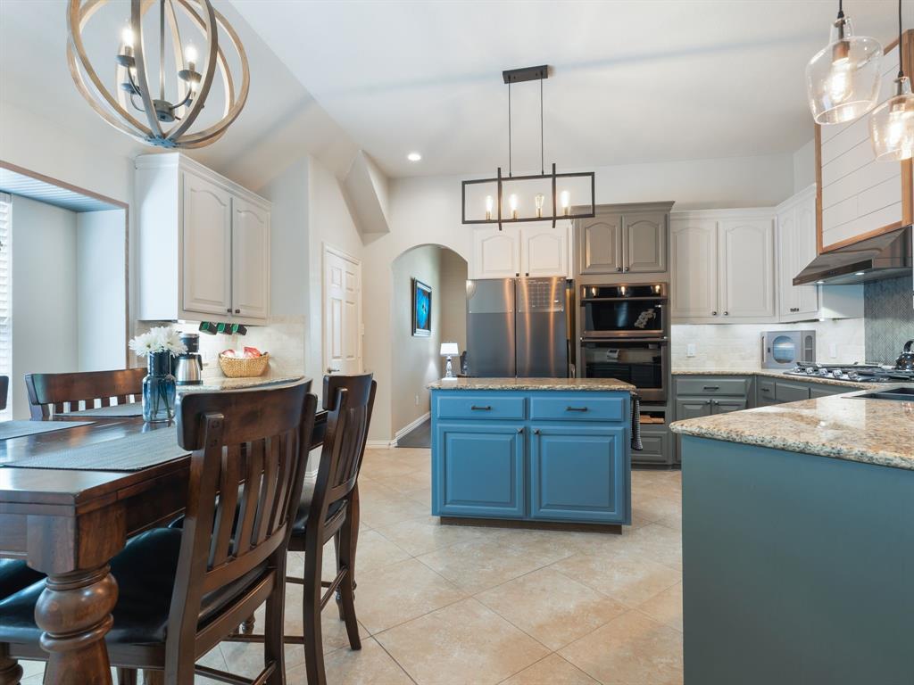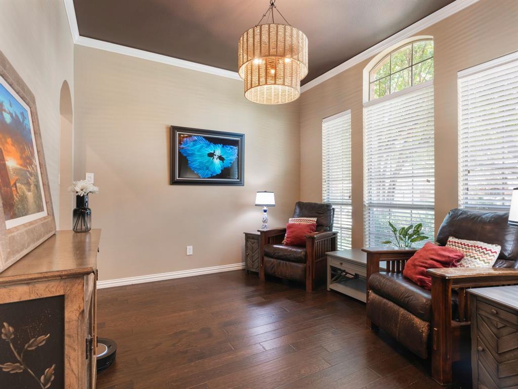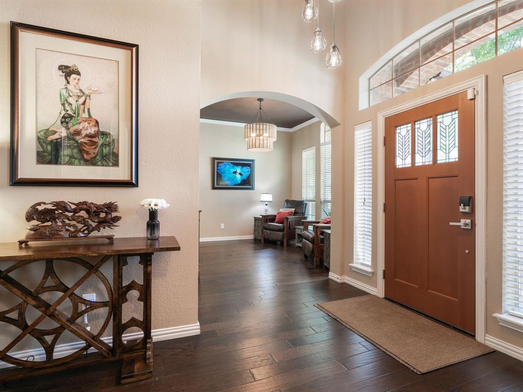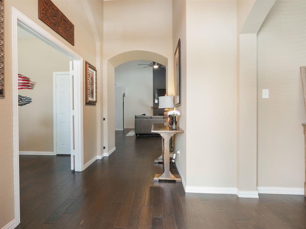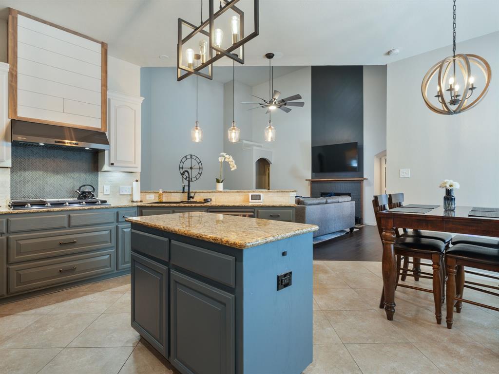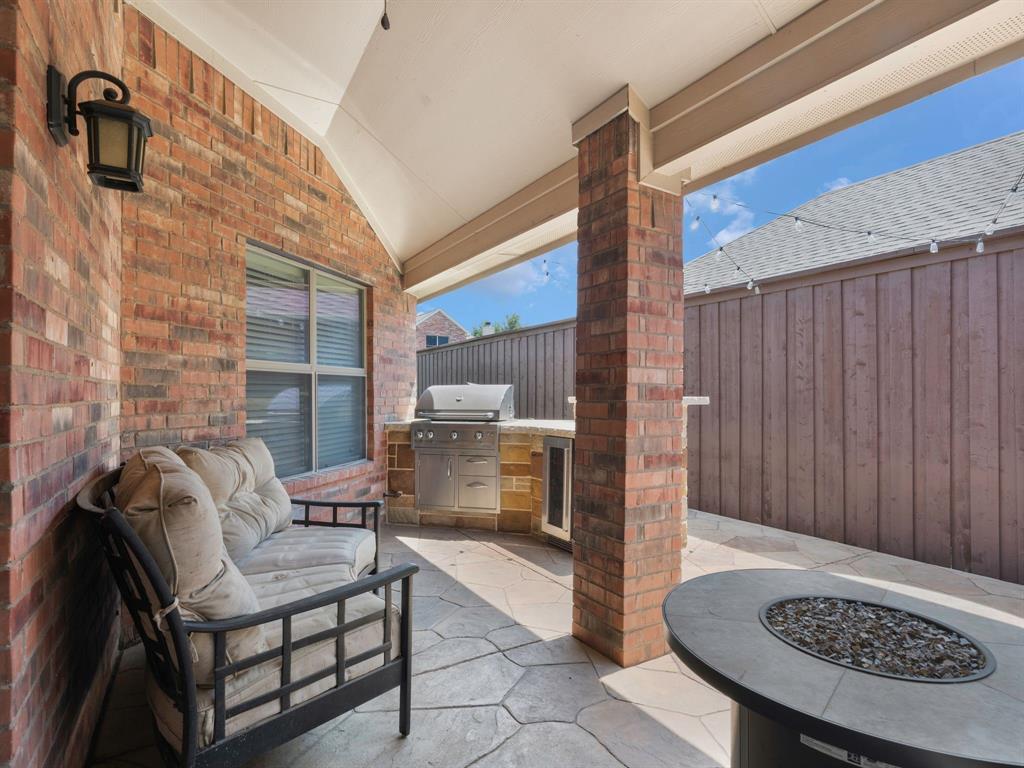 Welcome to your dream home nestled in the highly desirable Northridge community of West Frisco! Beautifully updated 1-story home offers an exceptional blend of comfort, style, and functionality w an open-concept layout, fresh designer paint, soaring ceilings, and countless custom touches throughout. As you arrive, a striking modern front door sets the tone for the stylish interior. Inside, you'll find warm wood flooring, a spacious formal dining room (currently used as a cozy sitting area), and a versatile executive study or optional 4th bedroom—perfect for remote work or guests. Luxurious primary suite is a true retreat, featuring a tray ceiling, relaxing seating area, spa-like en-suite w a jetted tub, separate shower, and a jaw-dropping custom walk-in closet fit for a fashionista. Entertain effortlessly in the oversized family room complete w a gas fireplace framed by a stunning ceiling-high custom shiplap accent wall. The room flows seamlessly into the heart of the home: chef-inspired eat-in kitchen boasting: Under-cabinet lighting illuminating countertops, Painted cabinetry w custom woodwork, Built-in spice racks, bar-style sink cup washer, and gas cooktop paired w a stylish shiplap-wrapped vent hood, Black SS appliances, including a microwave-convection oven combo and a charming window seat that adds character and functionality. Step outside to your private backyard oasis, designed for year-round entertaining! Enjoy: Covered patio w built-in gas grill and outdoor refrigerator, Magical string lights over an El Frisco-style dining space, 8-ft privacy fence, and a hot tub that conveys w the home. Plenty of room for gatherings, play, or peaceful evenings under the stars. Oversized 2.5-car garage offers ample storage, and the community pool and playground are just a short walk away, making this home perfect for all lifestyles. Located near the PGA headquarters, world-class golf courses, shopping, dining, and top-rated Frisco ISD schools, this home checks every box!