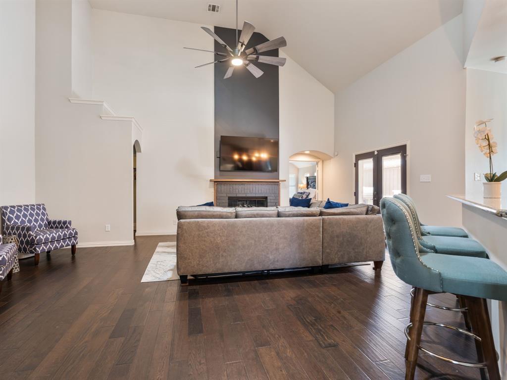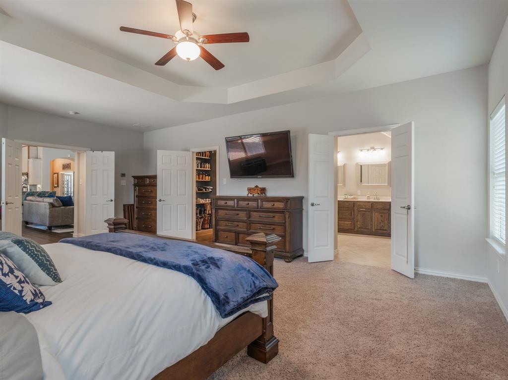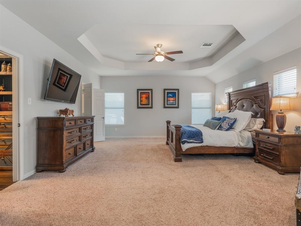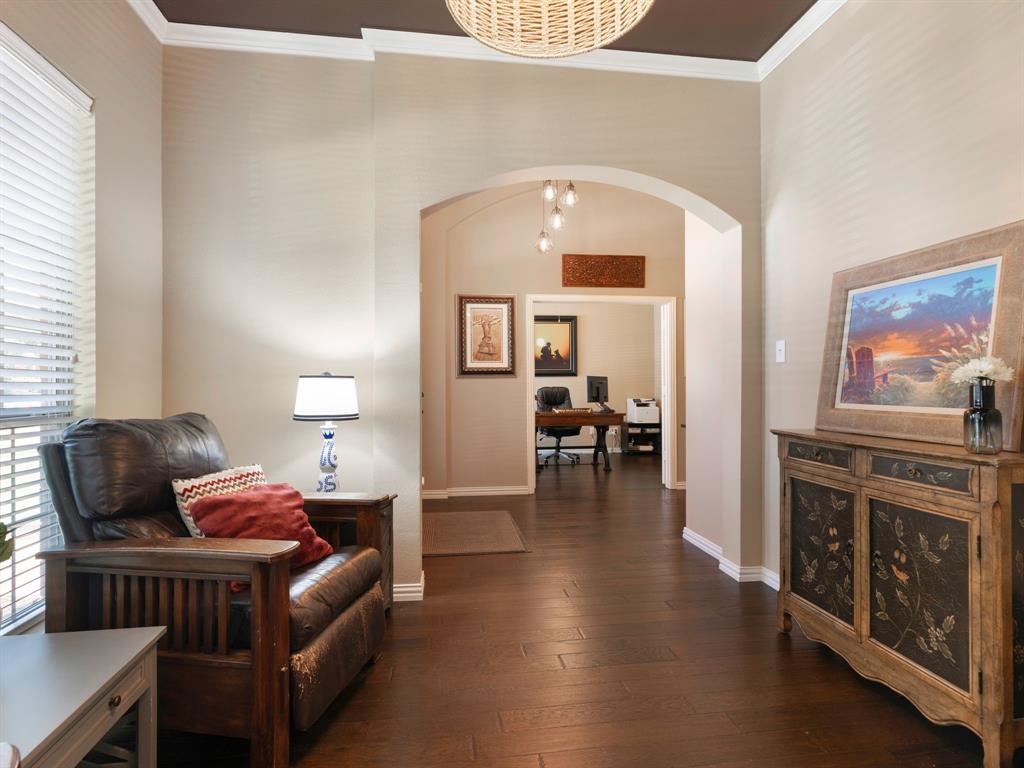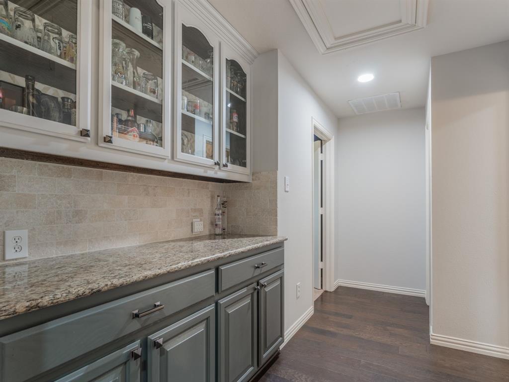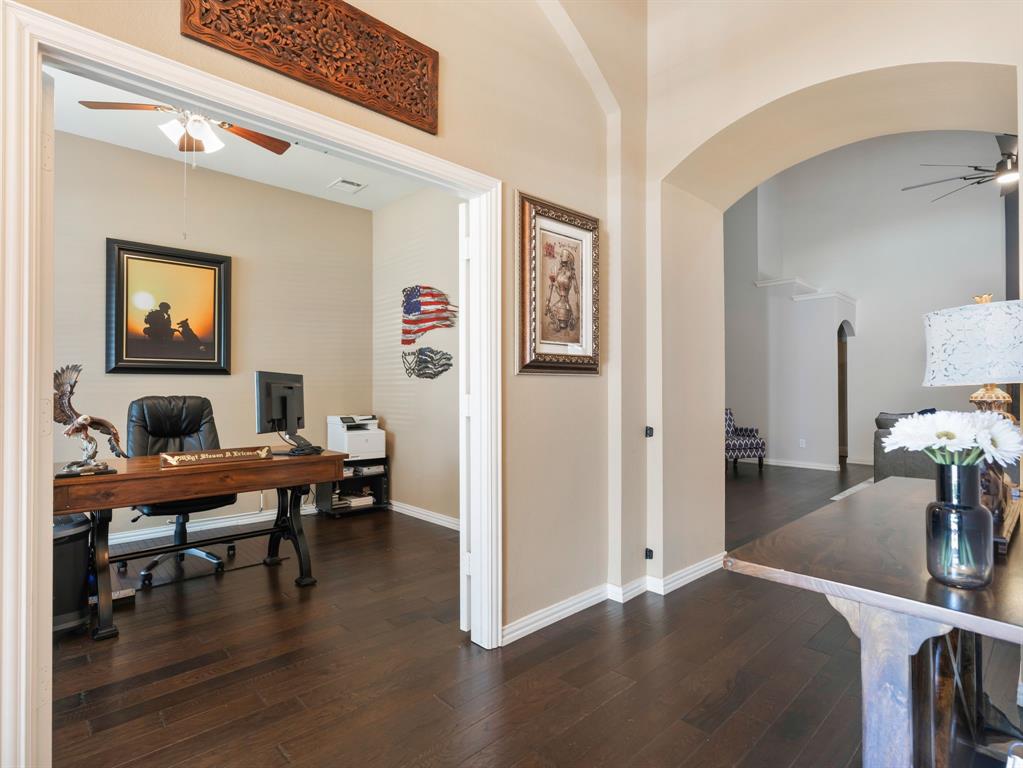 Welcome to your dream home nestled in the highly desirable Northridge community of West Frisco! Beautifully updated 1-story home offers an exceptional blend of comfort, style, and functionality w an open-concept layout, fresh designer paint, soaring ceilings, and countless custom touches throughout. As you arrive, a striking modern front door sets the tone for the stylish interior. Inside, you'll find warm wood flooring, a spacious formal dining room (currently used as a cozy sitting area), and a versatile executive study or optional 4th bedroom—perfect for remote work or guests. Luxurious primary suite is a true retreat, featuring a tray ceiling, relaxing seating area, spa-like en-suite w a jetted tub, separate shower, and a jaw-dropping custom walk-in closet fit for a fashionista. Entertain effortlessly in the oversized family room complete w a gas fireplace framed by a stunning ceiling-high custom shiplap accent wall. The room flows seamlessly into the heart of the home: chef-inspired eat-in kitchen boasting: Under-cabinet lighting illuminating countertops, Painted cabinetry w custom woodwork, Built-in spice racks, bar-style sink cup washer, and gas cooktop paired w a stylish shiplap-wrapped vent hood, Black SS appliances, including a microwave-convection oven combo and a charming window seat that adds character and functionality. Step outside to your private backyard oasis, designed for year-round entertaining! Enjoy: Covered patio w built-in gas grill and outdoor refrigerator, Magical string lights over an El Frisco-style dining space, 8-ft privacy fence, and a hot tub that conveys w the home. Plenty of room for gatherings, play, or peaceful evenings under the stars. Oversized 2.5-car garage offers ample storage, and the community pool and playground are just a short walk away, making this home perfect for all lifestyles. Located near the PGA headquarters, world-class golf courses, shopping, dining, and top-rated Frisco ISD schools, this home checks every box!