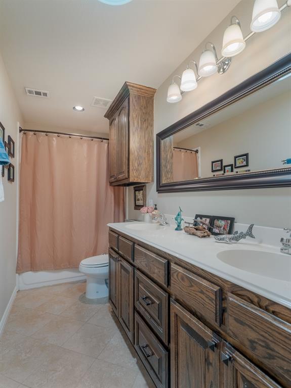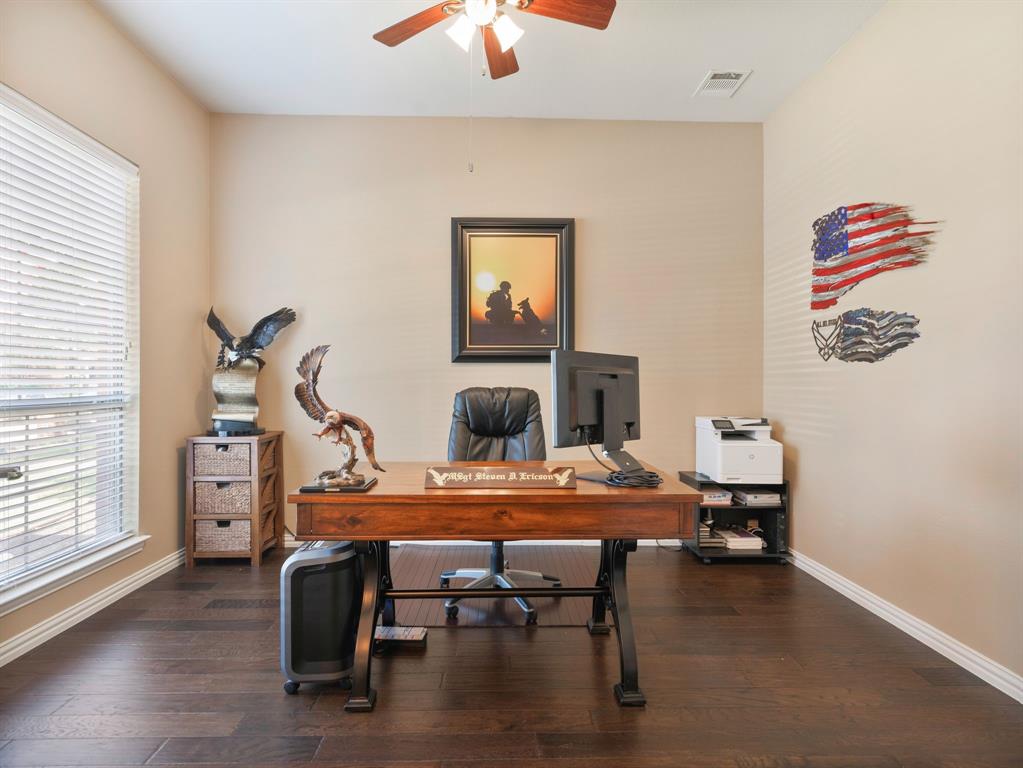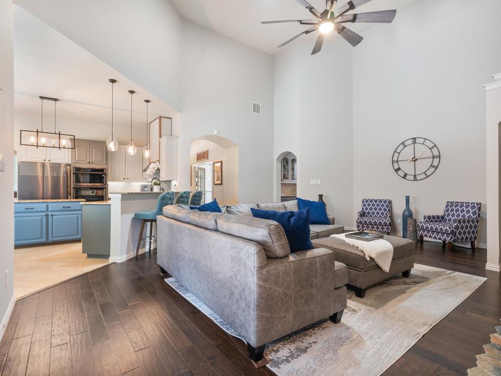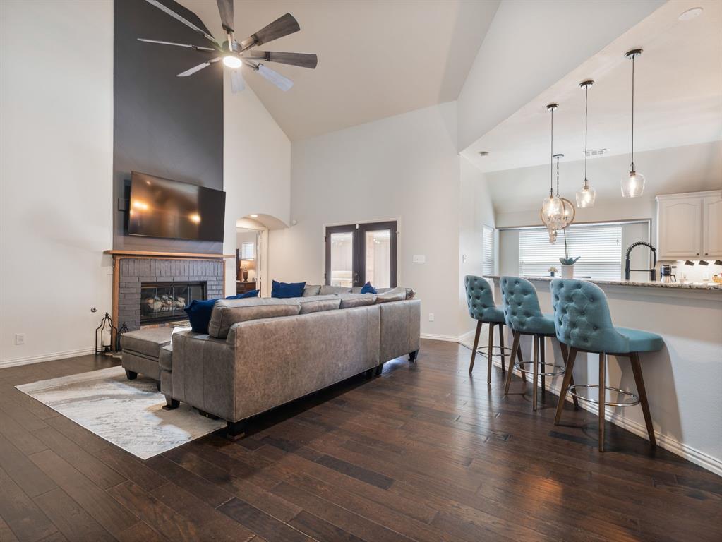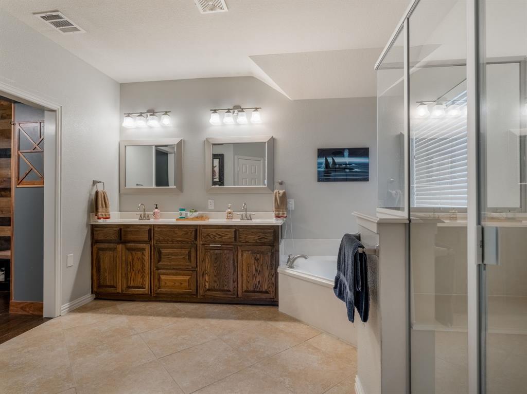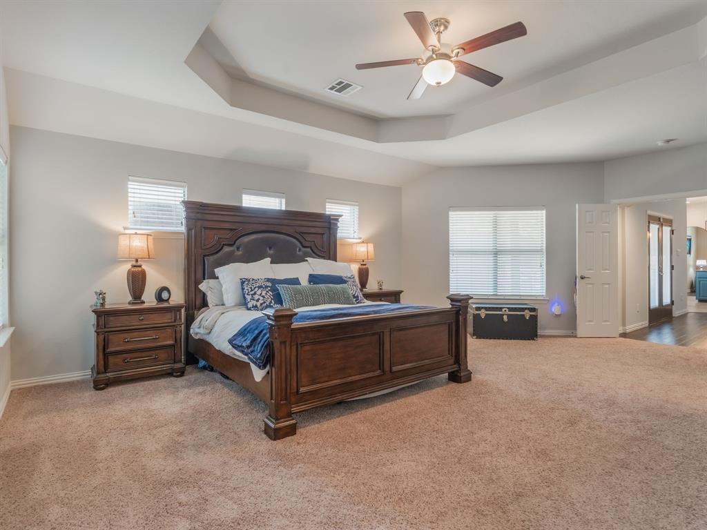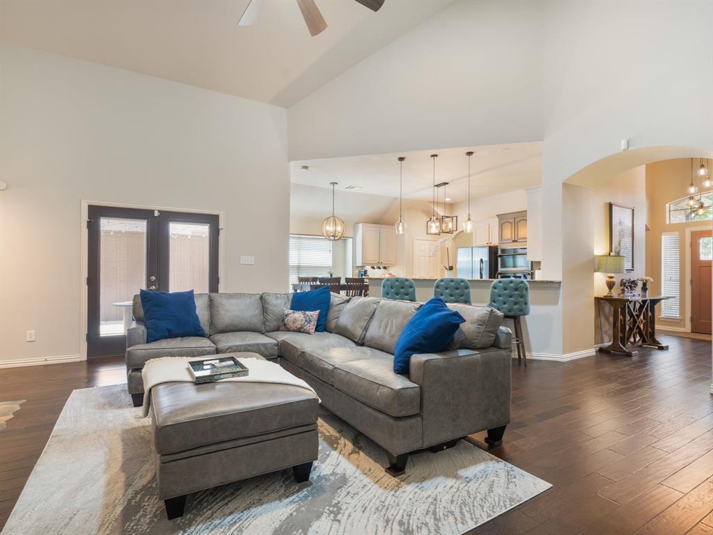 Welcome to your dream home nestled in the highly desirable Northridge community of West Frisco! Beautifully updated 1-story home offers an exceptional blend of comfort, style, and functionality w an open-concept layout, fresh designer paint, soaring ceilings, and countless custom touches throughout. As you arrive, a striking modern front door sets the tone for the stylish interior. Inside, you'll find warm wood flooring, a spacious formal dining room (currently used as a cozy sitting area), and a versatile executive study or optional 4th bedroom—perfect for remote work or guests. Luxurious primary suite is a true retreat, featuring a tray ceiling, relaxing seating area, spa-like en-suite w a jetted tub, separate shower, and a jaw-dropping custom walk-in closet fit for a fashionista. Entertain effortlessly in the oversized family room complete w a gas fireplace framed by a stunning ceiling-high custom shiplap accent wall. The room flows seamlessly into the heart of the home: chef-inspired eat-in kitchen boasting: Under-cabinet lighting illuminating countertops, Painted cabinetry w custom woodwork, Built-in spice racks, bar-style sink cup washer, and gas cooktop paired w a stylish shiplap-wrapped vent hood, Black SS appliances, including a microwave-convection oven combo and a charming window seat that adds character and functionality. Step outside to your private backyard oasis, designed for year-round entertaining! Enjoy: Covered patio w built-in gas grill and outdoor refrigerator, Magical string lights over an El Frisco-style dining space, 8-ft privacy fence, and a hot tub that conveys w the home. Plenty of room for gatherings, play, or peaceful evenings under the stars. Oversized 2.5-car garage offers ample storage, and the community pool and playground are just a short walk away, making this home perfect for all lifestyles. Located near the PGA headquarters, world-class golf courses, shopping, dining, and top-rated Frisco ISD schools, this home checks every box!