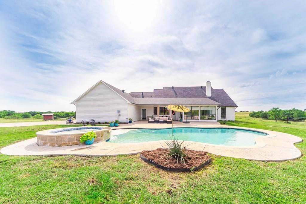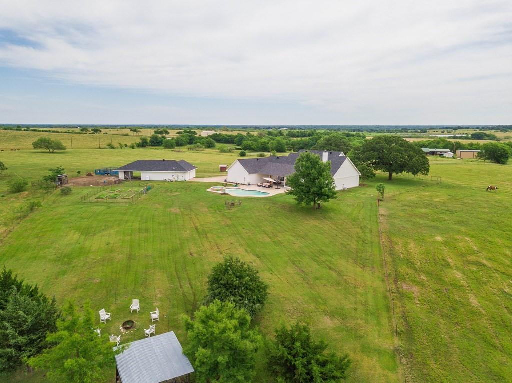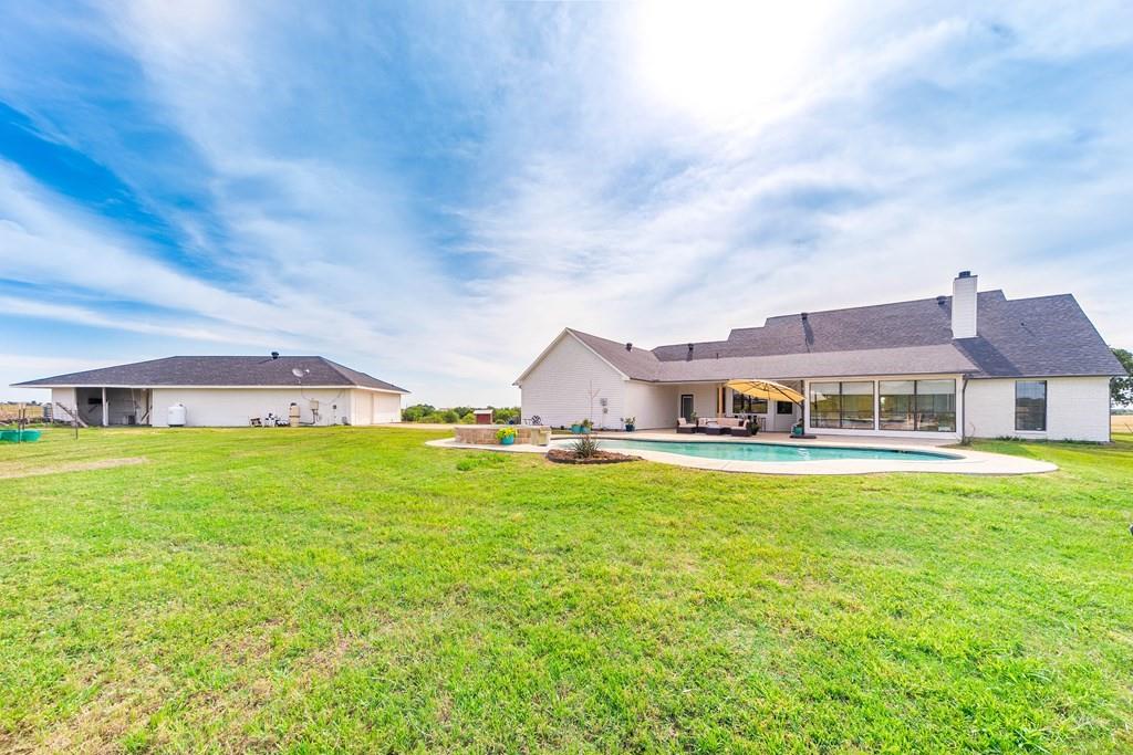 ESCAPE THE EVERYDAY & STEP INTO YOUR VERY OWN SANCTUARY, a blend of tranquility and modern farmhouse charm spread across 30 rolling acres. Imagine waking up to quiet mornings on the porch where the air is fresh and the world feels miles away. The main residence is warm, inviting, and recently renovated, featuring a private master suite, oversized walk-in closet, and relaxing en-suite bath... a true retreat after a long day. And don't miss the attic staircase in attached garage, it leads to a spacious, light & bright unfinished attic space. Outside, the magic further unfolds, creating an incredible backdrop for relaxing, entertaining or spending time with family and friends. There's a stocked pond, large barn, and fenced & cross-fenced pastures perfect for horses, cows, chickens, or other livestock. You'll have endless room to breathe, roam, and reconnect with nature, all while watching fresh crops, gardens, and flowers grow. Gather around the inground pool with hot tub and sunny baja shelf, perfect for long, lazy afternoons or an evening under the stars. As night falls, you’ll be treated to a daily masterpiece of incredible sunsets that paint the sky over the gentle, rolling hills. Need space for a passion project, home office, or private visitors? The detached workshop features comfortable, unfinished guest quarters with a full private bath, offering the ideal retreat for visitors or a quiet spot for your creative endeavors. Here, life intentionally slows down. Whether you’re strolling pastures, feeding livestock, or just soaking up the wide-open skies, this property offers a beautiful combination of comfort, space, and serenity.
