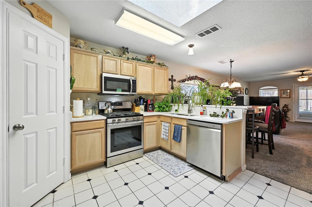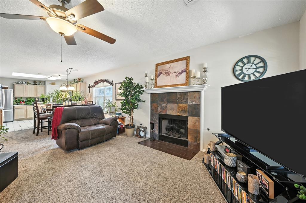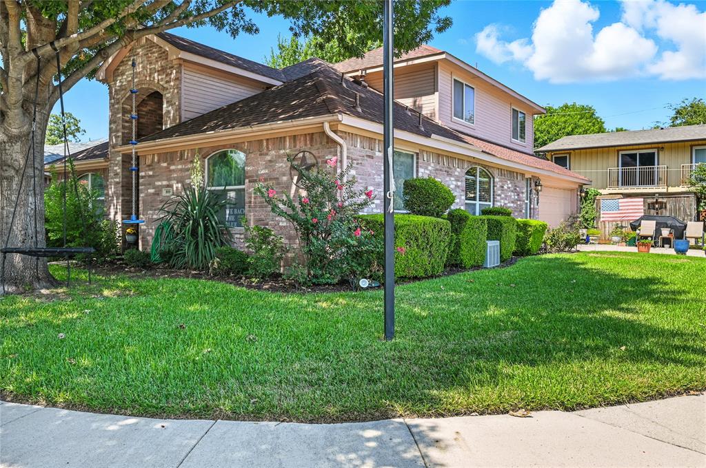 Charming home tucked away on a quiet cul-de-sac in the sought-after Familia Place community! This 3-bedroom, 2.5-bath residence offers 1,844 sq. ft. of comfortable living space with thoughtful upgrades throughout. The main level features a welcoming living room with a cozy fireplace, an open dining area, and a spacious kitchen complete with quartz countertops, stainless-steel appliances, breakfast bar, walk-in pantry, and ample cabinetry. The private primary suite is conveniently located downstairs with a jetted garden tub, dual sinks, and a walk-in closet. Also on the main floor a convenient half bath and appointed office. Upstairs, you’ll find two generously sized bedrooms with walk-in closets and a full bath. Enjoy outdoor living with a covered patio, landscaped yard, and the privacy of a corner lot. Additional highlights include 2-car garage, decorative lighting, and skylights that bring in natural light. Conveniently located near schools, shopping, and major highways, this home combines comfort and convenience in the heart of Irving. Schedule a showing today!