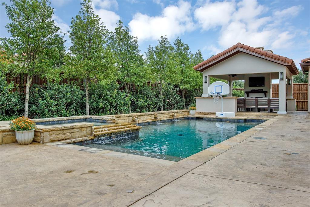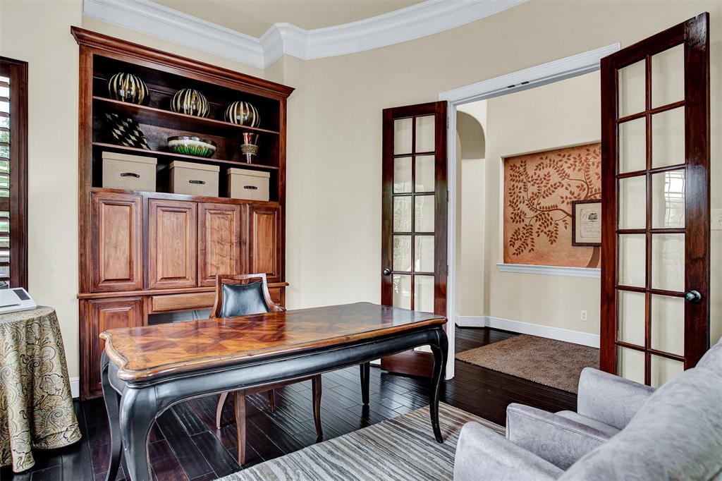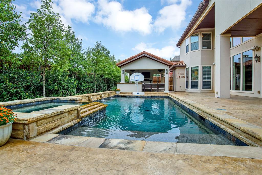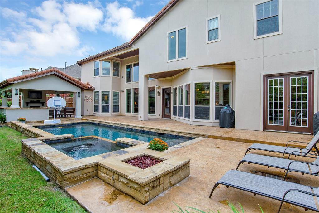 ** OPEN HOUSE SAT., SEPTEMBER 20TH FROM 1-4 PM ** Gorgeous Mediterranean-style home has been meticulously maintained! Wood floors, arched doorways; all the extras you are looking for! Stunning resort-style backyard features sparkling pool, spa, waterfalls & covered outdoor living area with cozy fireplace & fridge. Open floor plan, perfect for entertaining. Spacious family room, gourmet kitchen & sprawling dining area, highlighted with a wall of windows for natural light & serene pool views. Master suite is down with pool views. Spa-like master bath has over sized walk-in shower, dual sinks & impressive walk-in closet. Upstairs is Texas-sized game room with wet bar, media room & 3 bedrooms & computer desk area! *Please note photos are from previous listing.