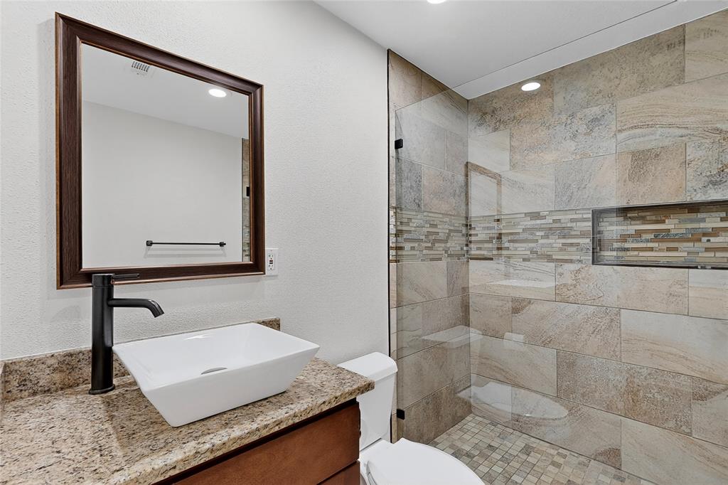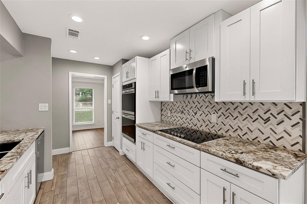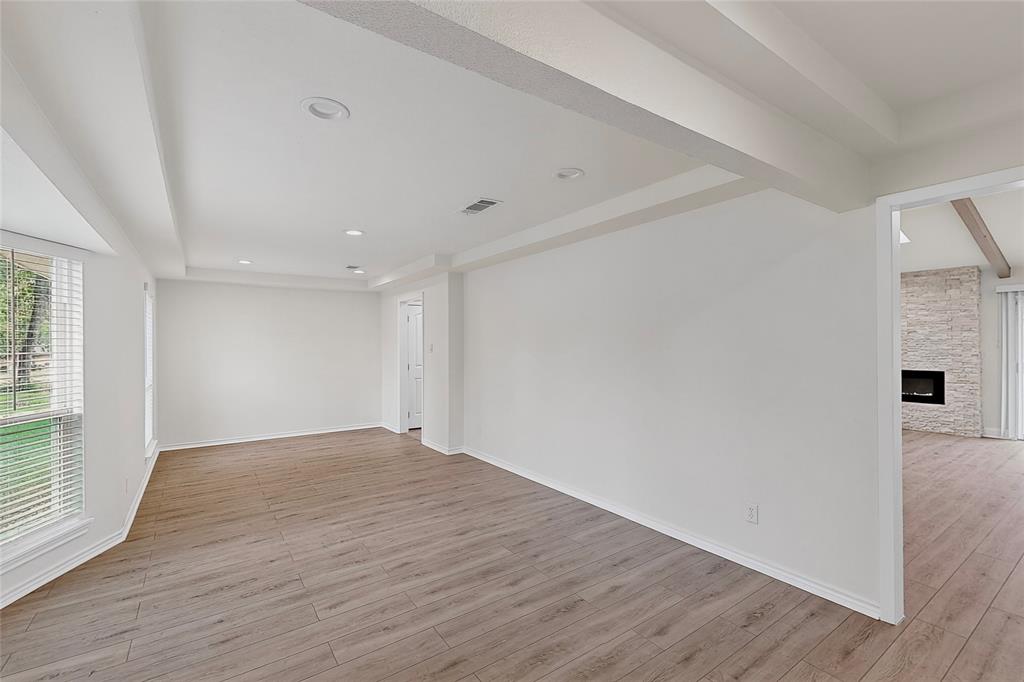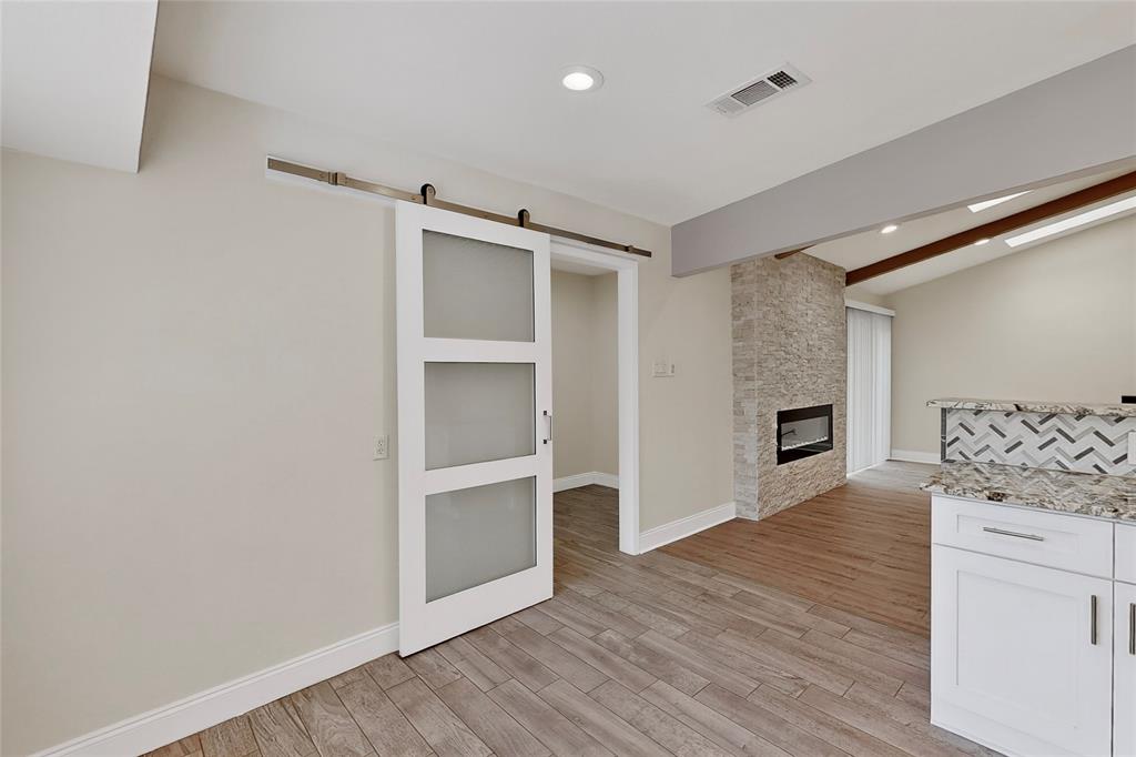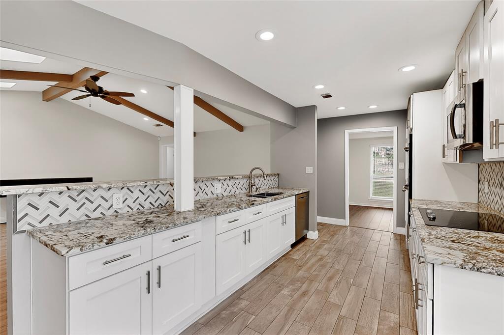 Welcome to this beautifully remodeled 3-bedroom, 2-bathroom home offering 2,023 sqft of modern living space. With an open-concept design, this home blends comfort and style seamlessly. Step into the spacious living room featuring a stunning floor-to-ceiling stone electric fireplace that creates the perfect focal point. Living area gives the perfect amount of natural lighting from the ceiling sky lights. The kitchen is a chef’s dream with granite countertops, stainless steel appliances, a double oven, and plenty of cabinet space. Both bathrooms have been completely updated with oversized standing showers and granite finishes, while the primary suite features his and her closets for maximum convenience. All secondary bedrooms are generously sized, providing comfort for family or guests. Enjoy laminate wood floors and fresh paint throughout, giving the entire home a bright and modern feel. The backyard is perfect for gatherings, barbecues, or simply relaxing outdoors.