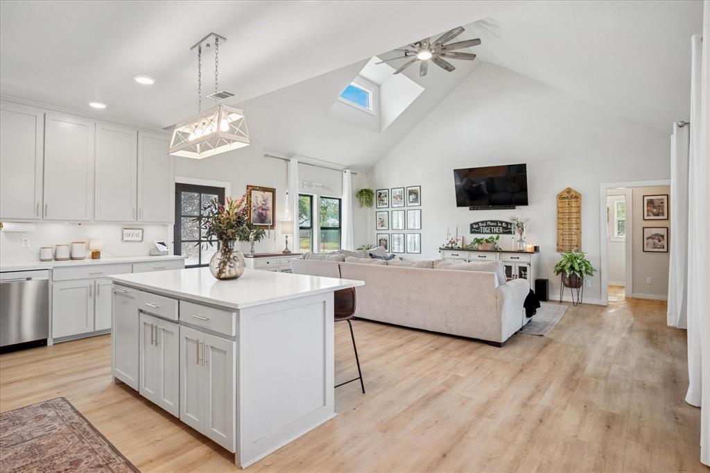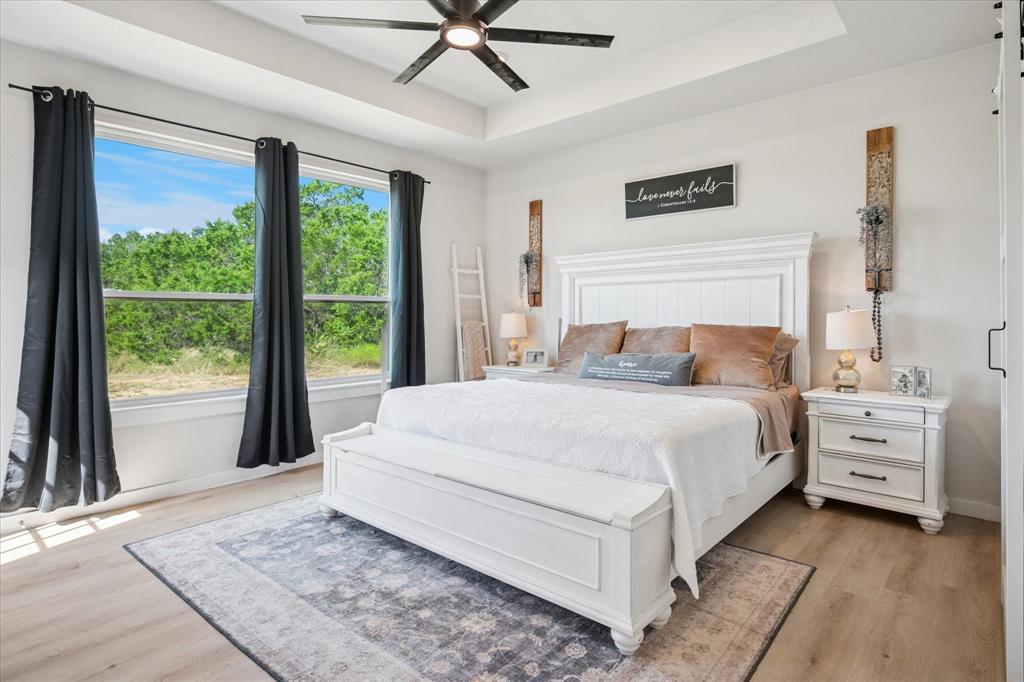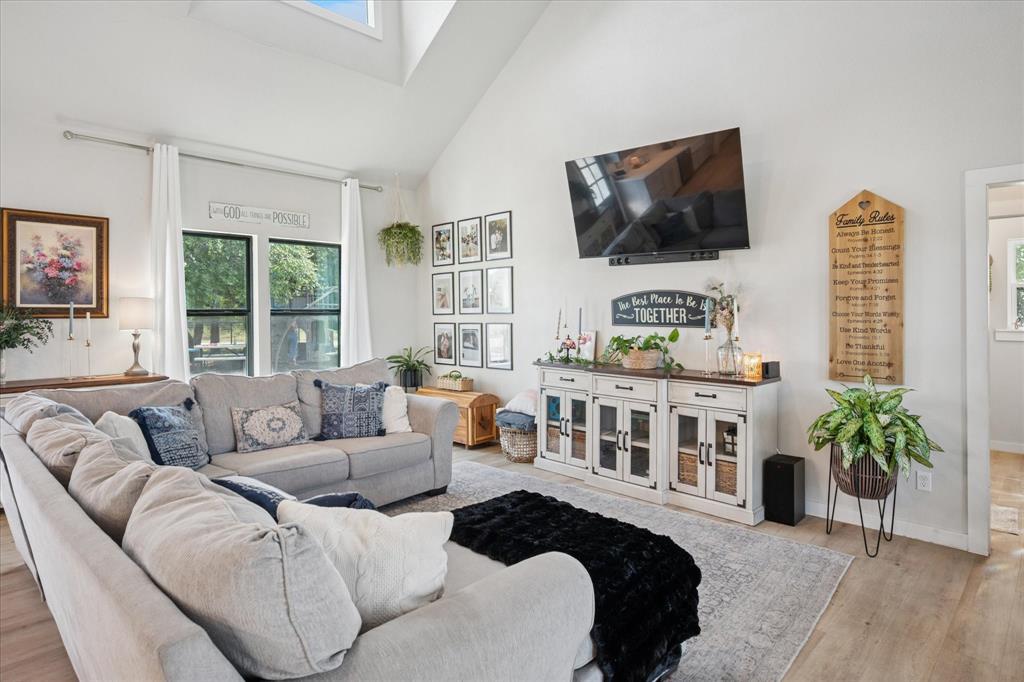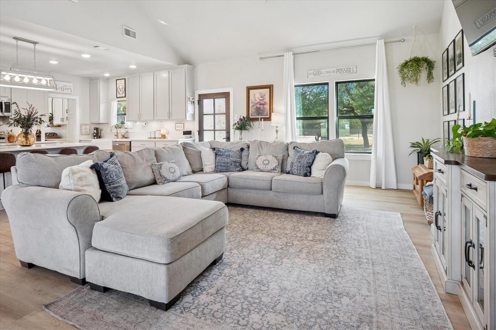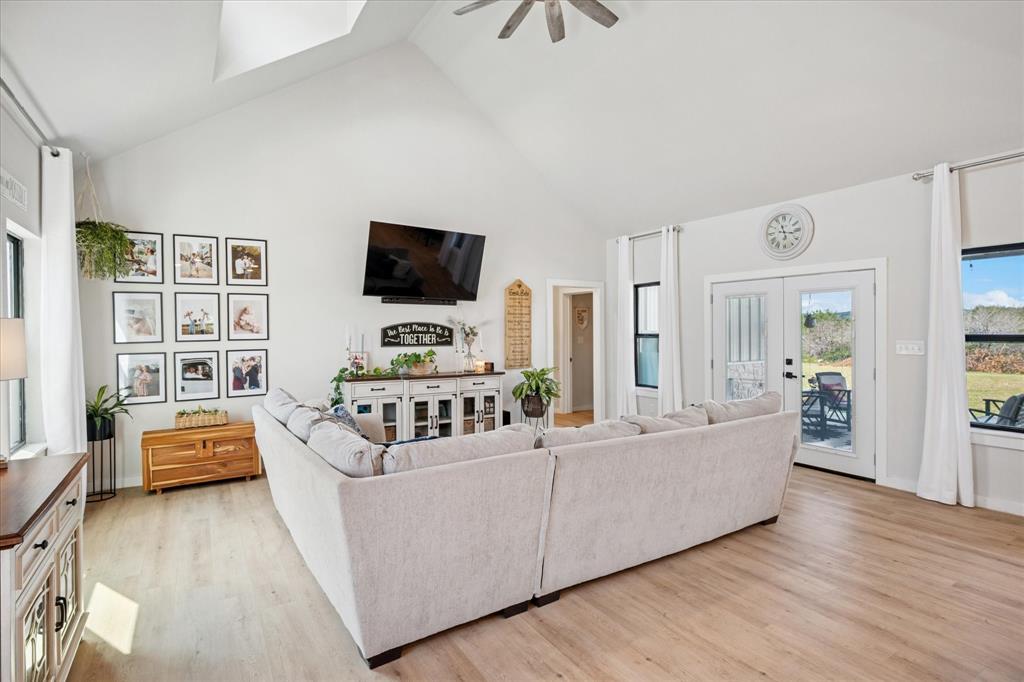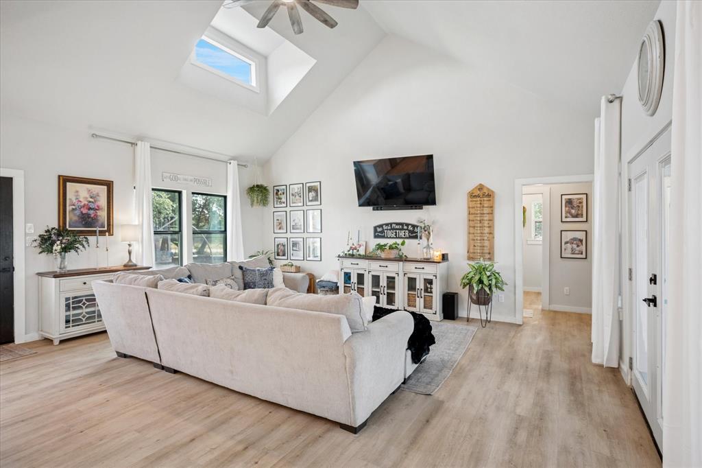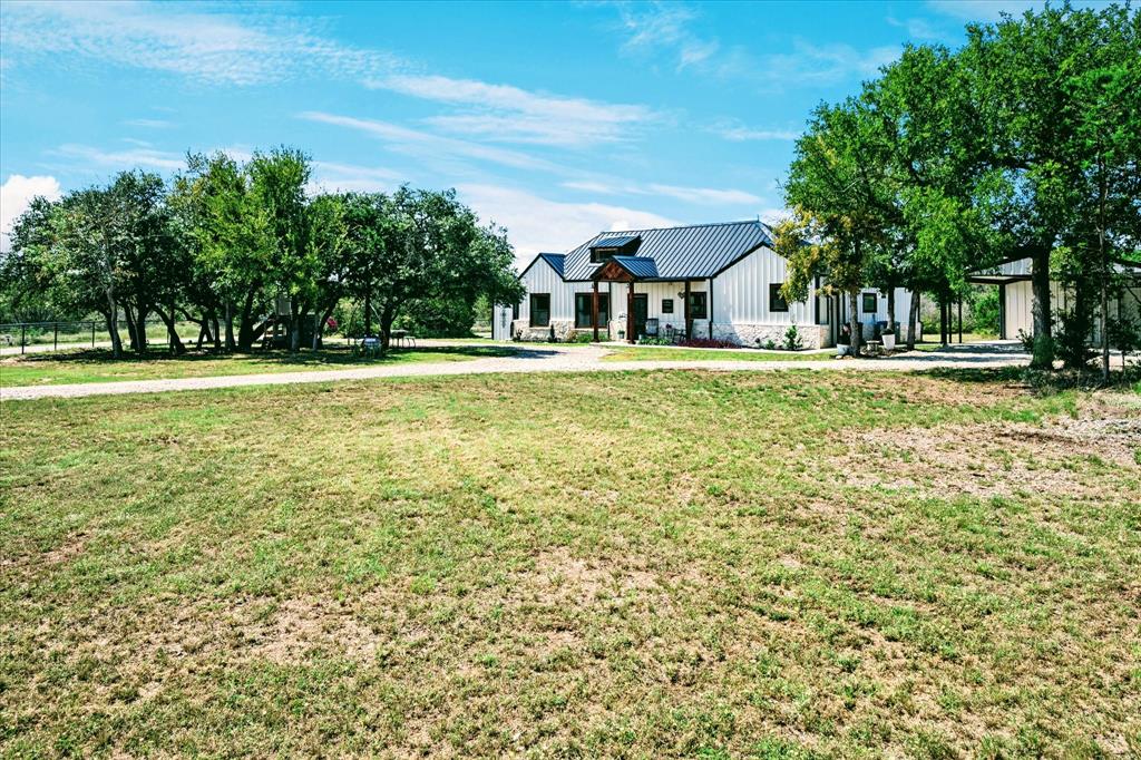 Discover this beautiful modern farmhouse set on two wooded acres just outside Weatherford’s city limits which includes a versatile guest suite just steps away. Enjoy the perfect blend of country charm and tranquility, plus the benefit of no city taxes in a picturesque setting. The main home features 3 bedrooms, 2 bathrooms, an open-concept layout with vaulted ceilings, abundant natural light, and a spacious living and dining area. The kitchen boasts quartz countertops, a large island, butler’s pantry, stainless steel appliances, and plenty of cabinetry for ample storage. The newly built, heated and cooled accessory building with 440 sq ft provides a 4th bedroom and additional half bathroom just steps from the main house, ideal for a private home office, guest suite, mother in law quarters, or rental income opportunity. The primary bedroom is a relaxing retreat with a luxurious ensuite bath, including a walk-thru shower with dual rainfall showerheads, double vanities, and stylish finishes. A split bedroom layout ensures privacy for all. Additional features include a garage, covered carport, and a spacious covered patio overlooking mature trees, perfect for gatherings or peaceful evenings. The acreage offers ample space for homestead enthusiasts, gardening, recreation, or keeping animals, with fencing and a water well already in place. Horses, cows, chickens, sheep, goats, and more are welcome! A new hot tub with cover is negotiable, providing even more relaxation potential.