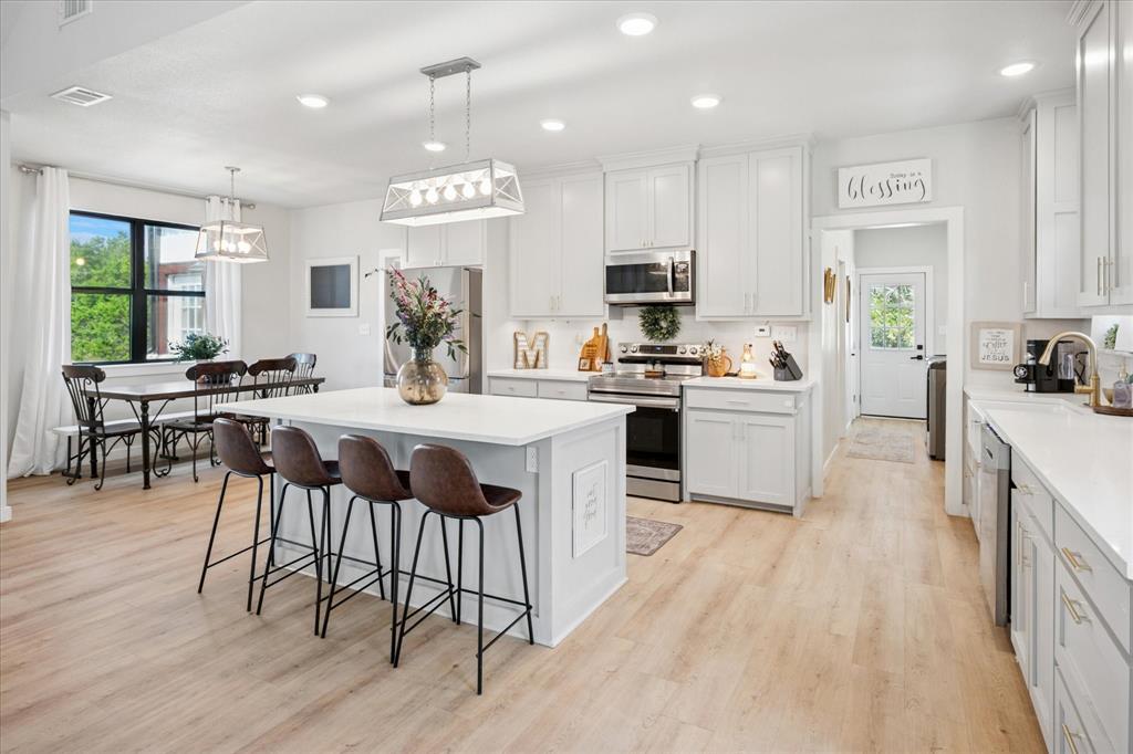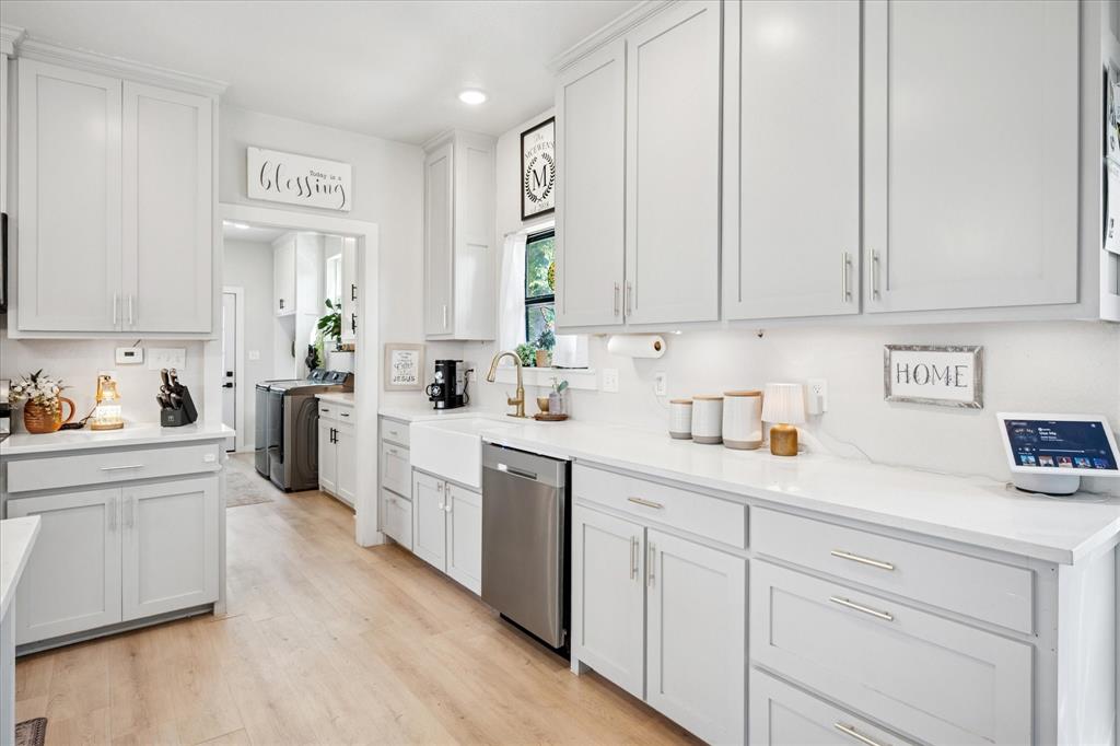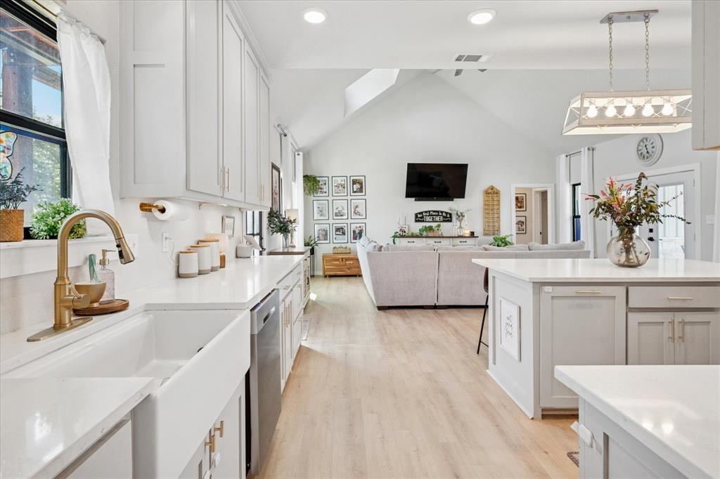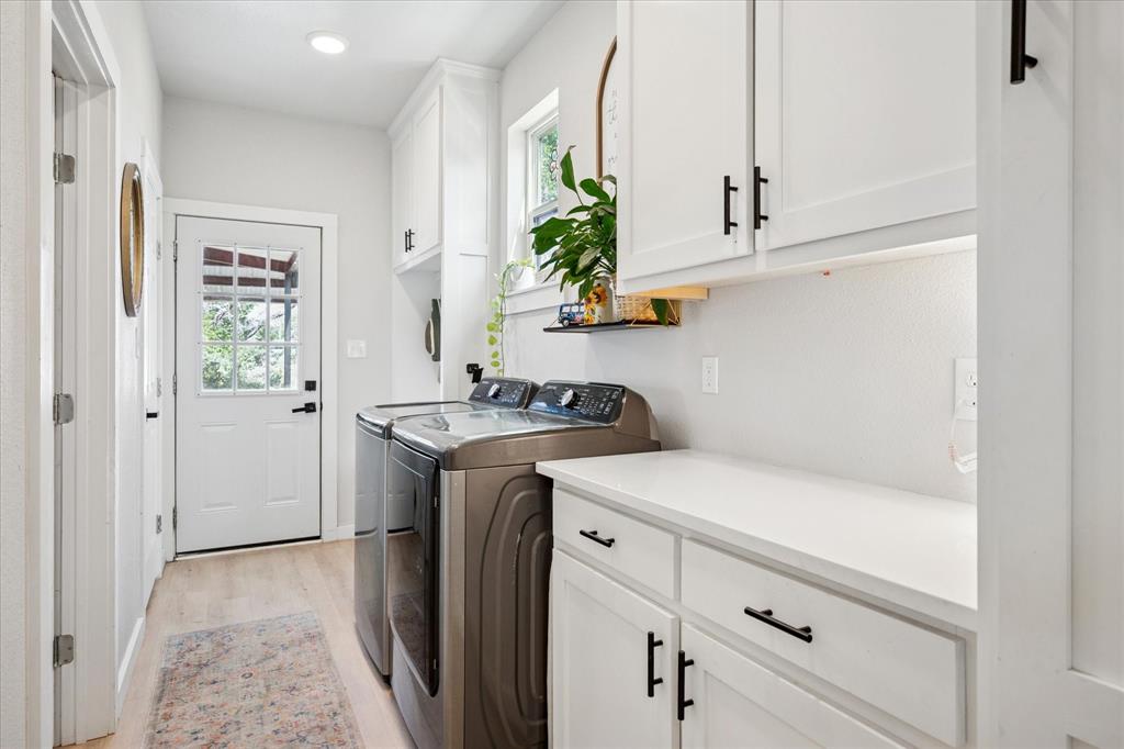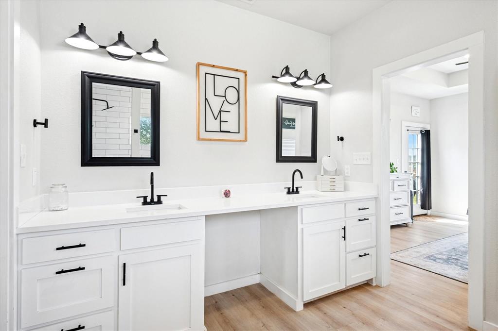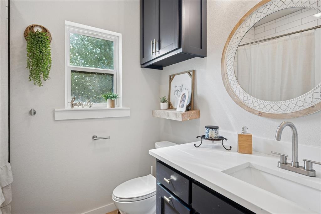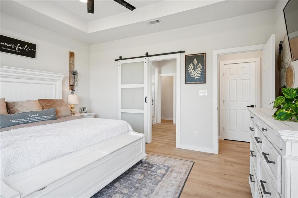 Discover this beautiful modern farmhouse set on two wooded acres just outside Weatherford’s city limits which includes a versatile guest suite just steps away. Enjoy the perfect blend of country charm and tranquility, plus the benefit of no city taxes in a picturesque setting. The main home features 3 bedrooms, 2 bathrooms, an open-concept layout with vaulted ceilings, abundant natural light, and a spacious living and dining area. The kitchen boasts quartz countertops, a large island, butler’s pantry, stainless steel appliances, and plenty of cabinetry for ample storage. The newly built, heated and cooled accessory building with 440 sq ft provides a 4th bedroom and additional half bathroom just steps from the main house, ideal for a private home office, guest suite, mother in law quarters, or rental income opportunity. The primary bedroom is a relaxing retreat with a luxurious ensuite bath, including a walk-thru shower with dual rainfall showerheads, double vanities, and stylish finishes. A split bedroom layout ensures privacy for all. Additional features include a garage, covered carport, and a spacious covered patio overlooking mature trees, perfect for gatherings or peaceful evenings. The acreage offers ample space for homestead enthusiasts, gardening, recreation, or keeping animals, with fencing and a water well already in place. Horses, cows, chickens, sheep, goats, and more are welcome! A new hot tub with cover is negotiable, providing even more relaxation potential.