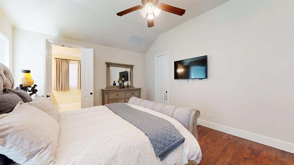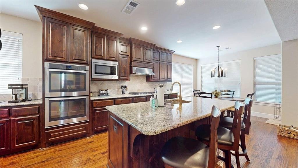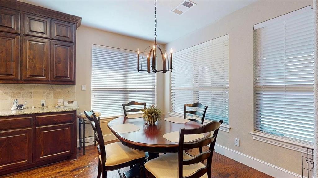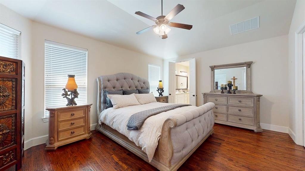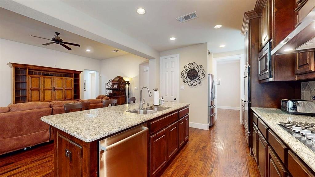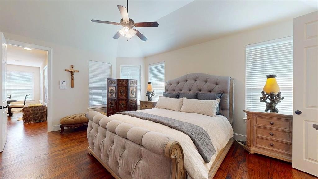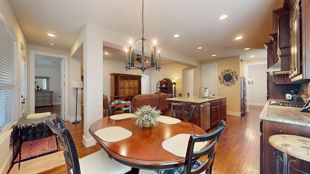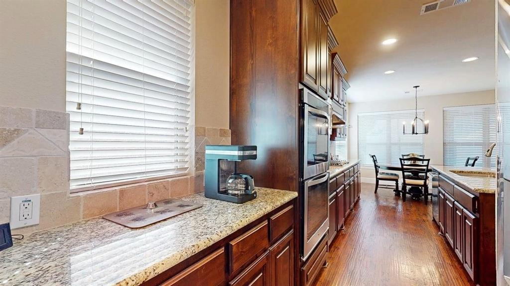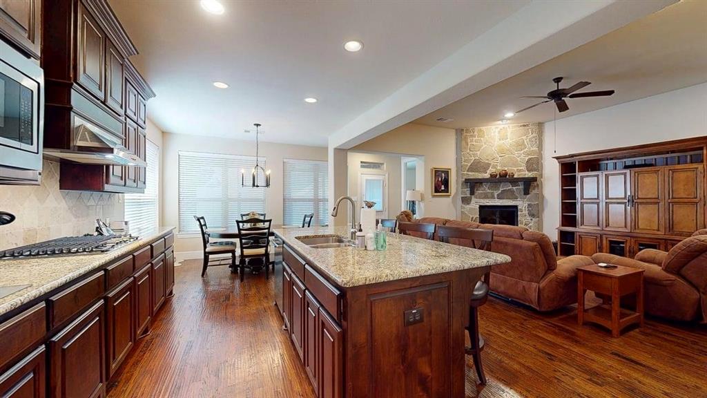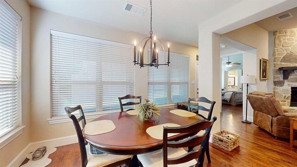 Meticulously maintained single-story on an interior homesite with a beautiful brick elevation and spacious front porch area! Inside you will find 4 bedrooms, 3 full baths, formal dining area, dedicated study space with French doors, and 2-car garage! A secondary bedroom with an adjacent full bath secluded at the front of the home is terrific for guests! Upgrades and amenities include rich hand-scraped hardwoods throughout main living areas, neutral paint tones, extensive crown molding, open concept kitchen and living space perfect for entertaining, split secondary bedrooms for added privacy, cozy stone floor-to-ceiling family room fireplace, and MORE! Gourmet kitchen boasts a large island with breakfast bar, granite countertops with a tumbled stone backsplash, rich wood cabinetry, stainless appliances including double ovens and a gas cooktop, and a convenient butler's pantry or coffee bar. Retreat to the spacious primary bedroom where you'll find a luxurious ensuite bath with a dual sink vanity, garden tub, and separate shower. The large private backyard is complete with an expansive screened-in patio area! Come experience all that Lantana has to offer!