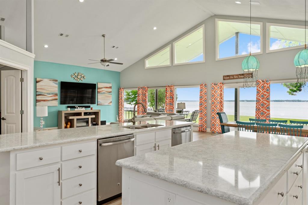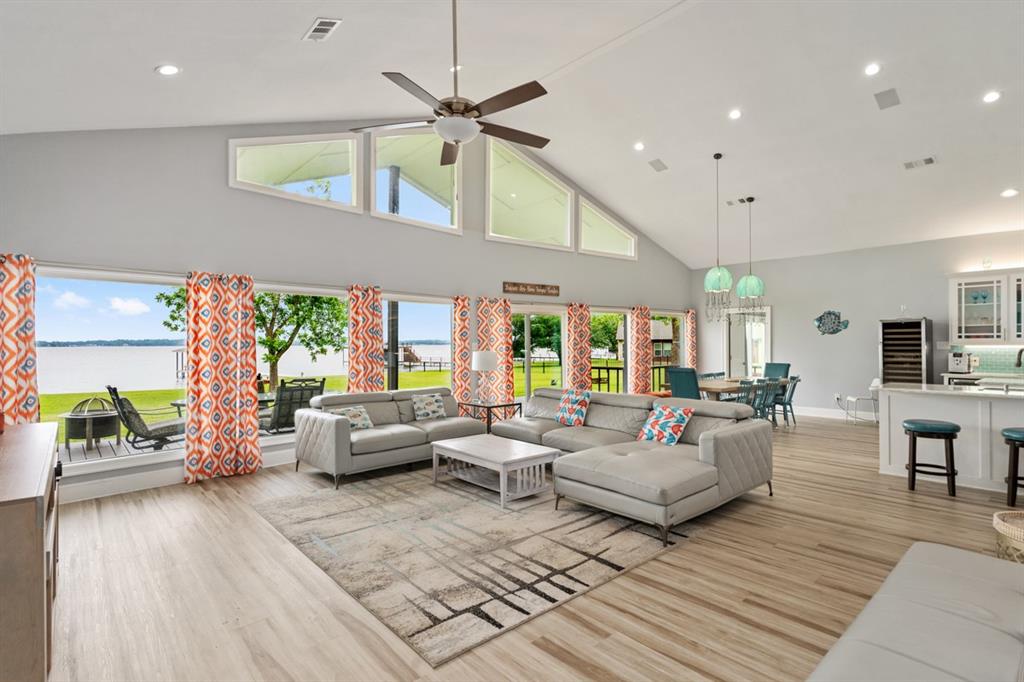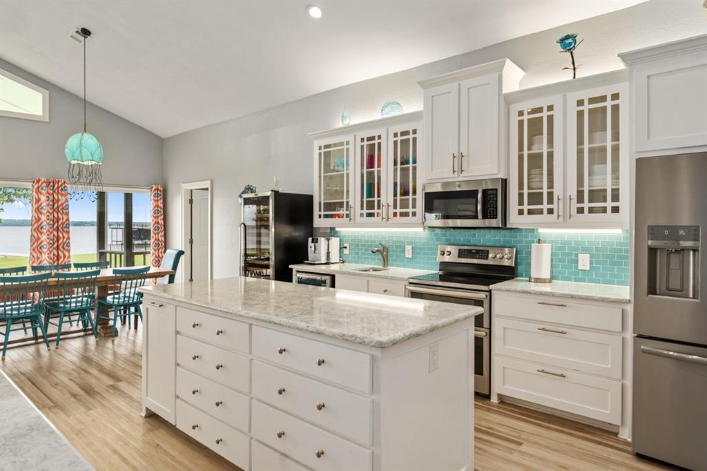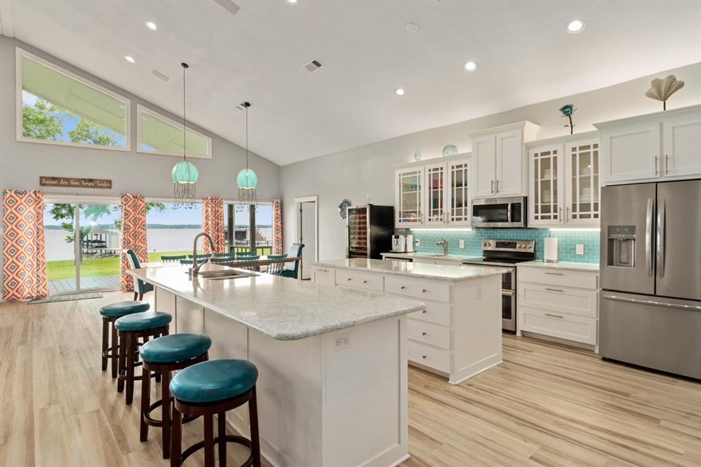 Quintessential lake house vibes on three lots, .9 of an acre, in Key Ranch Estates, Cedar Creek Lake. Whether you're seeking full time lakefront living or the ideal weekend escape, this stunning home offers it all. Exceptional open water views, the property boasts an open-concept layout that connects the main living, kitchen, and dining area; perfect for entertaining or relaxing with friends and family. With 6 bedrooms, 5 full bathrooms, and 3,750 square feet of upgraded living space, there's plenty of room for everyone. Recent updates throughout the home add comfort and style while maintaining it's lake feel and charm. The attached garage casita features a private guest bedroom, full bath, kitchen, and dining area—ideal for visitors or multigenerational living, all with beautiful water views. The large back porch and back yard is perfect for gatherings, quiet mornings, or evenings by the lake. Located just minutes from Triple N Winery and all that CCL has to offer, you’ll have convenient access to local charm and entertainment. This size of home and property, along with great water views allows a great opportunity to enjoy elevated lake living. Furniture is available on separate contract.