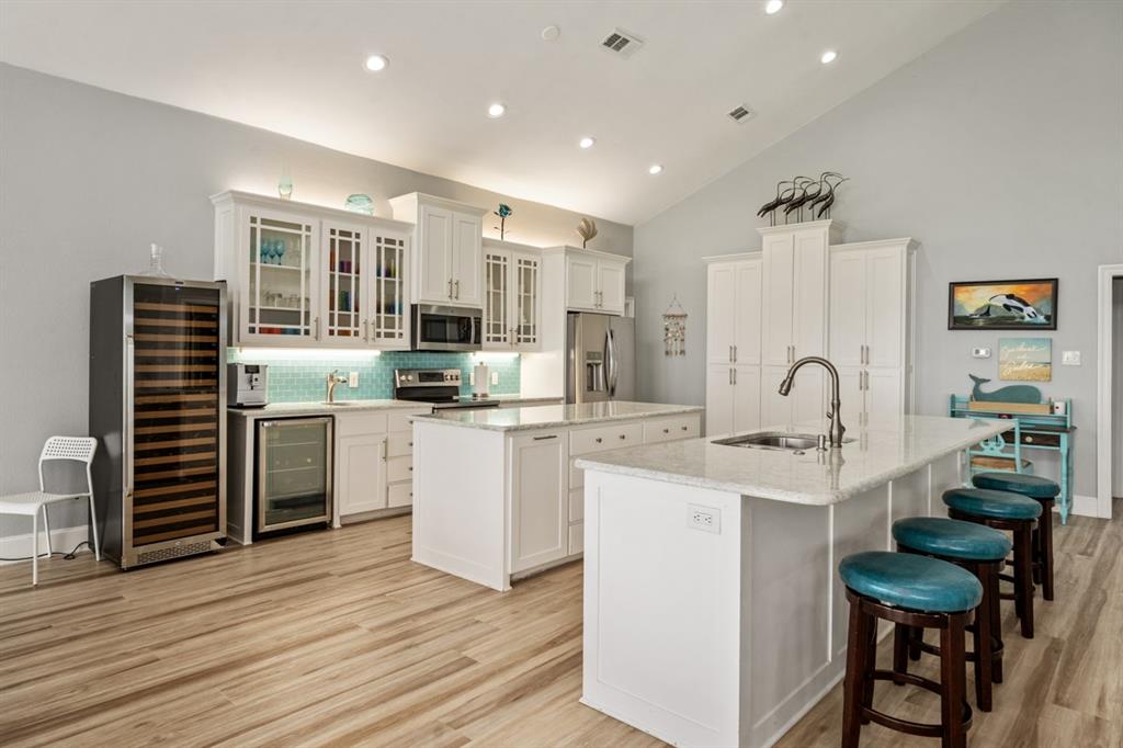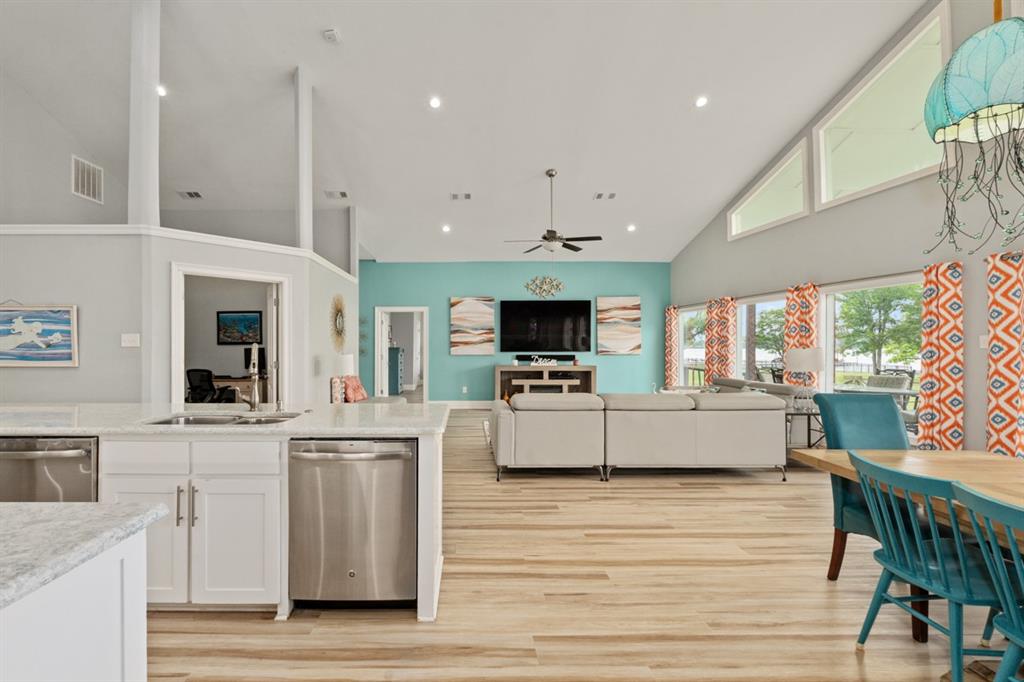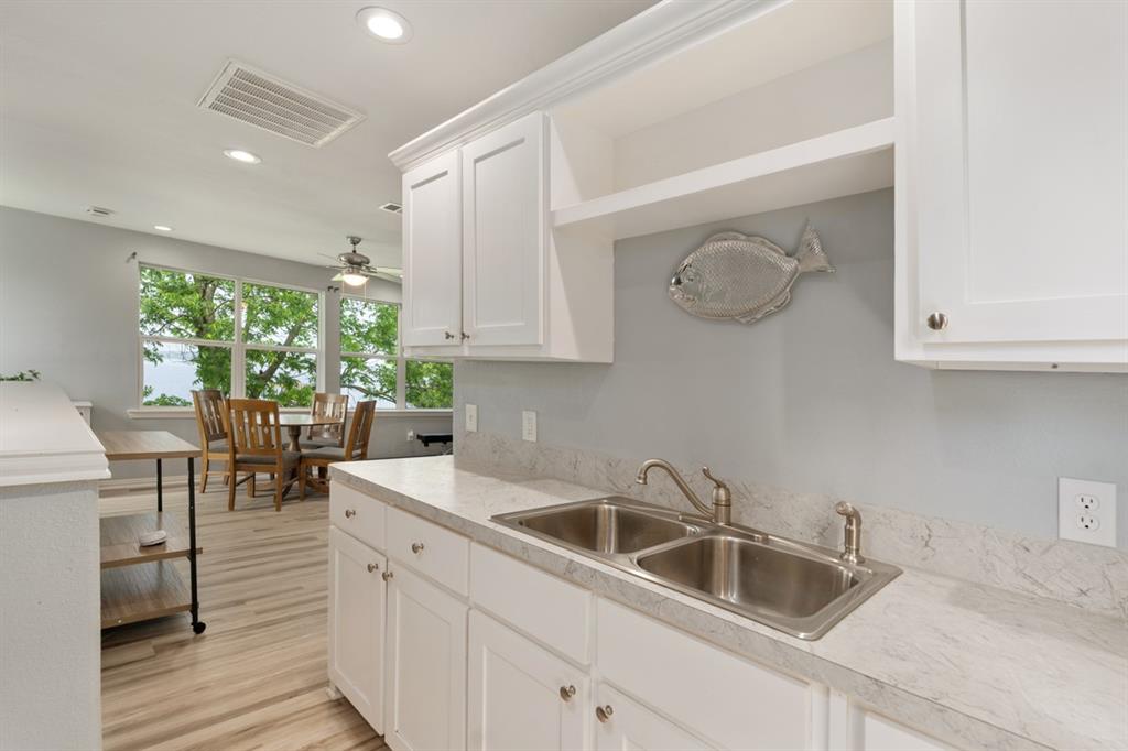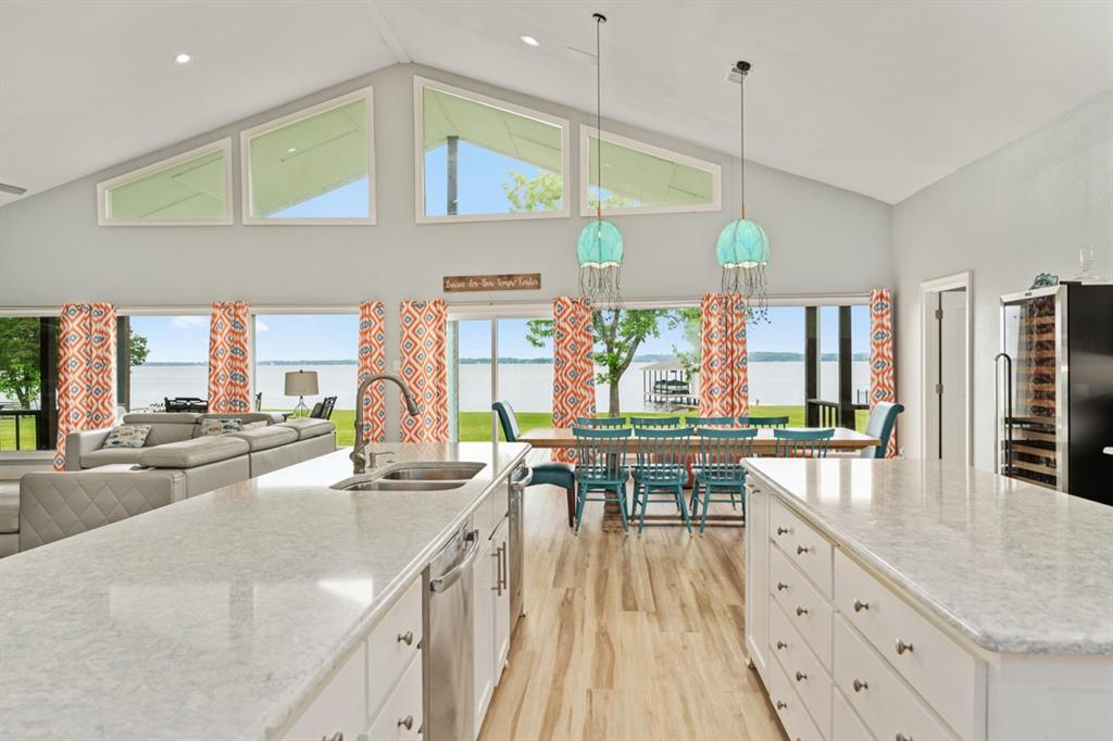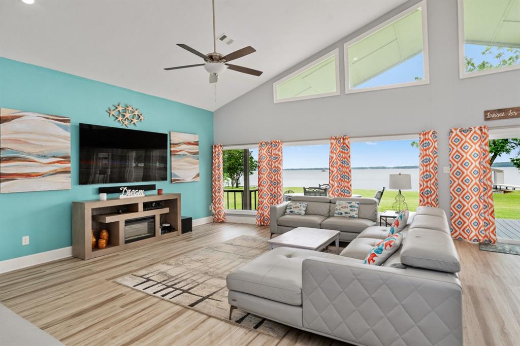 Quintessential lake house vibes on three lots, .9 of an acre, in Key Ranch Estates, Cedar Creek Lake. Whether you're seeking full time lakefront living or the ideal weekend escape, this stunning home offers it all. Exceptional open water views, the property boasts an open-concept layout that connects the main living, kitchen, and dining area; perfect for entertaining or relaxing with friends and family. With 6 bedrooms, 5 full bathrooms, and 3,750 square feet of upgraded living space, there's plenty of room for everyone. Recent updates throughout the home add comfort and style while maintaining it's lake feel and charm. The attached garage casita features a private guest bedroom, full bath, kitchen, and dining area—ideal for visitors or multigenerational living, all with beautiful water views. The large back porch and back yard is perfect for gatherings, quiet mornings, or evenings by the lake. Located just minutes from Triple N Winery and all that CCL has to offer, you’ll have convenient access to local charm and entertainment. This size of home and property, along with great water views allows a great opportunity to enjoy elevated lake living. Furniture is available on separate contract.