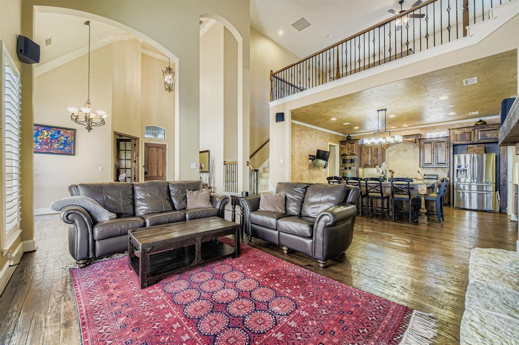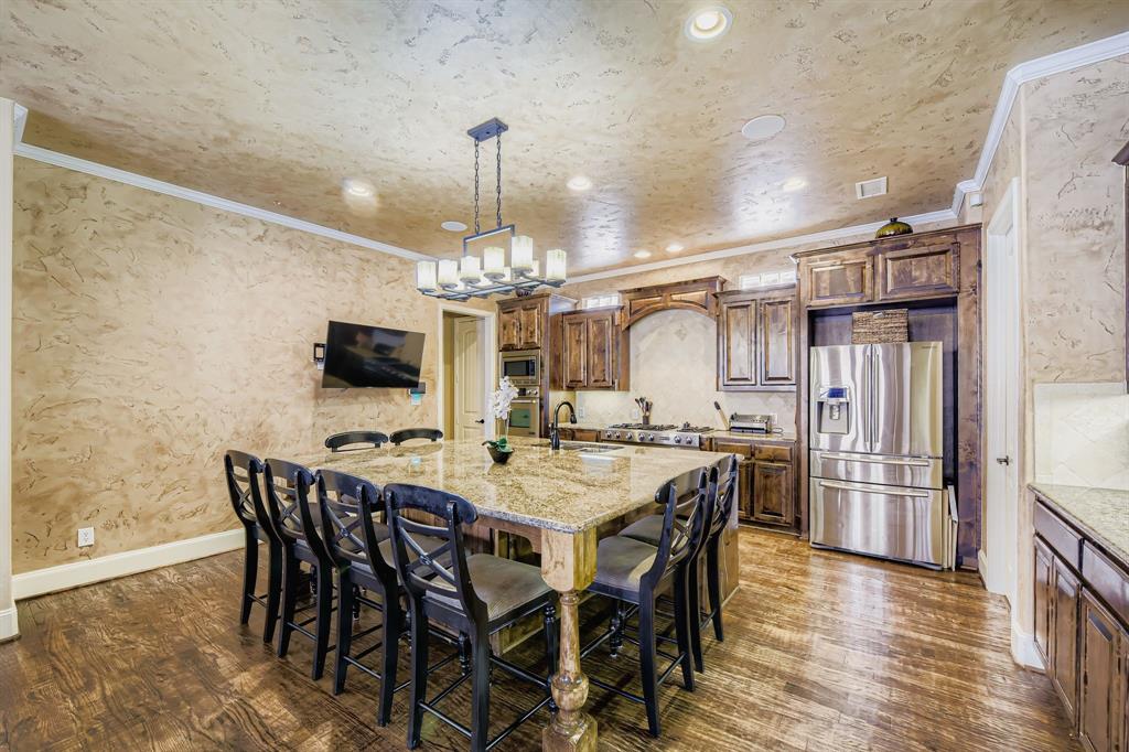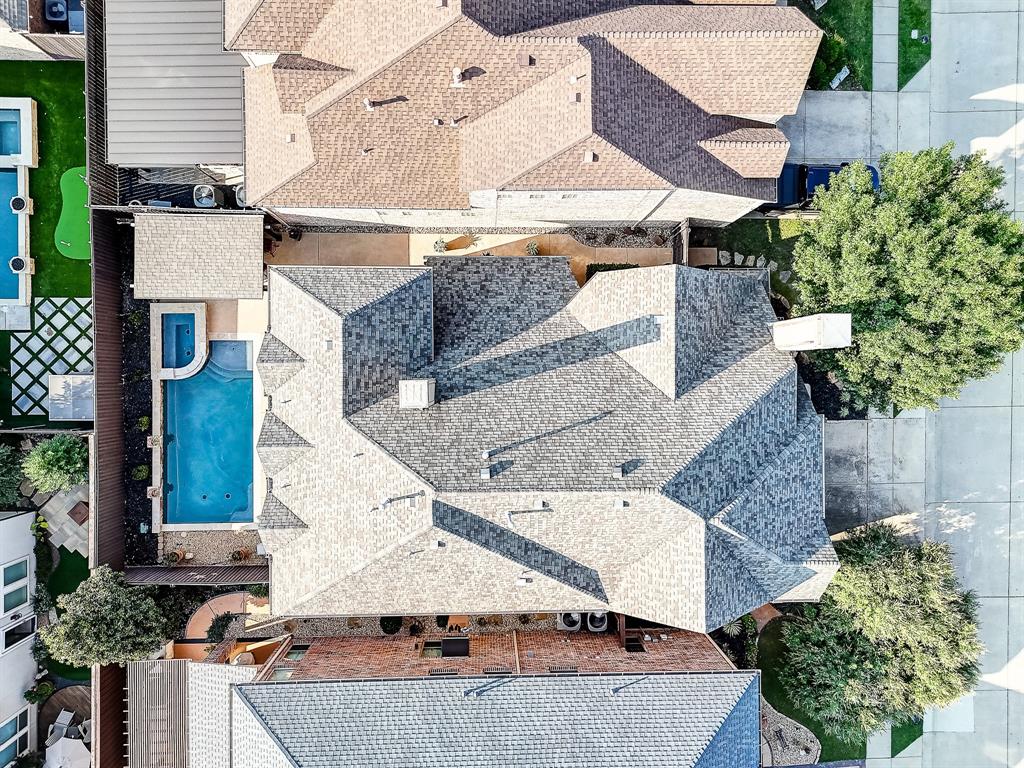 Beauitfully updated Plano home with a great location, close to all that Grandscape has to offer, restaurants, retail, shopping, Nebraska Furniture Mart, theaters, concert venues, etc. Meticulously maintained, this original owner has taken excellent care of this gorgeous home. Many, many updates, including real hardwood flooring, decorative lighting, a chef's kitchen including a HUGE island, 6 burner gas cooktop, refrigerator, double ovens and granite countertops. The side patio is covered with great a space to entertain, leading out to the backyard with an outdoor bar, speaker system, sparkling pool and heated spa, as well as a built in outdoor bar area. The home is wired for sound with speakers and an amplifier staying with the home. The media room is fully outfitted with a screen, projectors, speakers which will all stay for the buyer. The media room could easily serve as your fourth bedroom if needed. The home office is conveniently located near the front of the home with its own fireplace and abundant windows. The refrigerators will all stay for the new owners if desired.
