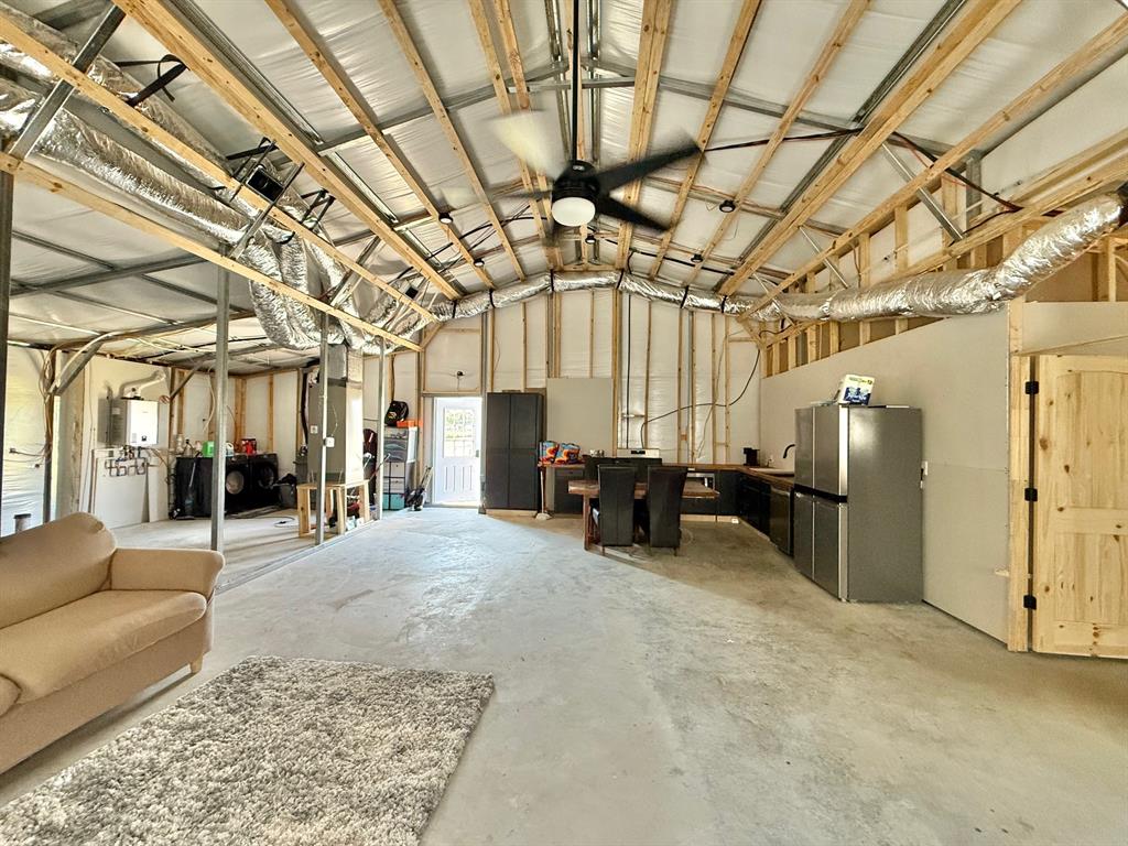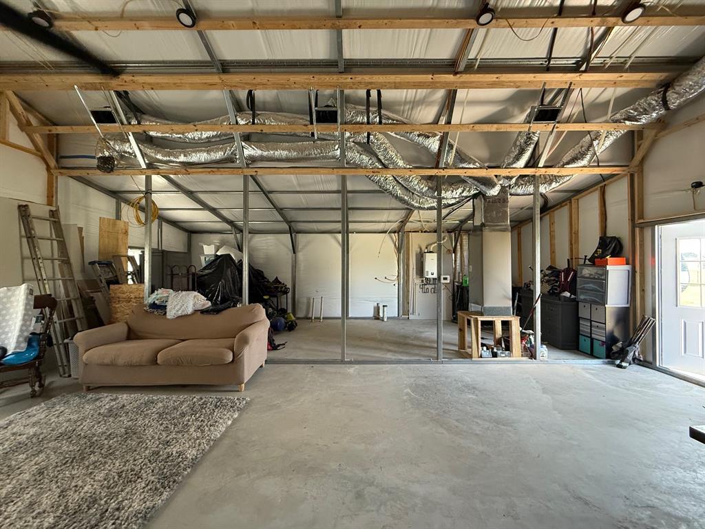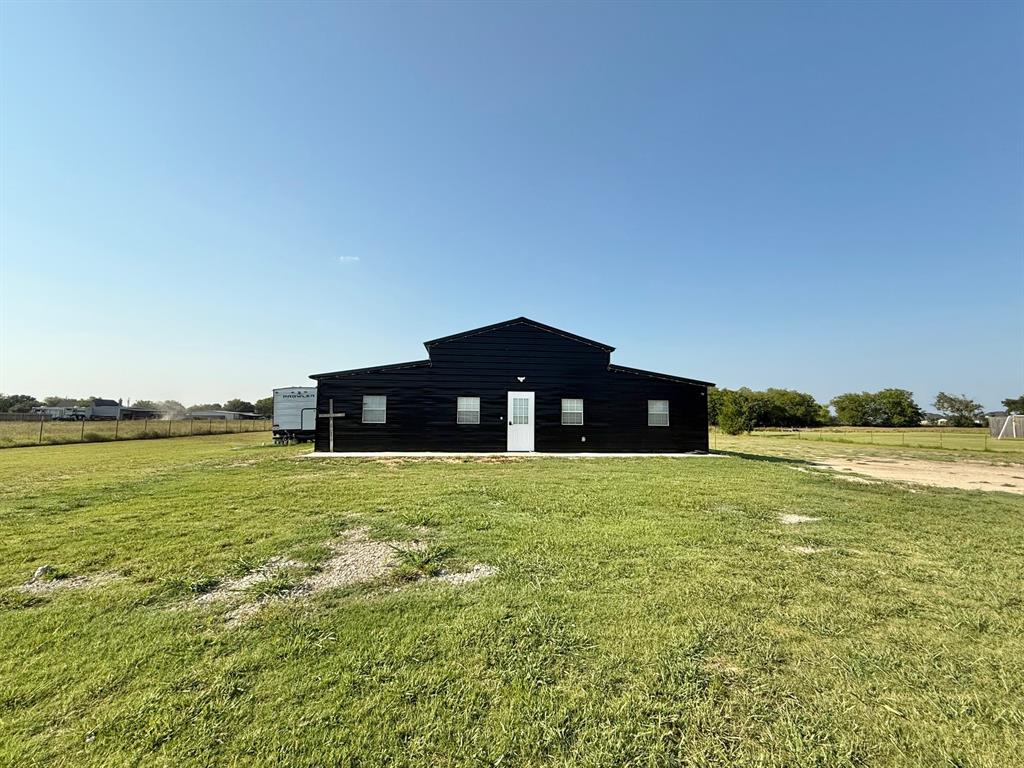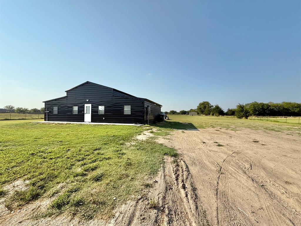 1.7acres. 1350 sqft barndo with insulation. Primary with full bath, only needs sheetrock completed. Other half of barndo is not framed out yet. Equipped with washer and dryer, utility room. Secondary bathroom. 4ft concrete patio on front and back of home. 100 gallon propane tank. Underground electric to 200 amp service. Aerobic tank. Propane stove and water heater. Dishwasher. 3 ton central heat and air. All electric dropped and ready for wiring on the left side of home after frame out. Gutters and RV hookup on left side of home! Investors DREAM! Caddo Mills ISD!