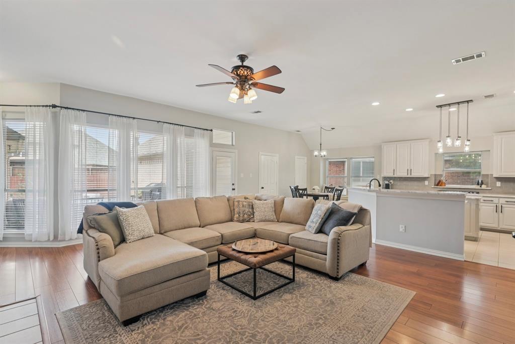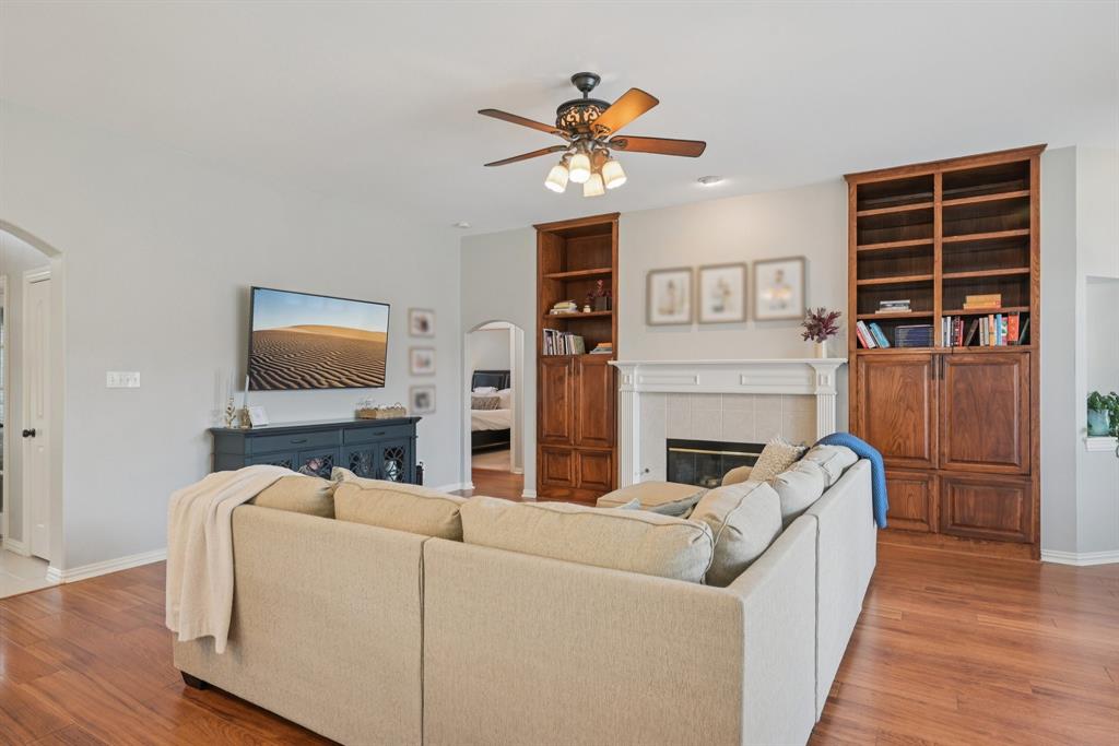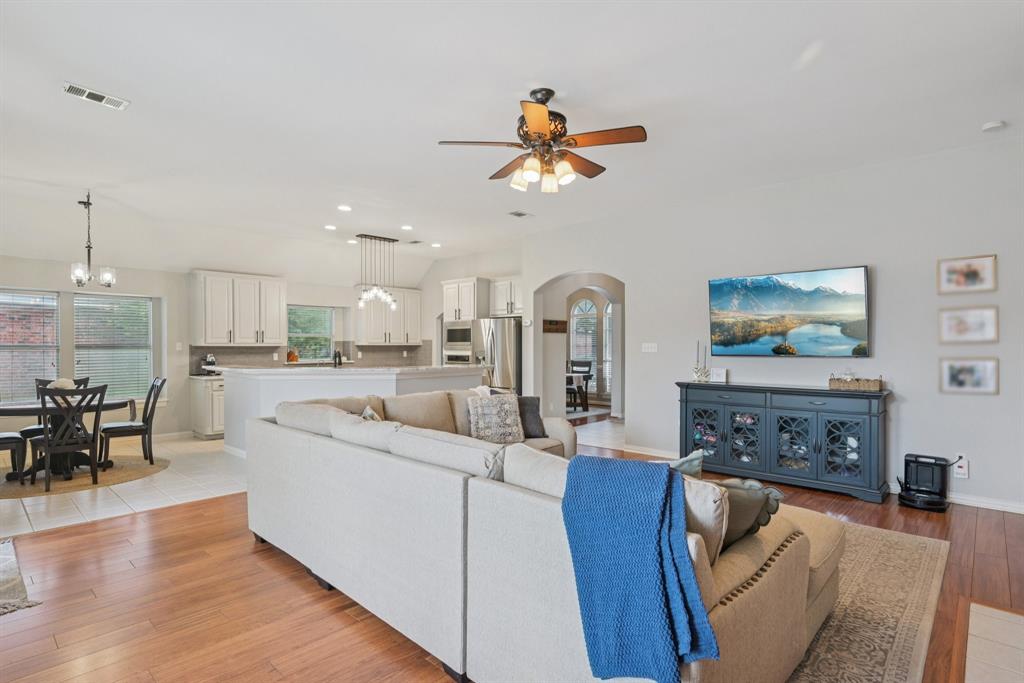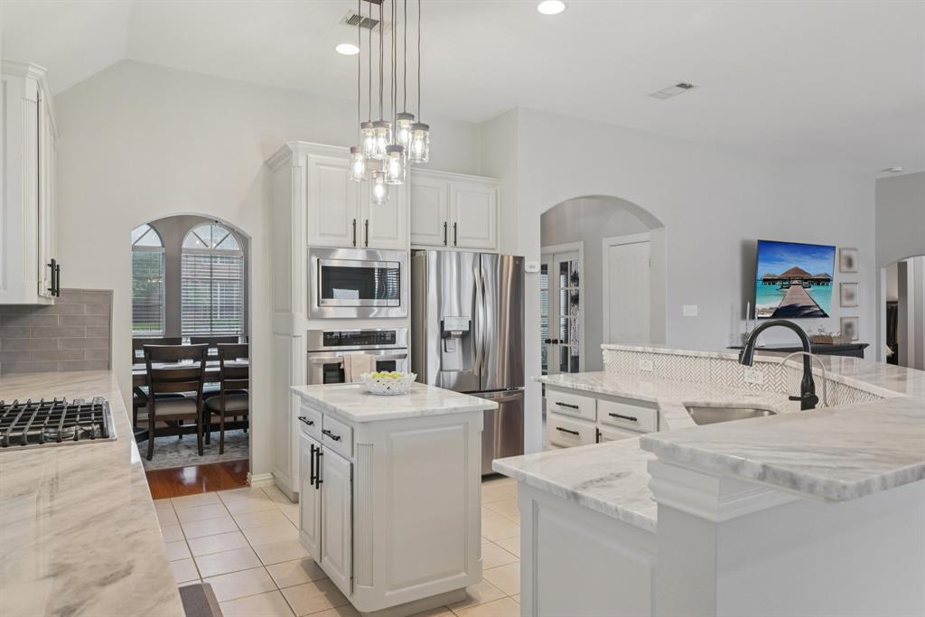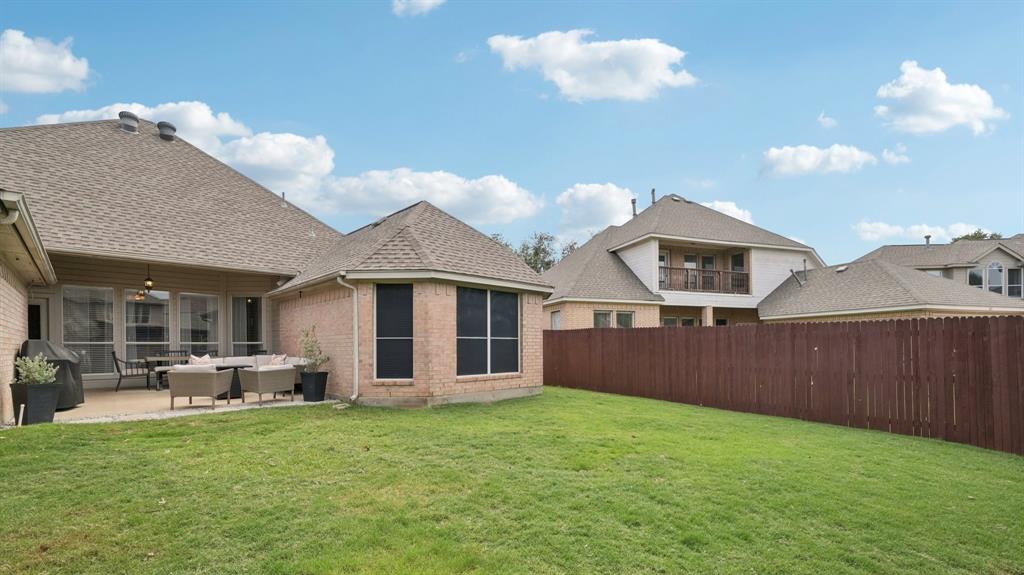 Multiple offers have been received, highest and best due Monday at 5pm. Welcome to this inviting single-story retreat that blends warmth, functionality, and style. With four spacious bedrooms, this home provides versatile spaces perfect for a home office, guest room, or your own cozy reading or hobby nook. Step inside to find warm laminate floors flowing through the main living areas, bringing charm and durability, while elegant tile accents the kitchen and bathrooms for easy upkeep. The spacious, open-concept kitchen is a centerpiece, designed with beautiful stone countertops, stainless steel appliances, ample cabinetry, and a convenient layout that makes cooking and entertaining effortless. Overlooking the kitchen is a bright and comfortable living room with custom built-ins, abundant storage, and room for both relaxation and gatherings. Thoughtfully planned, the home features a split-bedroom arrangement, ensuring privacy for the primary suite, while secondary bedrooms are perfectly positioned for family or guests. The bathrooms are polished and functional, and the entire home benefits from fresh paint, updated light fixtures, and other tasteful upgrades that make it truly move-in ready. Outside, enjoy a landscaped front yard that sets a welcoming tone and a backyard ready for barbecues, gardening, or play. As part of a friendly community, you’ll have access to a sparkling pool and park, perfect for unwinding or connecting with neighbors. Conveniently located near Highway 121 and the Dallas North Tollway, this property offers quick access to shopping, dining, and major employment hubs while maintaining a peaceful residential setting.