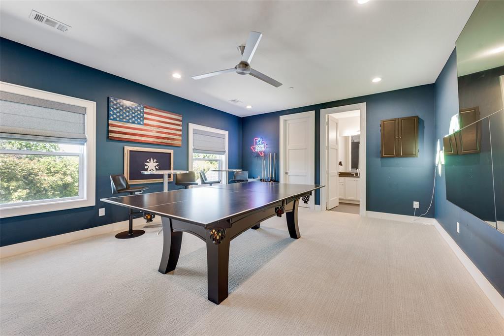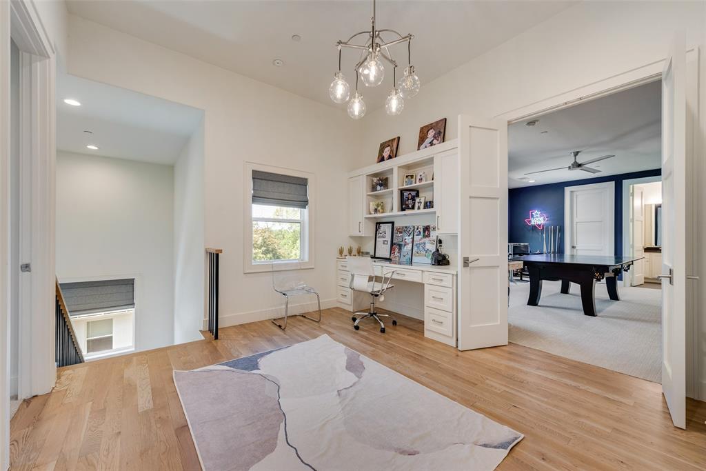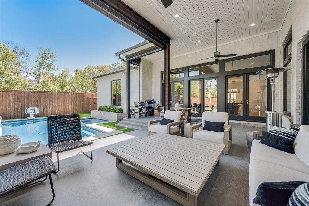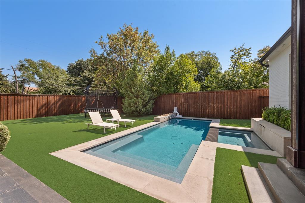 Beautifully designed for modern living, this 5-bedroom, 4 full and 2 half baths with oversized 3 car garage offers both comfort and style. The bright, open layout includes Primary and Guest bedrooms downstairs, a private study, gourmet kitchen with views to the backyard. The spacious backyard features a pool with swim jets, spa and waterfall, a covered patio with fireplace, and auto screens for year-round entertaining. The primary suite is a private retreat with spa-like bath, oversized closet with laundry. Upstairs you’ll find three additional bedrooms, a study nook, theater, and game room with half bath. Built with efficiency and safety in mind, the home includes spray foam insulation, low-E windows, 16 SEER AC units, tankless water heaters, fire sprinkler system. Ideally located just one block from Midway and the Episcopal School of Dallas, this home delivers the perfect combination of space, amenities, and convenience.