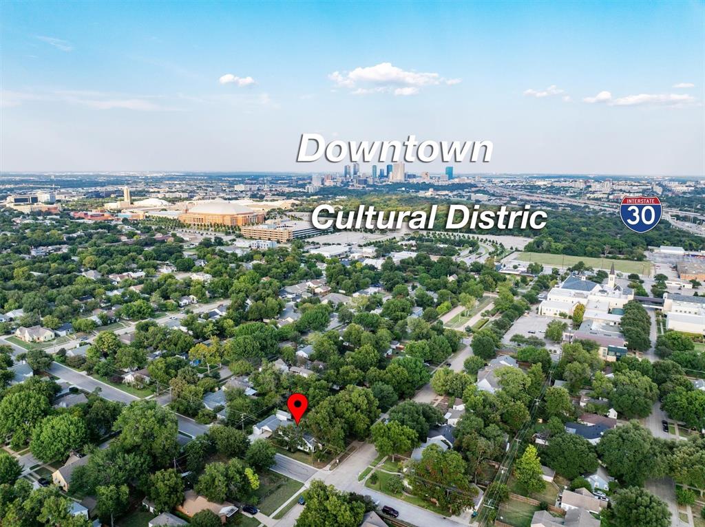 Welcome home! This cozy and charming residence located in the cultural district of Fort Worth, TX, offers the perfect blend of comfort and style. From the inviting front porch, step inside to a bright, well-kept living room that flows effortlessly into the kitchen. The chef-friendly kitchen showcases a spacious island, built-in cabinetry, and sleek stainless-steel appliances, and the sellers are graciously leaving the refrigerator to make settling in a breeze. The private primary suite is a true retreat, with sliding doors that open to a backyard filled with lush greenery. Its spa-like ensuite bathroom features elegant tile work, a sleek garden tub, and a sparkling walk-in shower. An additional bedroom and a stylish full bathroom with custom wallpaper complete the first floor. Upstairs, you’ll find an extra bedroom with its own full bath, ideal for guests or loved ones, and a versatile den that’s perfect for cozy gatherings or game nights. To top it off, the sellers are also leaving the washer and dryer, making this delightful home truly move-in ready. Full renovated in 2018 and thoughtfully designed for both relaxation and entertaining, this Fort Worth gem is ready to welcome you, don’t miss your chance to make it yours!