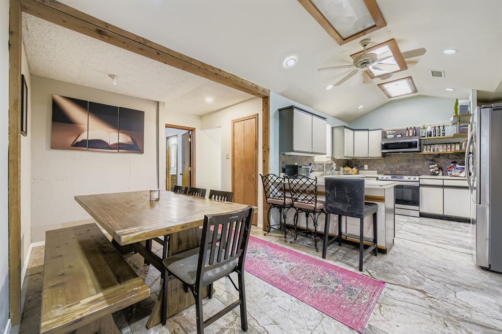 Out back, a fenced yard with a patio offers the perfect setting for outdoor relaxation or hosting get-togethers.