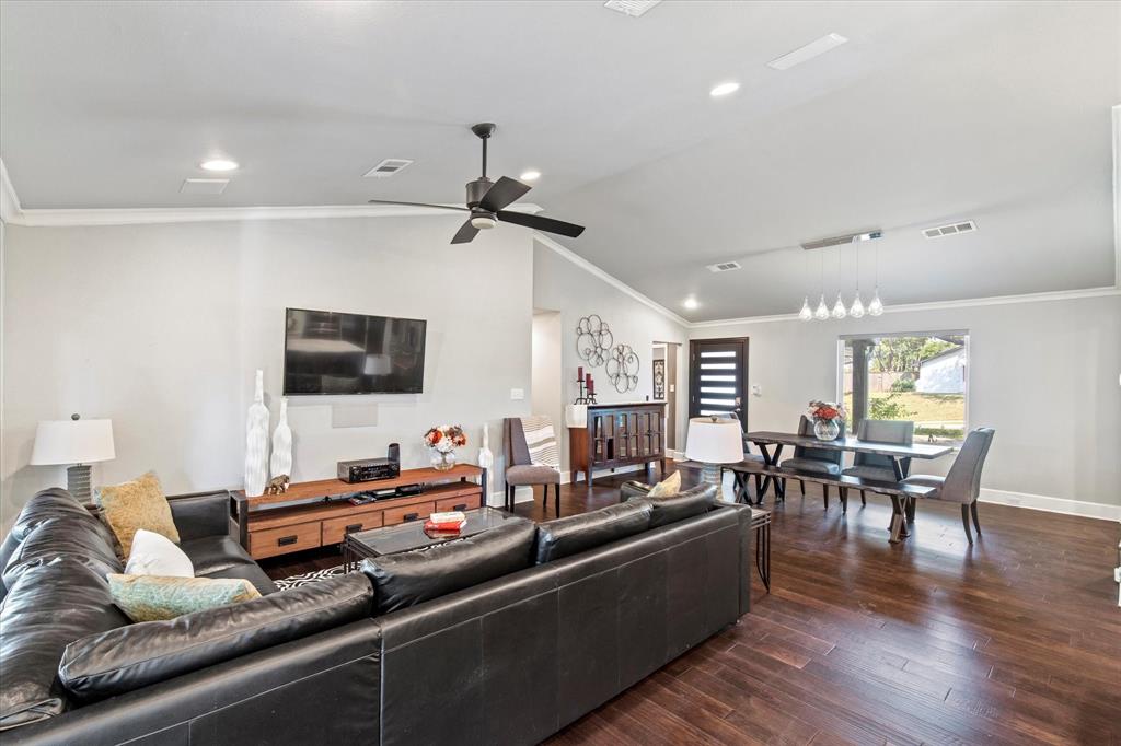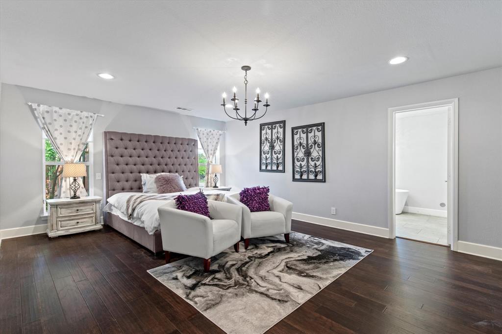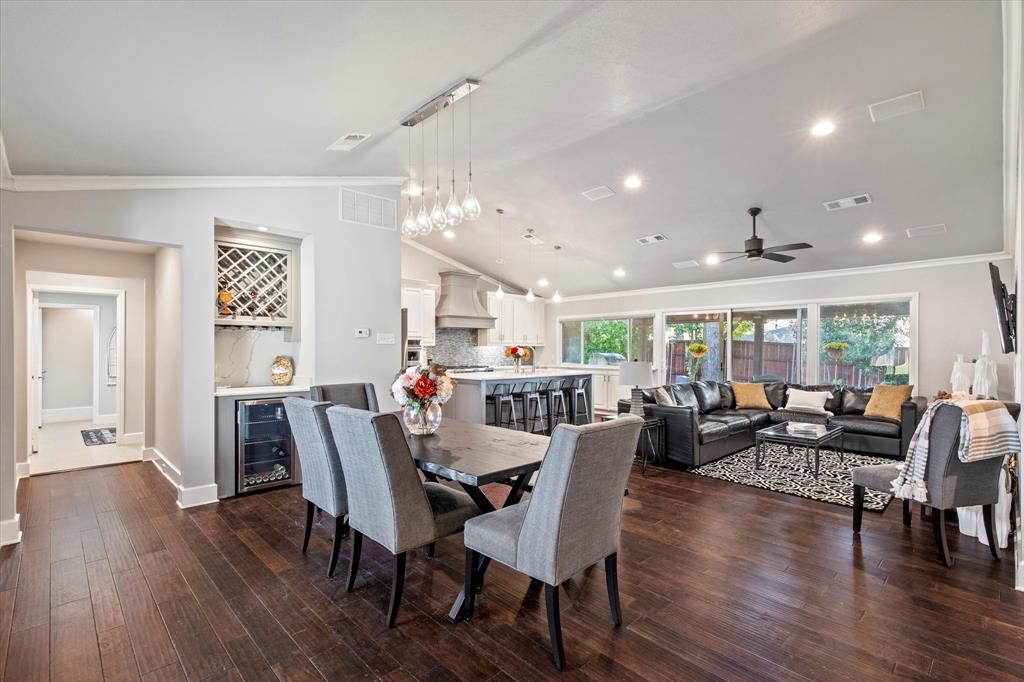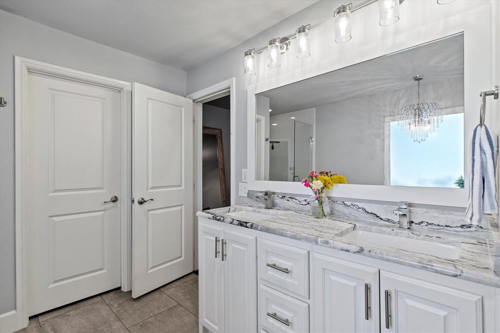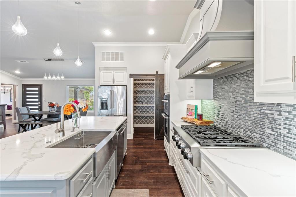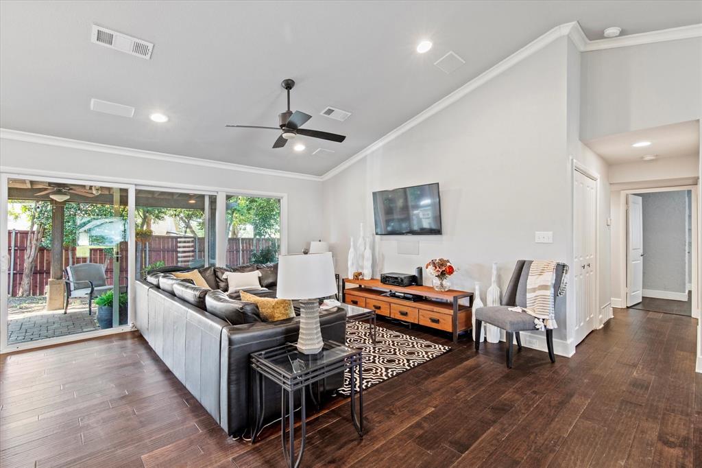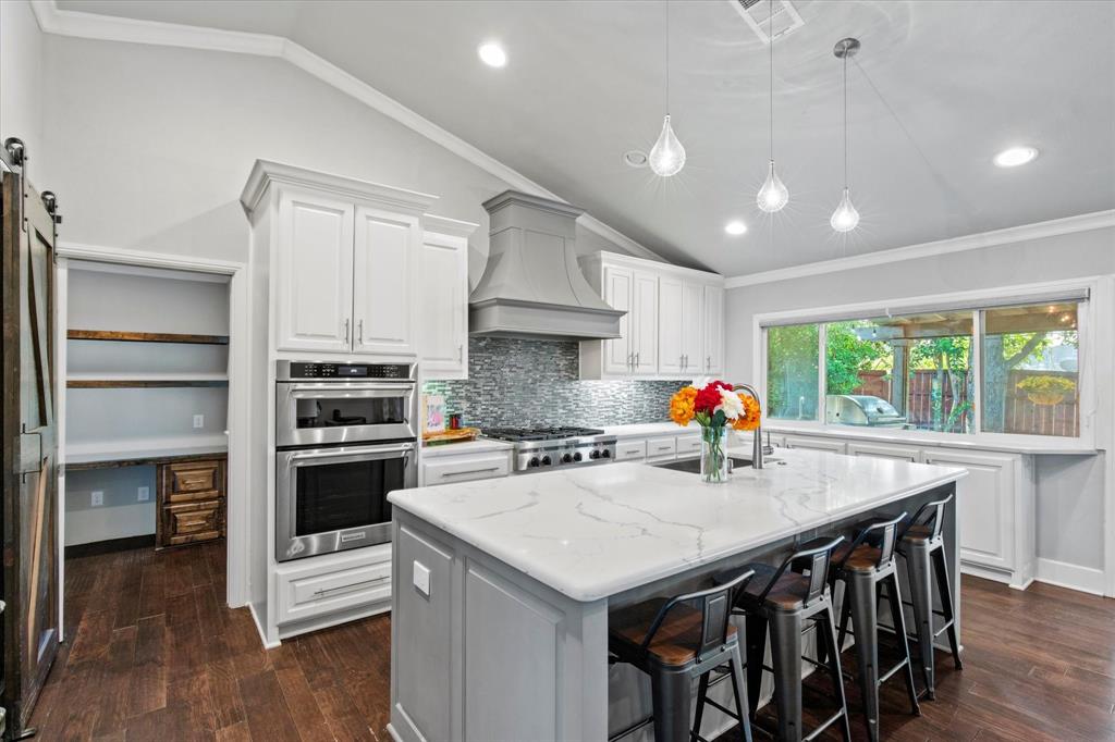 Discover this beautifully updated single-story ranch, ideally located on a spacious corner lot in the highly desirable Meadow Park community. From the moment you step inside, gleaming hardwood floors and an open-concept layout set the tone for sophisticated, modern living. The inviting living room is bathed in natural light, thanks to a wall of windows and a sliding glass door that seamlessly connects indoor and outdoor spaces. The gourmet kitchen is a chef’s dream, featuring premium KitchenAid stainless steel appliances, 6-burner gas cooktop, convection oven, Quartz counter-tops, under-cabinet lighting, and a large walk-in pantry with a dedicated coffee bar. Adjacent to the kitchen, a dedicated study with a built-in desk provides the perfect space to work from home. The private primary suite is thoughtfully separated from the secondary bedrooms and offers a serene retreat with a spa-inspired ensuite bath. Enjoy dual sinks with Quartz counter-tops, a free-standing soaking tub, glass-enclosed shower, and a generous walk-in closet. Three additional bedrooms share a well-appointed full bathroom, ideal for family or guests. Step outside to a covered patio equipped with a high-end Coyote built-in grill—perfect for outdoor entertaining or relaxing evenings at home. Don't miss the large utility room with a half bath, mud room, and built-in cabinets in the garage providing additional storage space. Enjoy the convenience of a prime location with easy access to major highways, shopping, dining, and entertainment.