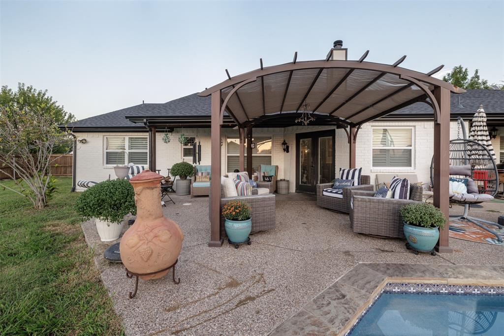 Pergola-covered patio perfect for outdoor dining and entertaining