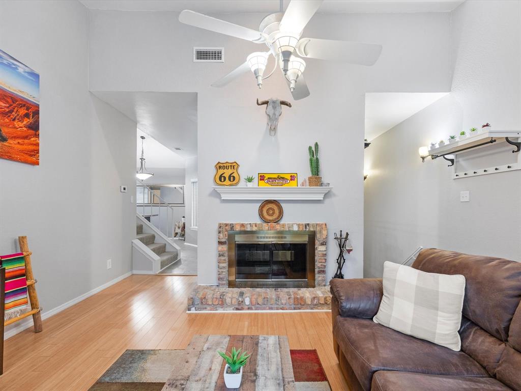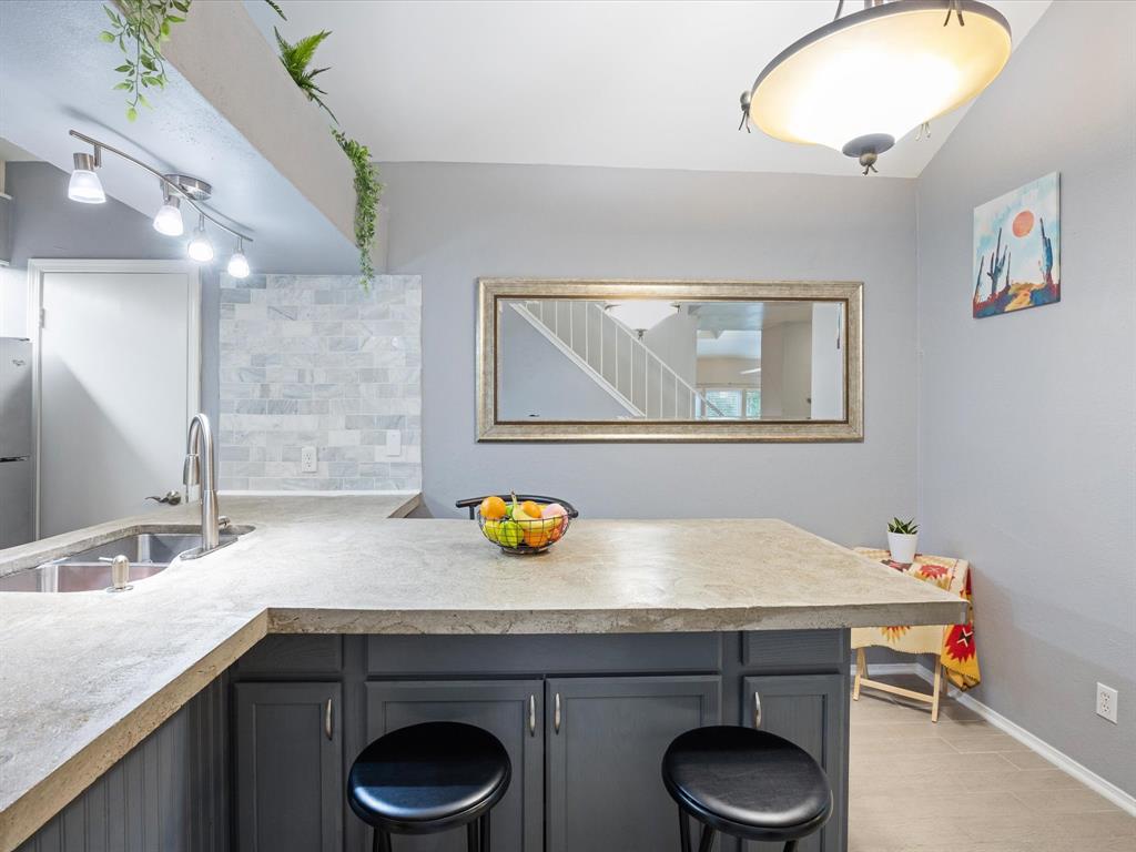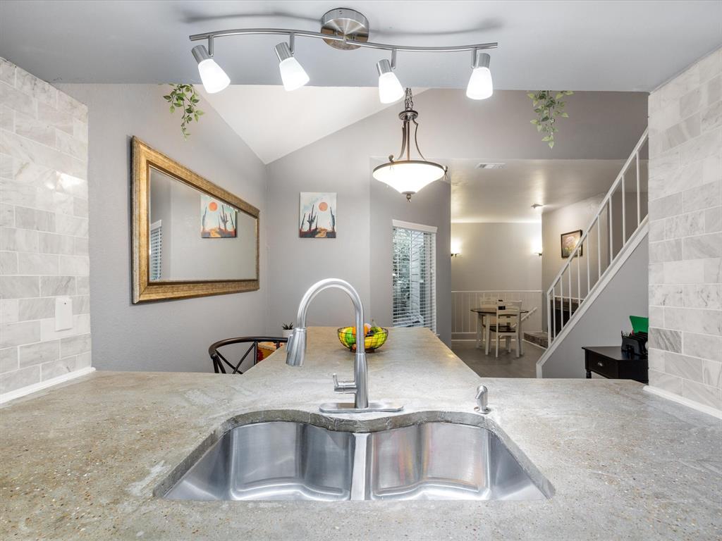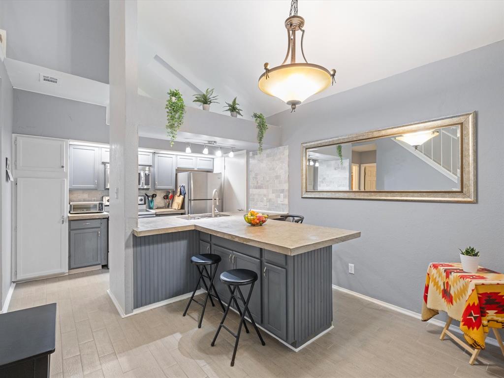 Welcome to a beautifully maintained and thoughtfully updated townhome-style condo located in a gated, tree-lined community in North Dallas. This inviting residence features a double-sided fireplace that adds warmth and charm to both the living and dining areas, creating a cozy ambiance for relaxing or hosting guests. The kitchen is a standout, offering concrete countertops, an island, and abundant cabinet space—an ideal setup for cooking and entertaining. The cooktop was replaced in May 2025, all windows were upgraded in 2023, and a new HVAC system was installed in 2022, ensuring modern comfort and energy efficiency.