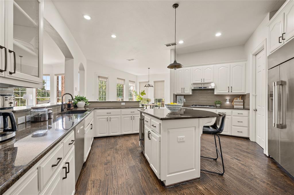The open concept kitchen serves as the perfect place for intimate family dinners or entertaining friends and family. A full sized, stainless steel, built-in refrigerator, gas cooktop, and sprawling counter space make this area fitting for even the most demanding of chefs.