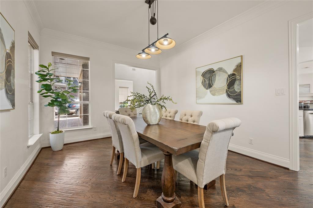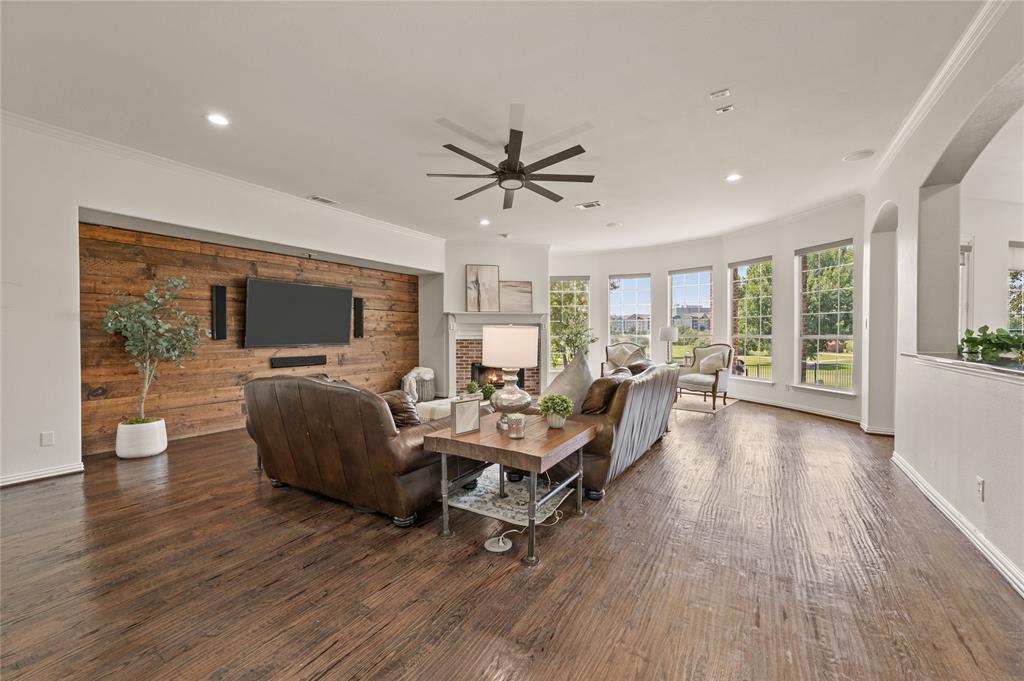 Upon entry, you are greeted by hand-scraped wood floors that cover the entire main level. From the foyer there are sight lines through the main living room, complete with gas fireplace and a custom wood wall, straight through the back yard and onto the first green. The entry is flanked by a formal living space overlooking the large covered front porch. Just across the entry is a formal dining room perfect for hosting large groups.