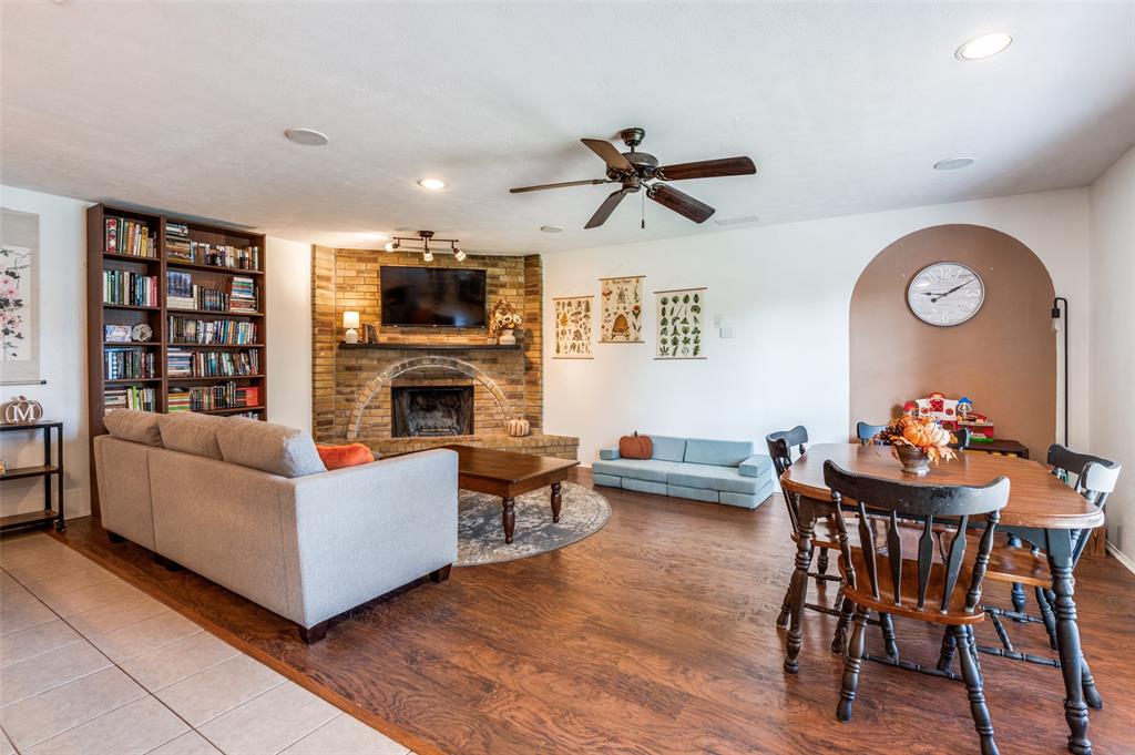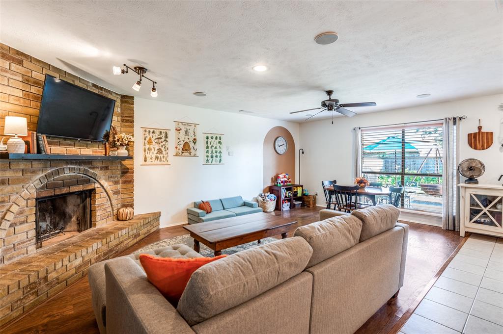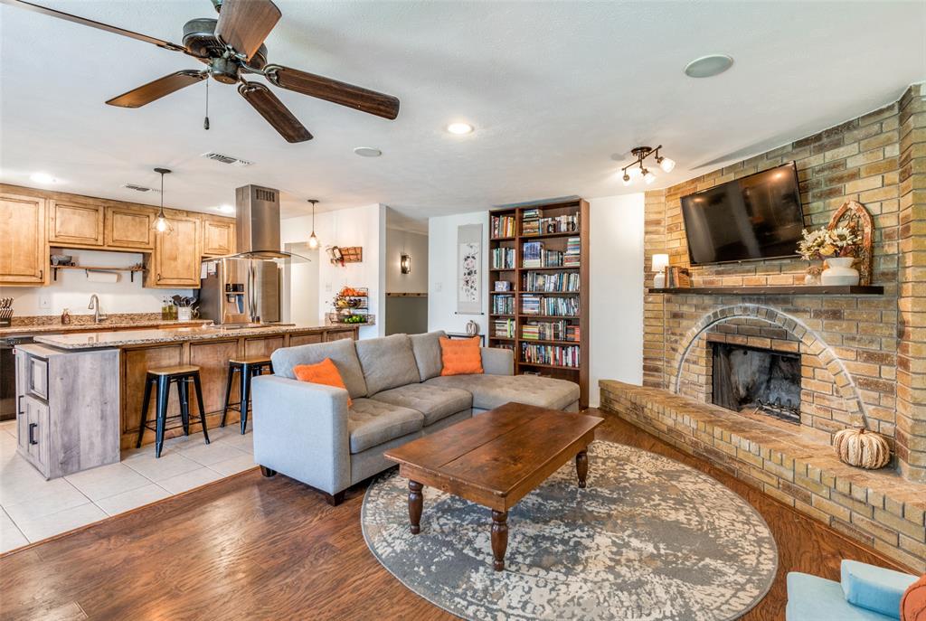 As you step inside, you’re greeted by a spacious family room anchored by a charming brick fireplace, perfect for cozy evenings or gathering with friends. The updated kitchen features granite countertops and freshly refinished custom cabinets (August 2024).