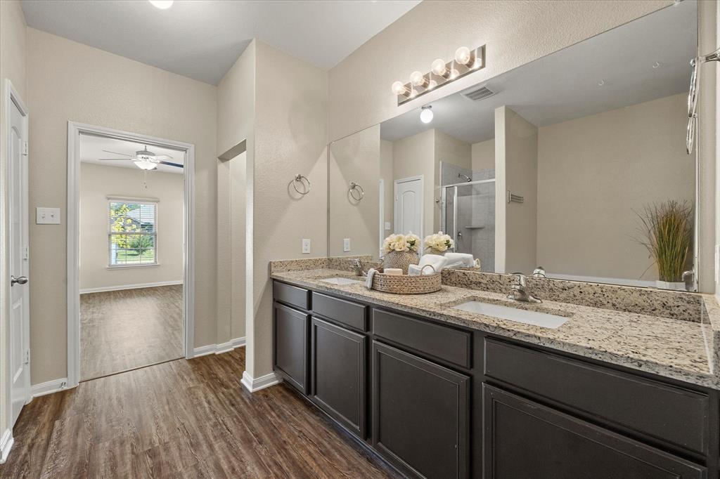 This beautiful 2 story, 4 bedroom, 2.5 bath home is nestled on a large corner lot in the sought after neighborhood of Park Trails. The home boasts wonderful luxury vinyl plank floors, energy efficient appliances, granite counter tops, a large walk in pantry, and designer wood cabinets. The 1st floor master suite showcases gorgeous bay windows, a large ensuite bath with dual sinks, a separate shower, and a huge walk in closet. Three additional bedrooms are located upstairs and offers plenty of room for the whole family. The large fenced backyard is perfect for fun family gatherings and tons of room for the pups to play.! Washer, dryer and fridge is included. Just 7 miles from Lake Lavon, this one has it all! Princeton ISD.
