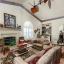 Inside, a light filled open living area features vaulted ceilings and a sleek fireplace. Recent updates include modern and premium material LVP flooring throughout, fresh interior paint, remodeled bathrooms, and modern ceiling fans in the living room and both bedrooms, all giving the home a crisp, move in ready feel. A generous balcony extends the living space outdoors, perfect for morning coffee or evening gatherings. The kitchen boasts granite countertops, stainless steel appliances, and warm accent lighting above the cabinetry. The washer, dryer and refrigerator convey with the property, adding extra value and convenience. Additional highlights include a dedicated parking space.