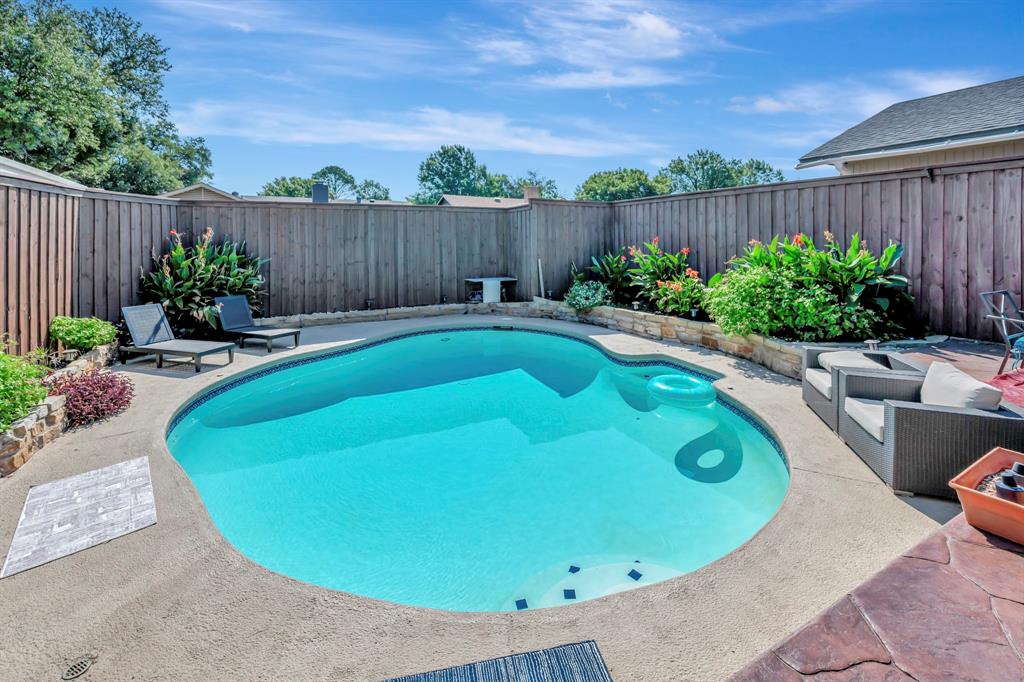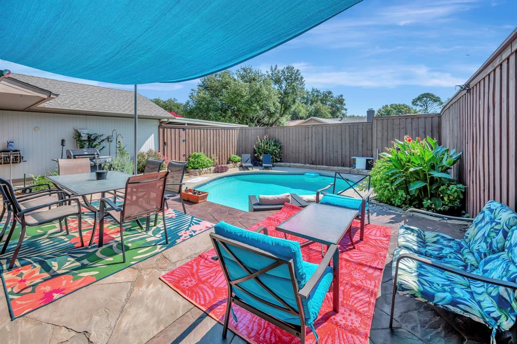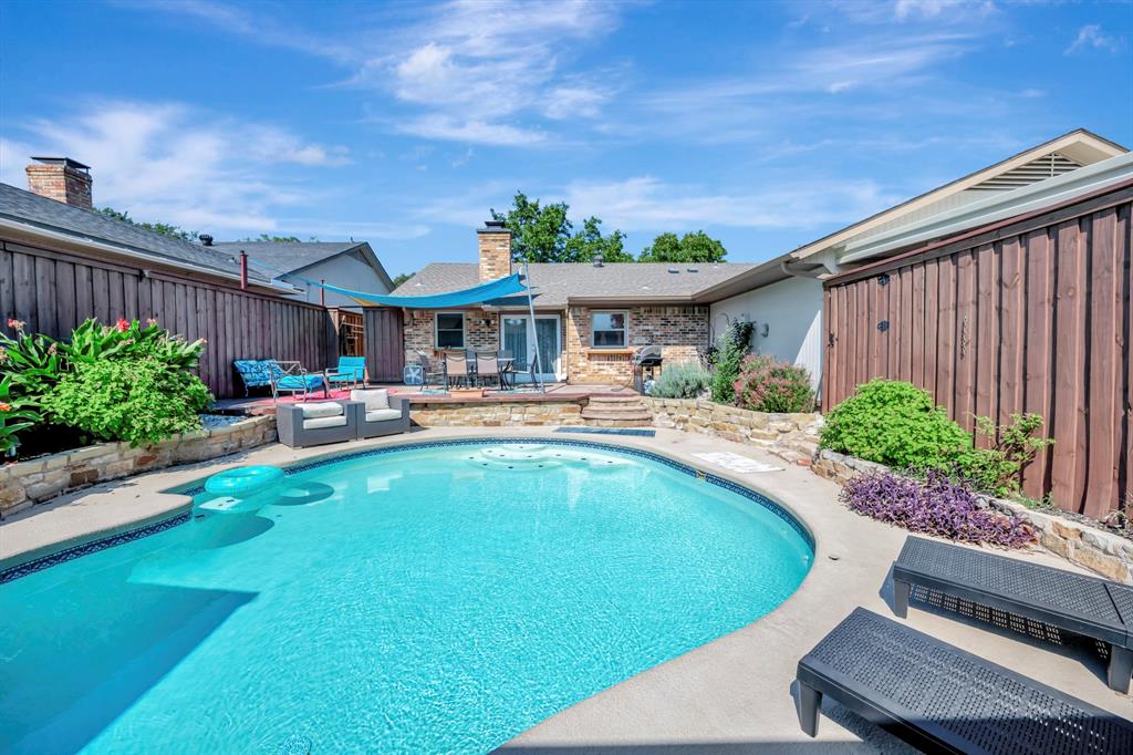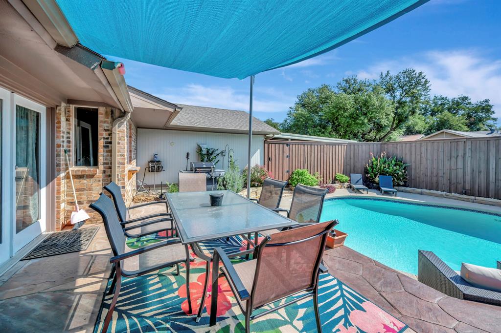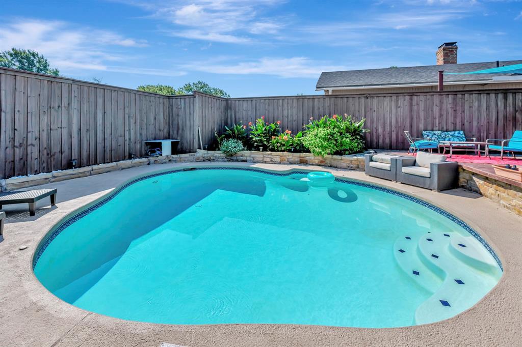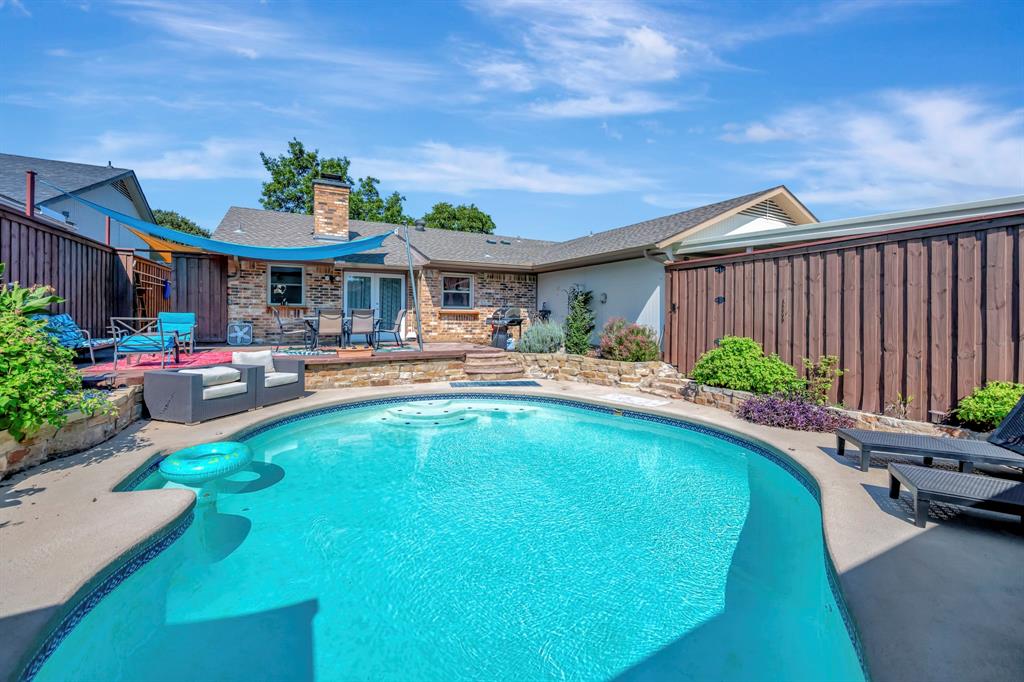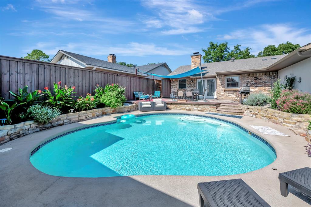 Welcome to 655 Abilene Drive in Lewisville, a beautiful 3 bed, 2 bath home with a sparkling inground pool perfect for Texas summers. The inviting interior features rich wood floors and a striking floor-to-ceiling brick wood-burning fireplace that serves as the centerpiece of the living room, adding warmth and character. The kitchen is a chef’s delight with granite countertops, stainless appliances, and a gas stove ideal for cooking with precision. The primary suite offers a relaxing retreat complete with his and hers closets and an ensuite bath featuring a jetted tub, providing the perfect place to unwind after a long day. Step outside to your private backyard oasis where the updated patio and pool create the perfect setting for entertaining or enjoying quiet weekends at home. Recent updates ensure peace of mind for the next owner, including a new roof and HVAC in 2021, fresh exterior painting and caulking in 2022, a new stamped concrete patio in back was completed in 2022, and a new carport added in 2023. The chimney has been professionally repointed with a new concrete cap, and the fence was stained and sealed in 2022, giving the exterior a fresh, well-cared-for look. This home is conveniently located within walking distance of the elementary school, making mornings easier, and it is also close to neighborhood parks where you can enjoy outdoor activities. In addition to its great features, this home is just minutes away from all that Lewisville and the surrounding area have to offer. You’ll find Lake Lewisville for boating, fishing, and lakeside fun, as well as premier shopping and dining at Music City Mall and The Shops at Highland Village closeby. Entertainment options abound with nearby theaters, golf courses, & hiking trails. Easy access to major highways ensures quick commutes throughout the DFW area. With its blend of charm, updates, & lifestyle amenities, this is a home you will not want to miss. Schedule your showing today and discover all it has to offer.