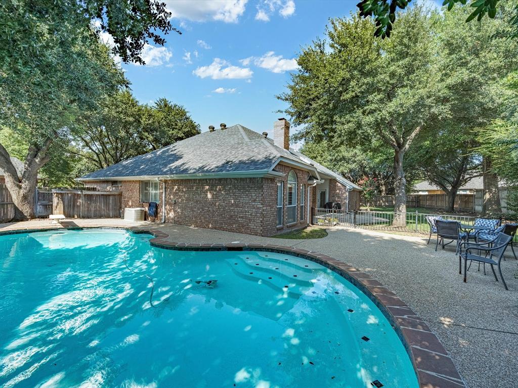 Step outside and enjoy your own private outdoor haven, complete with a sparkling pool, covered patio, and mature landscaping that adds both beauty and privacy. The three-car garage is a rare find and provides plenty of space for vehicles, hobbies, or additional storage. The primary suite opens directly to the backyard, creating a peaceful connection between indoor comfort and outdoor serenity.