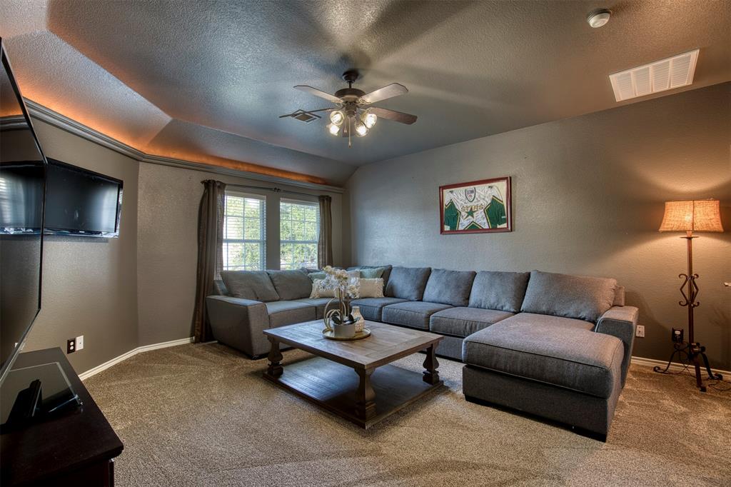 Welcome Home! Don't miss this beautifully maintained and updated home nestled in the highly sought-after Craig Ranch community. This spacious residence offers the perfect blend of comfort, style, and convenience with an open-concept layout designed for modern living. Many incredible updates including NEW HVAC units, Dishwasher, Lighting, Sink Disposal, Bedroom Fans, Hot Water Heater, Carpet, Paint, Complete new Landscaping work in front and backyard. See full list of updates for complete list. Step inside to find a bright and inviting living area with soaring ceilings, wood-look floors, and large windows that fill the home with natural light. The gourmet kitchen features granite countertops, gas stovetop, ample cabinet and pantry space, perfect for both everyday meals and entertaining guests. The primary suite provides a peaceful retreat with a spa-like ensuite bathroom, complete with dual vanities, a jetted tub, and a separate shower. Secondary bedrooms upstairs are generously sized and versatile for guests, family, or a home office. Multiple living and dining spaces, front dining room can also be used as an office and extra large media room upstairs can also be a wonderful 4th Bedroom if needed. Outside, enjoy a private backyard with a covered patio with lights and TV ideal for grilling, relaxing, or gatherings.