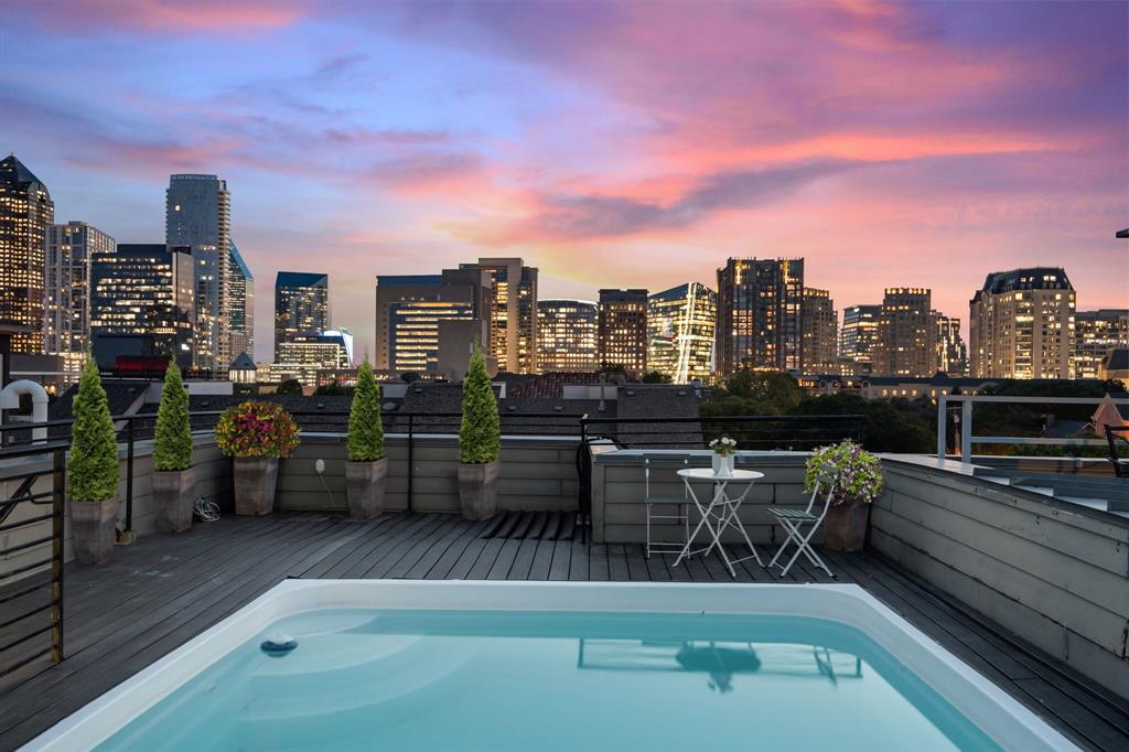 Fifth Level Rooftop Oasis –Roof replaced September 2025, with a private pool and 520 sq. ft. of deck space, this retreat delivers unparalleled 360-degree views of Dallas, stunning by day and dazzling by night.