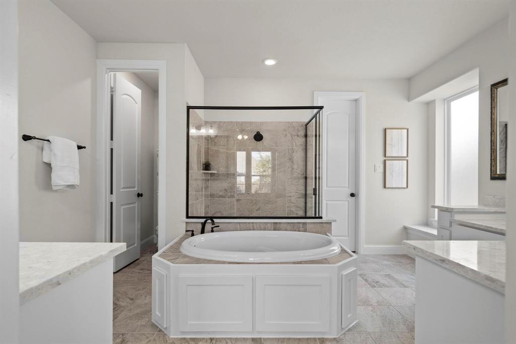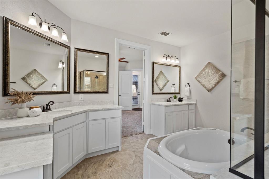 Fall in love with this stunning 5-bedroom, 4-bathroom single-family home for sale in the highly desirable Chadwick Farms neighborhood, zoned to top-rated Northwest ISD. This move-in ready, energy-efficient home offers a spacious open-concept layout with soaring ceilings, large windows, and a cozy fireplace that fills the living space with natural light. The chef-inspired kitchen boasts granite countertops, stainless steel appliances, a large center island, and abundant cabinet space—perfect for entertaining and everyday living. The luxurious primary suite features a spa-style bathroom with a soaking tub, walk-in shower, dual vanities, and a huge walk-in closet. A private downstairs bedroom with a full bath is ideal for multigenerational living or guests, and a dedicated office or optional 5th bedroom offers flexibility for work or play. Upstairs, enjoy a large game room or second living area ideal for a media room or play space. Step outside to a beautifully landscaped backyard with a private hot tub—perfect for relaxing evenings. Located in a family-friendly community offering resort-style amenities including a swimming pool, scenic walking trails, and parks, this home also provides quick access to major highways, shopping, dining, and entertainment, all with low Denton County taxes. Don’t miss your opportunity to own this modern, upgraded home in one of the area’s most sought-after communities—schedule your private tour today!